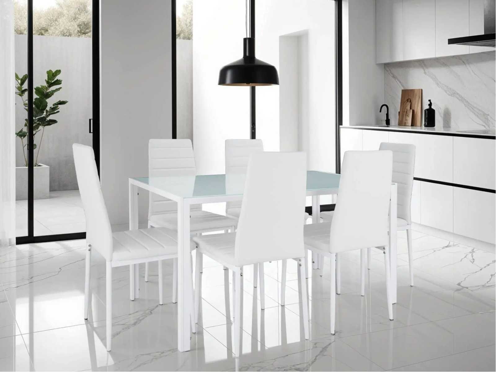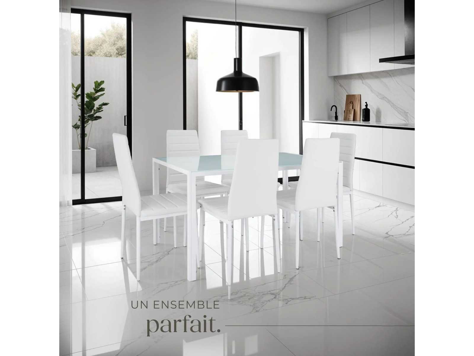 Voorzitter: Totale afmetingen (LxWxH): ca. 41,5 cm x 49 cm x 98 cm. Zitoppervlak (LxW): ongeveer 40,5 cm x 39,5 cm. Rugsteunhoogte: ca. 52 cm. Zithoogte: ca. 47,5 cm. Dikte van de vulling: ca. 2 cm. Diameter van de stoelpoot: ca. 2,2 cm Ø. Maximale draagcapaciteit van elke stoel: 120 kg. Materialen: Staal. / Polyurethaan. Zitgewicht: ca. 4,2 kg. Non