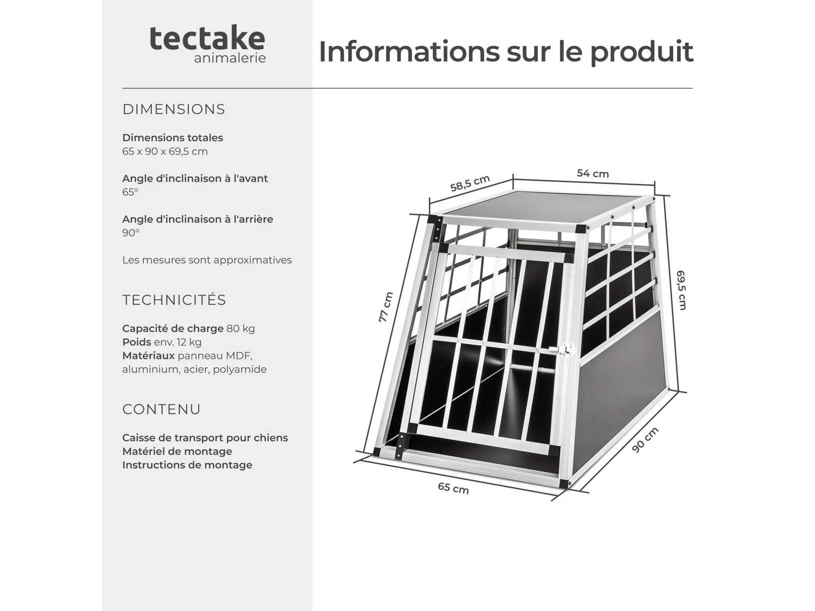 Afmetingen (zie afbeelding): Lengte: ca. 90 cm. Breedte: ca. 65 cm. Hoogte ca. 69,50 cm. 75° voorwaartse bankhoek. Achterkantelhoek 75°. Materialen: aluminium / hout fineer / plastic hoeken. Gewicht: ongeveer 12 kg. Non