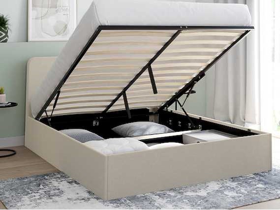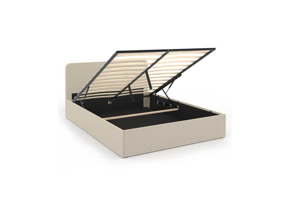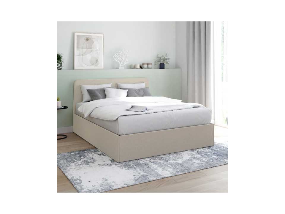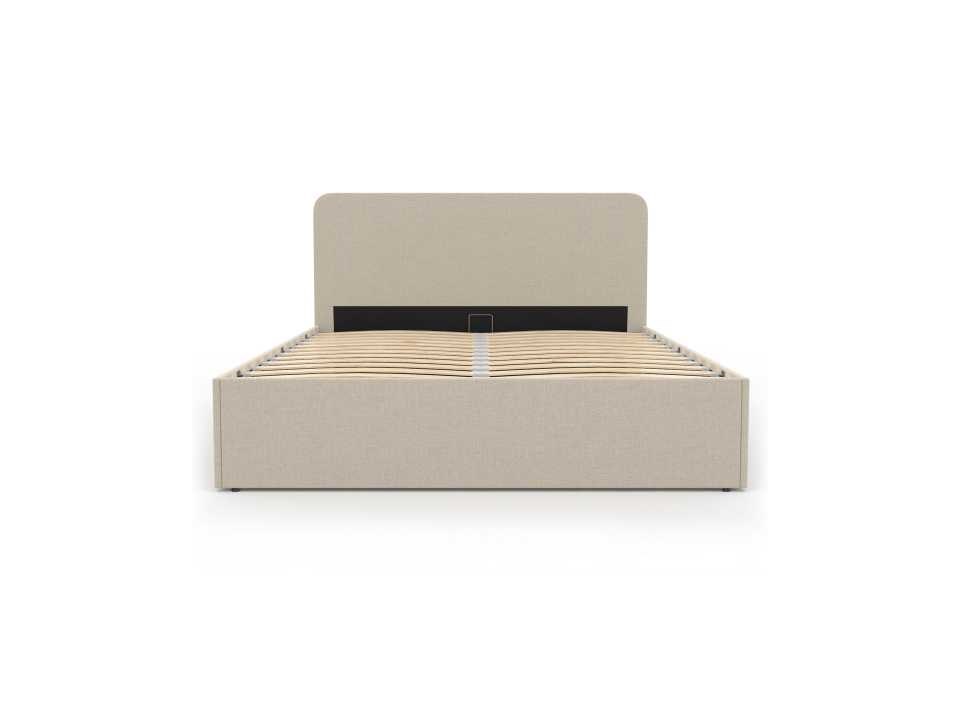 Beige stoffen borstbed met bedvoet en afgerond hoofdeinde 140x190cm