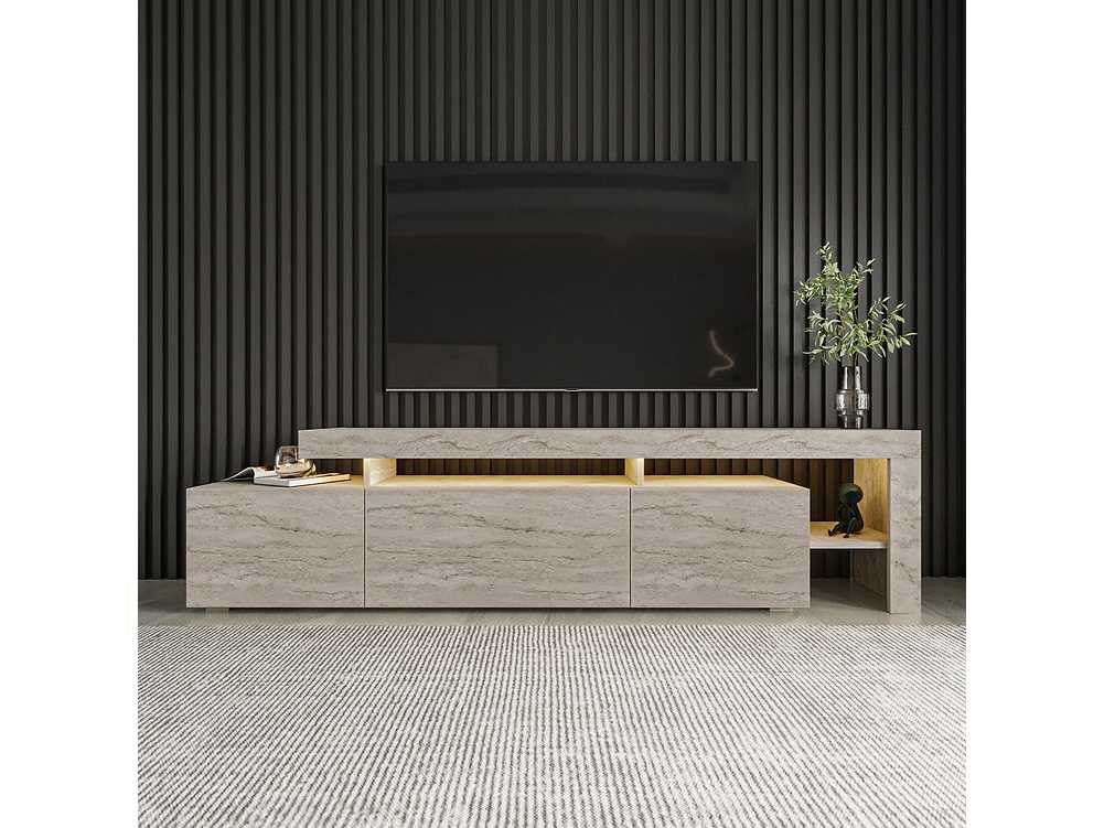 Moderne tv-standaard met led's - travertine-effect