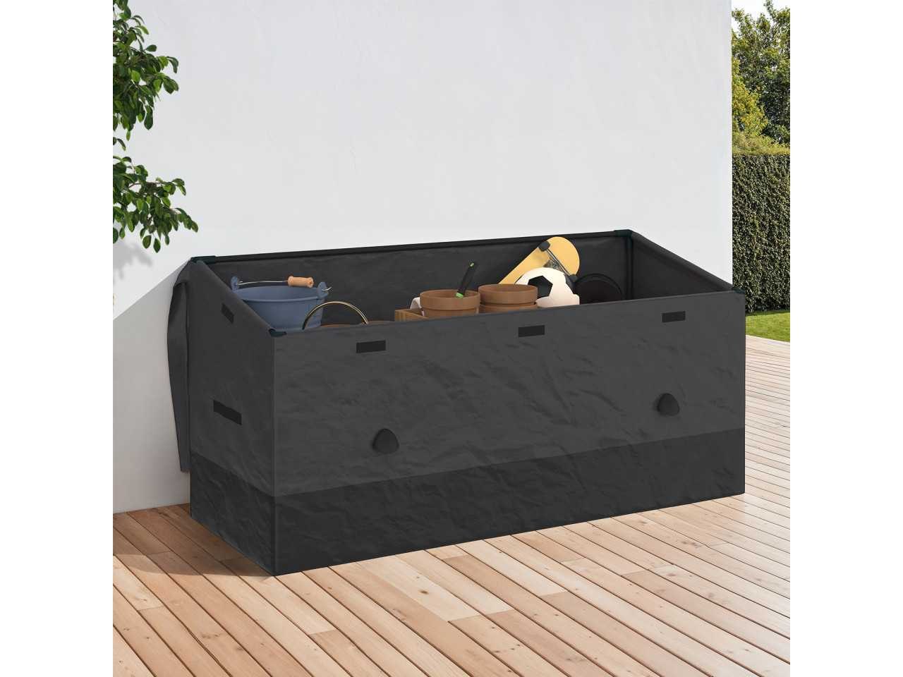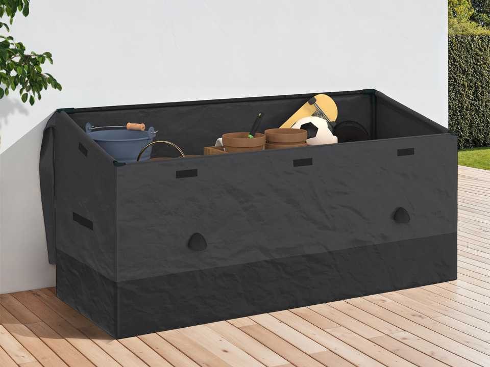 Technische beschrijving Totale afmetingen: 155 (L) x 60 (B) x 60-75 (H) cm Capaciteit: 600 L 2 handvatten 2 ventilatieopeningen Materialen: metaal, PE 220 gr Kleur: antracietgrijs / zwart Stel jezelf bij elkaar: ja Schroeven inbegrepen: nee Non