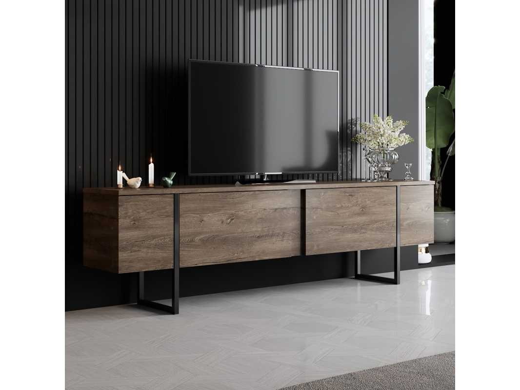 Walnoot en zwart kleuren-tv-meubel