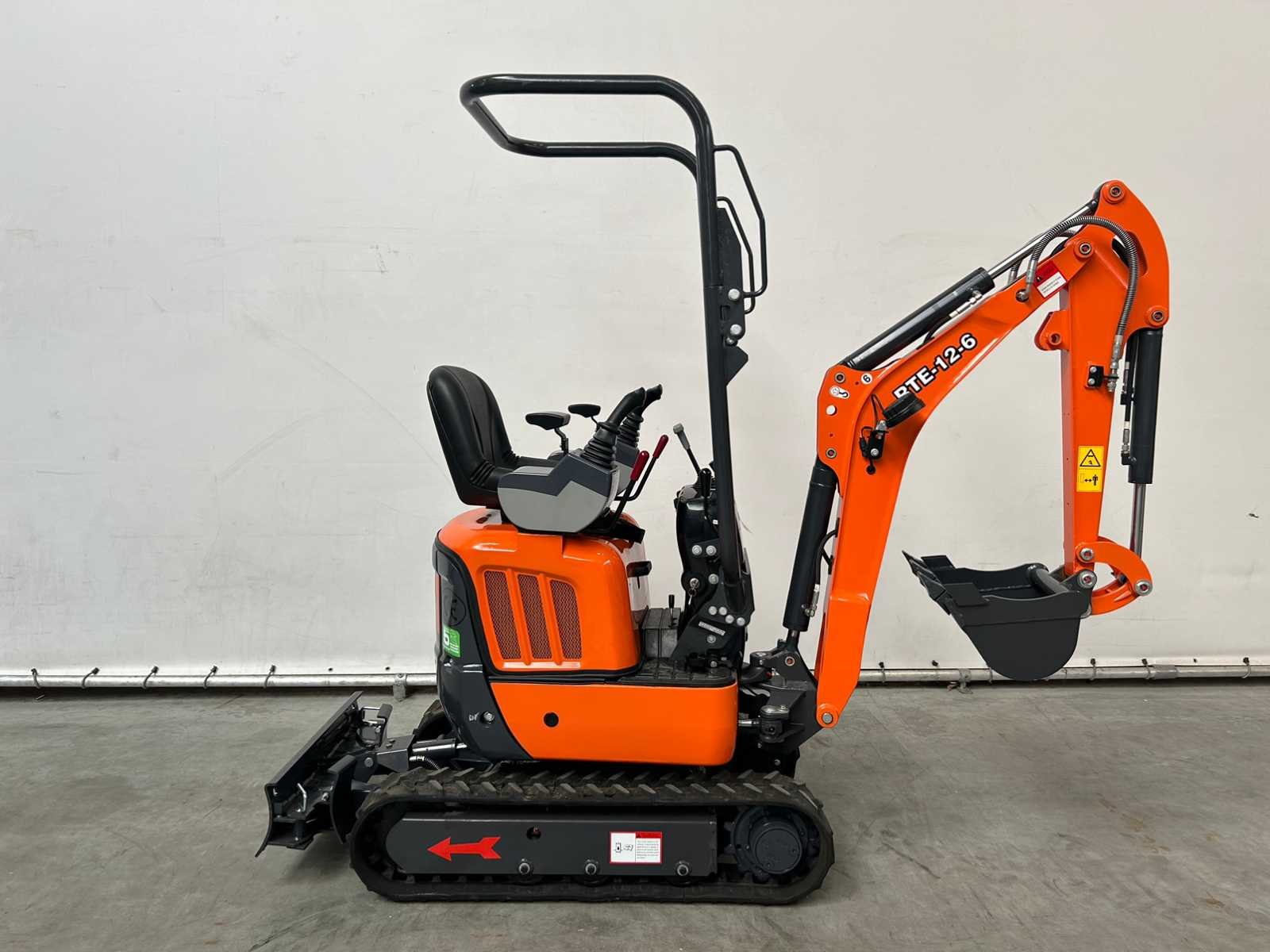 Ongebruikt; zwenkarm; motor Kubota D722 EURO5; bucket capaciteit 0,025m3; v.v. verlichting; 6629 Nee Merk: RTE Type: 12-6 Bouwjaar: 2025 Merk motor: Kubota Motorvermogen (kW): 10.20kW Aantal cilinders: 3 Brandstof: Diesel Max. graafdiepte: 1805mm Inclusief graafbak: Yes Graafbak afm. l: 380mm Graafbak afm. b: 225mm Graafbak afm. h: 310mm Rups breedte: 180mm Eigen gewicht: 1200kg Totale afmeting L: 2300mm Totale afmeting Breedte: 820mm Totale afmeting Hoogte: 2200mm