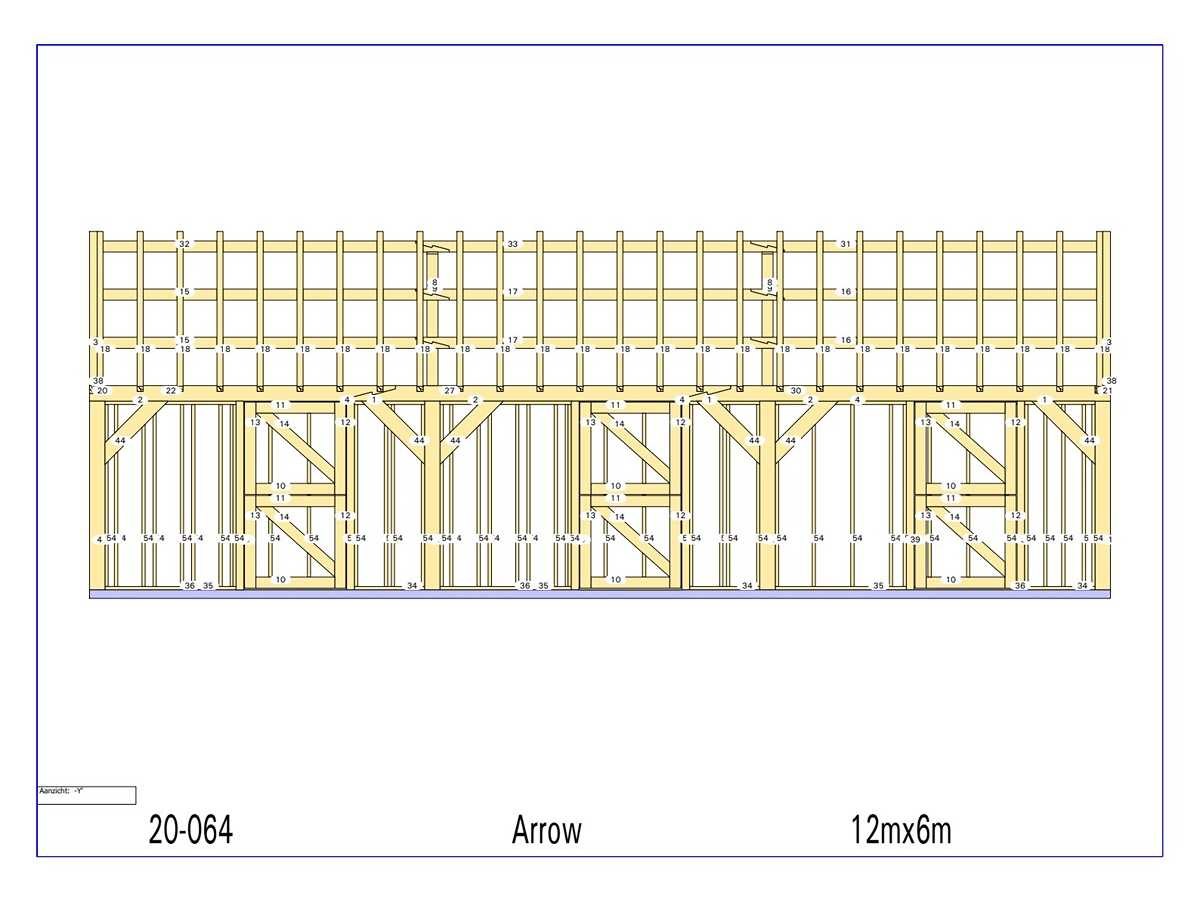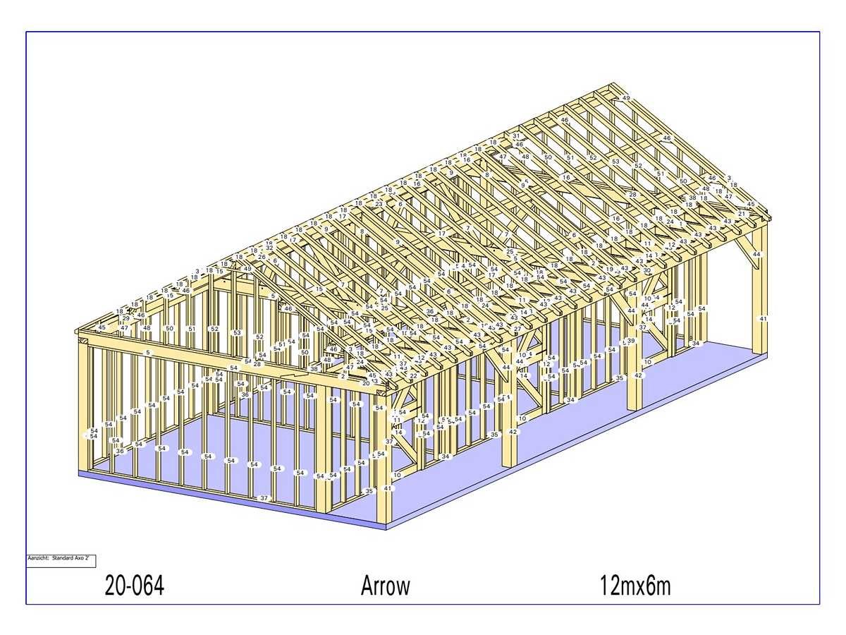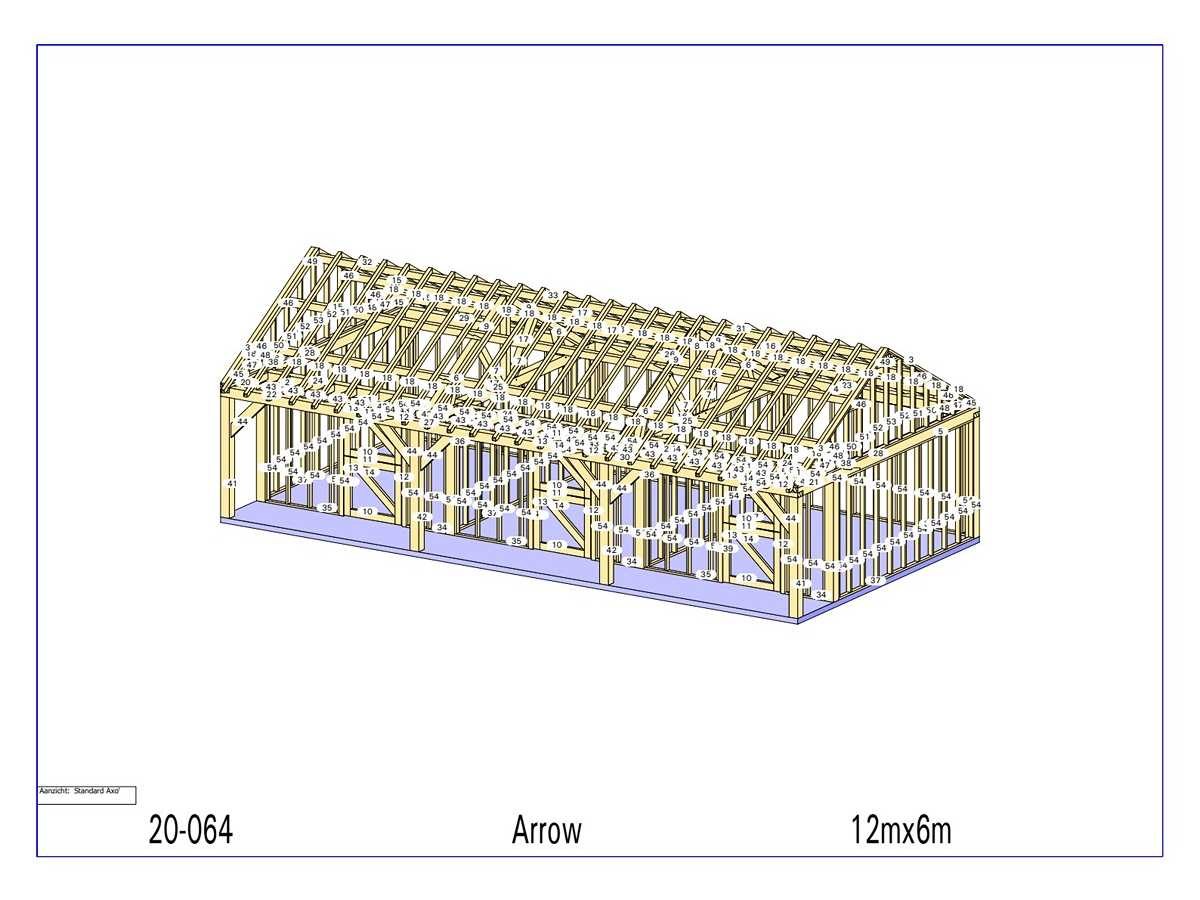 <li>voorzien voor 3 paarden </li><li>Totaal afmeting pakket (transport): 2 x circa 6400x1200x1000 mm </li><li>Kopmaat liggers: 180x180 mm, 130x130 mm, 89x38 mm en 80x70 mm </li><li>Aantal draagsteunen: 12 stuks </li><li>Kopmaat staanders: 230x180 mm en 180x60 mm </li><li>Referentie: Arrow </li><li>Handleiding opbouw: aanwezig met QR code </li><li>Staat: ongebruikt, bouwpakket</li> Nee Model: 20-064 Gewicht: 3000kg Lengte: 1200cm Breedte: 600cm Hoogte: 418cm Materiaal: Douglas