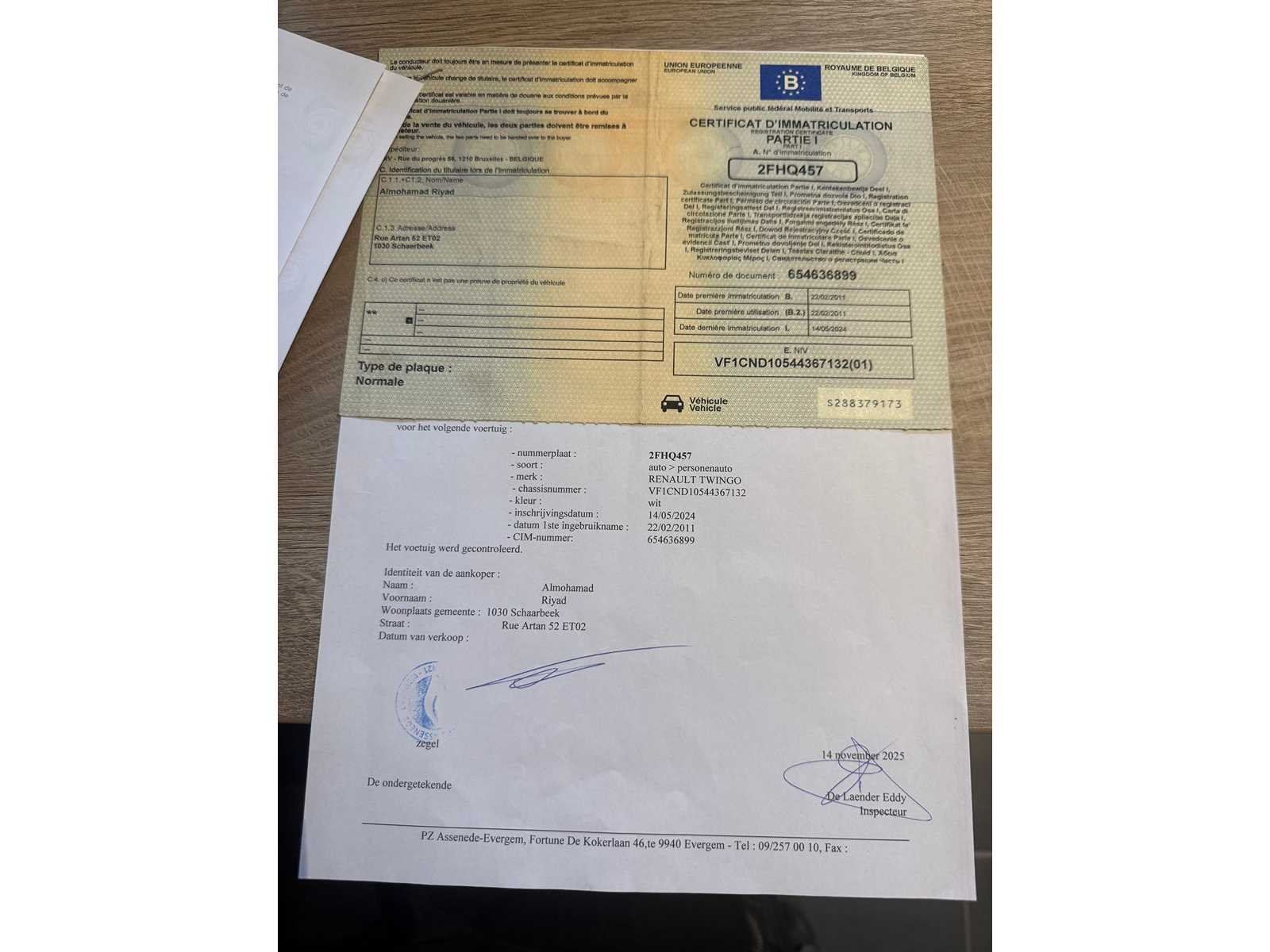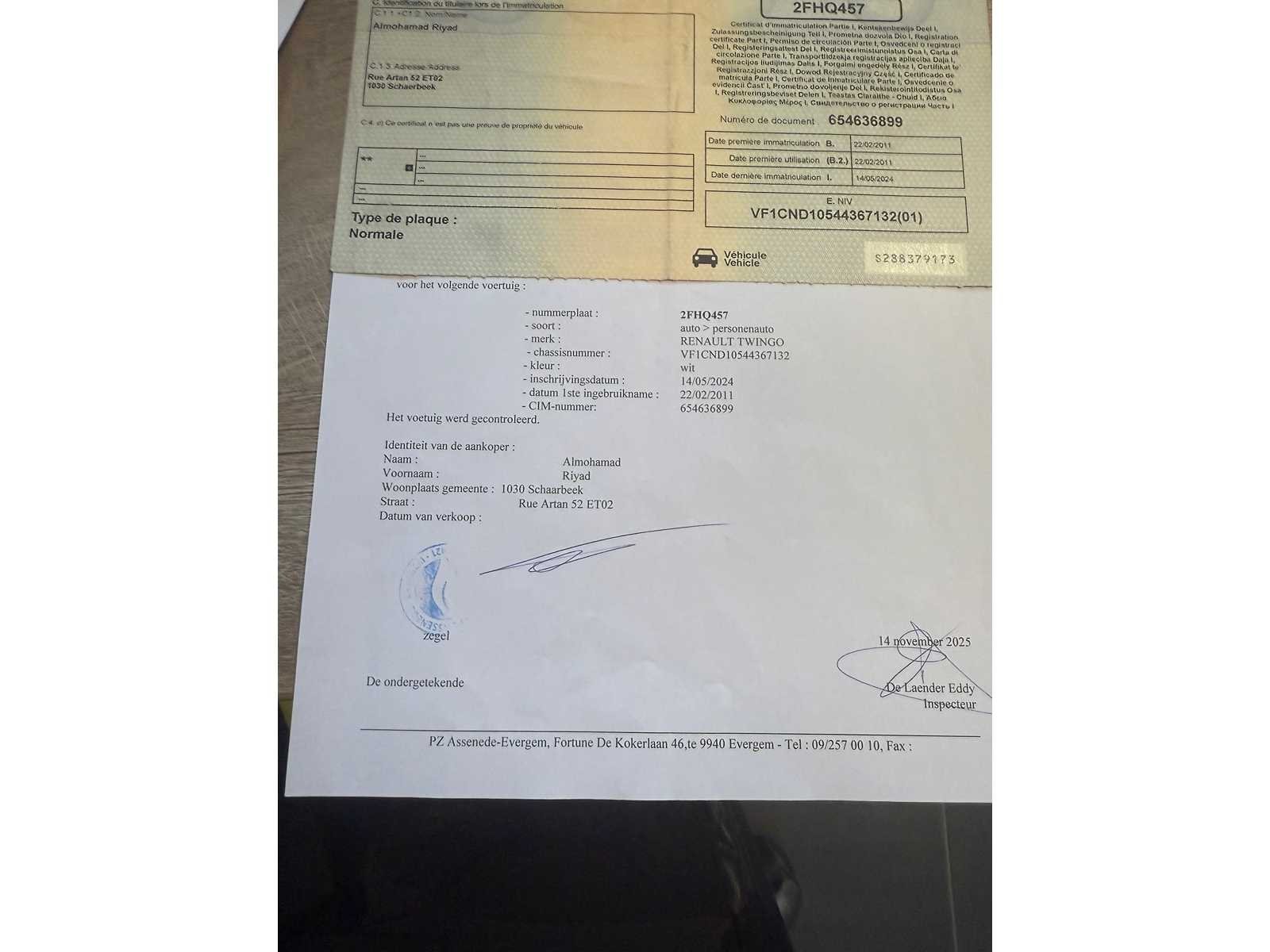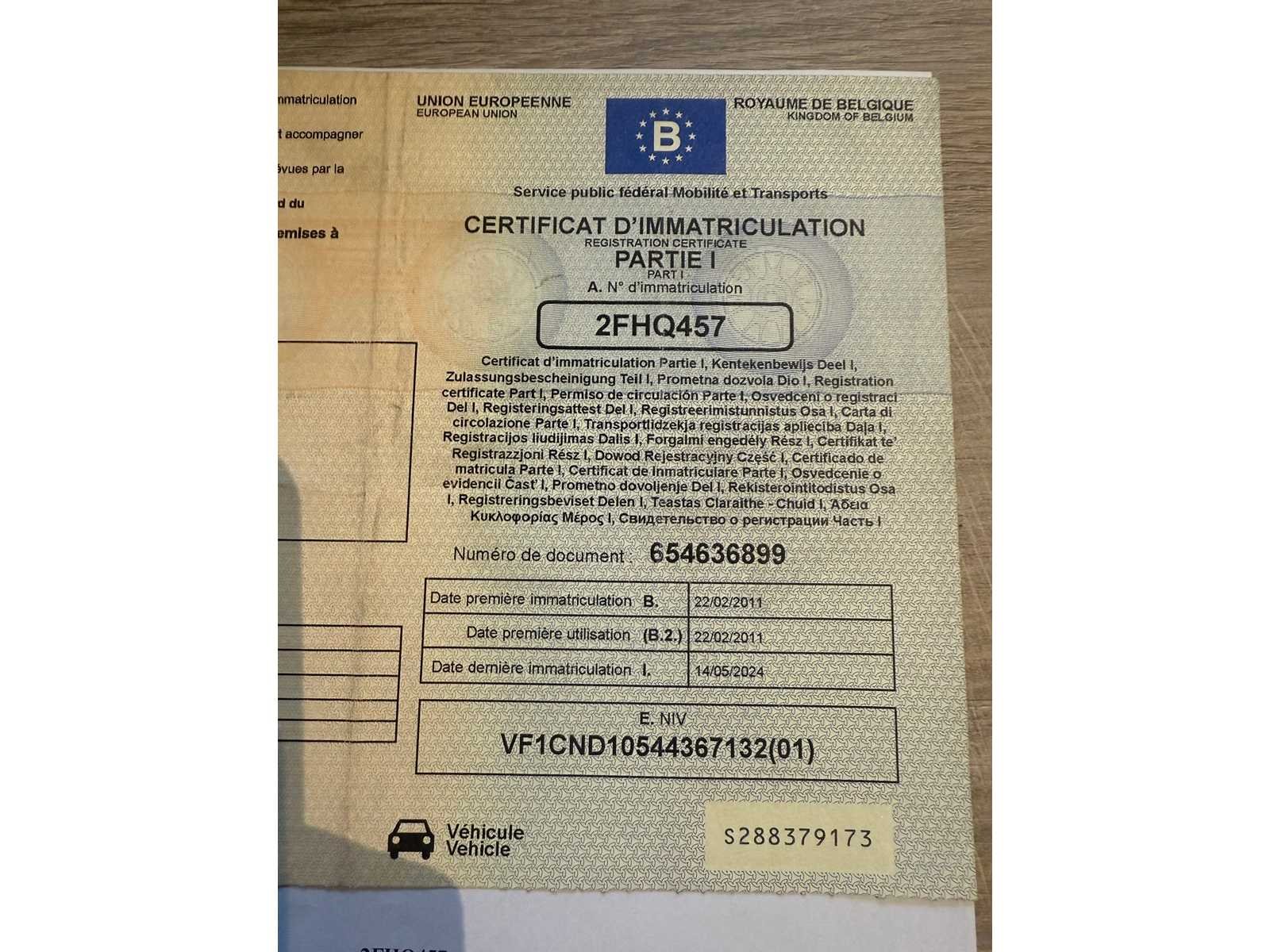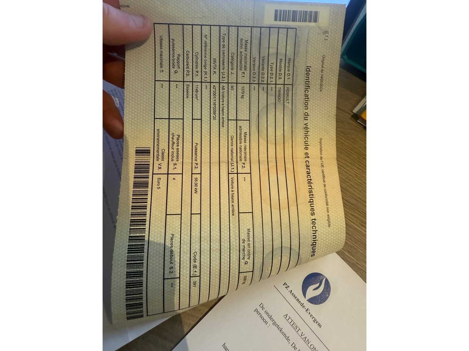 START EN RIJD GOED DEEL 2 INSCHRIJVINGSBEWIJS AANWEZIG Nee Merk: RENAULT Model: TWINGO Bouwjaar: 2011 Afgelezen kilometerstand: 152000km Cilinderinhoud: 1200cc Vermogen (kW): 55kW Brandstof: BENZINE Chassisnummer: VF1CND10544367132 Datum eerste toelating: 22-02-2011 Kleur: GRIJS Transmissie: MANUEEL Emissieklasse: 5 Aantal deuren: 3 Aantal sleutels: 1 Nationaliteit documenten: BELGIE Onderhoudshistorie: JA Carpass: true Start en rijdt: JA Andere boorddocumenten: COMPLEET startinformatie : JA Inschrijvingsbewijs - deel 1 : AANWEZIG Inschrijvingsbewijs - deel 2: ATTEST VERLIES
