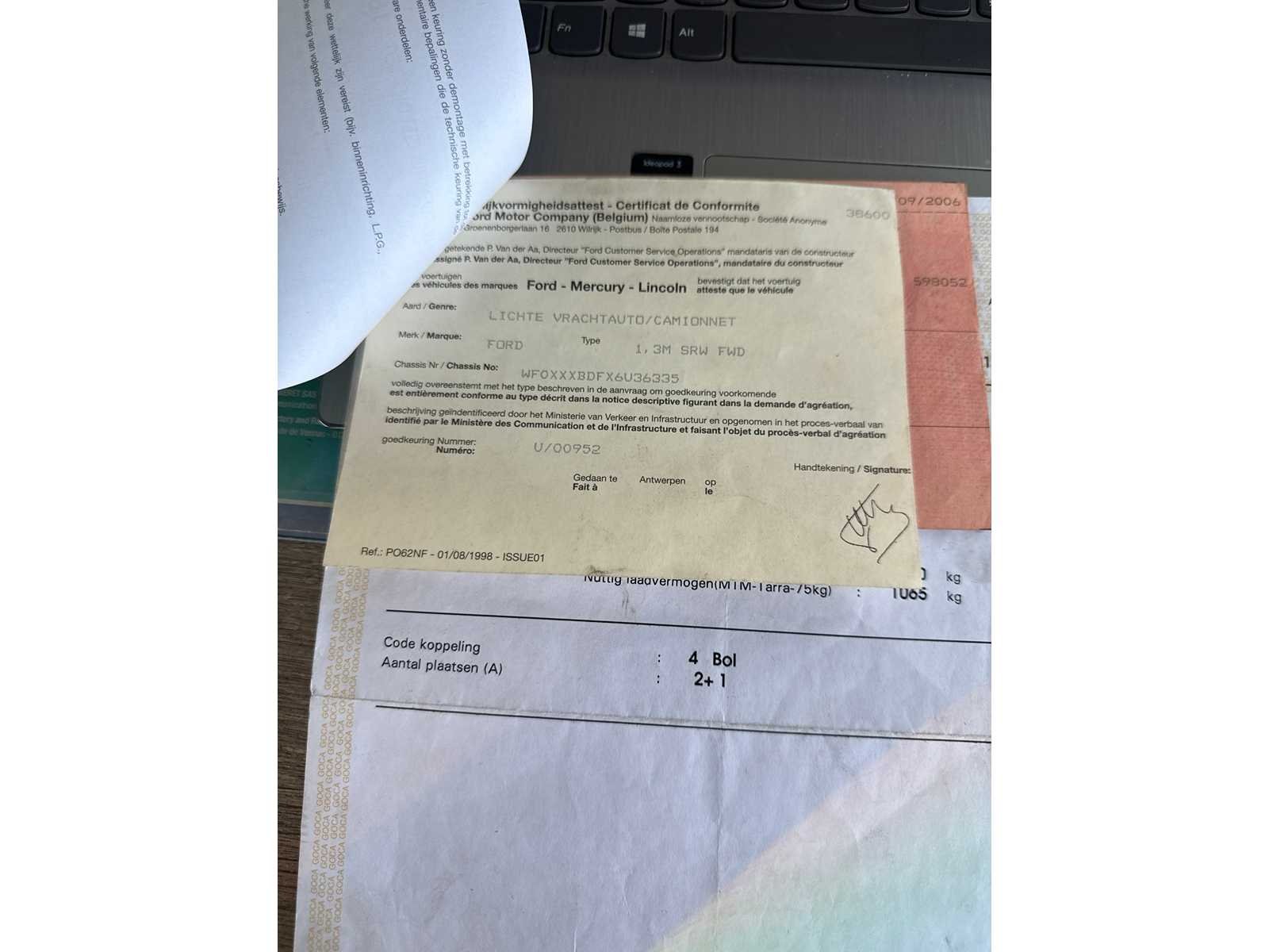 COMPLEET AANWEZIG WEL WAT ROEST PAPIEREN OK RIJD GOED Nee Merk: FORD Model: TRANSIT Bouwjaar: 2006 Afgelezen kilometerstand: 170000km Cilinderinhoud: 2200cc Vermogen (kW): 63kW Brandstof: DIESEL Chassisnummer: WF0XXXBDFX6U36335 Datum eerste toelating: 14-09-2006 Kleur: WIT Transmissie: MANUEEL Emissieklasse: 4 Aantal deuren: 3 Aantal sleutels: 1 Nationaliteit documenten: BELGIE Gelijkvormigheidsattest aanwezig: true Carpass: true Start en rijdt: JA Andere boorddocumenten: COMPLEET startinformatie : JA Inschrijvingsbewijs - deel 1 : AANWEZIG Inschrijvingsbewijs - deel 2: AANWEZIG