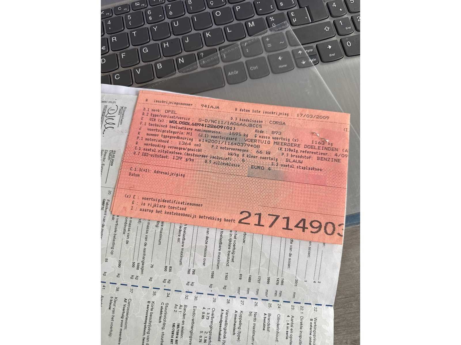 1 STE EIGENAAR PERFECTE STAAT PAPIEREN AANWEZIG Nee Merk: OPEL Model: CORSA Bouwjaar: 2009 Afgelezen kilometerstand: 82000km Cilinderinhoud: 1364cc Vermogen (kW): 66kW Brandstof: BENZINE Chassisnummer: W0L0SDL6894122609 Datum eerste toelating: 17-03-2009 Kleur: BLAUW Transmissie: MANUEEL Aantal deuren: 5 Aantal sleutels: 1 Aantal cilinders: 4 Nationaliteit documenten: BELGIE Onderhoudshistorie: COMPLEET Gelijkvormigheidsattest aanwezig: true Carpass: true Start en rijdt: JA Andere boorddocumenten: COMPLEET startinformatie : JA Inschrijvingsbewijs - deel 1 : AANWEZIG Inschrijvingsbewijs - deel 2: AANWEZIG