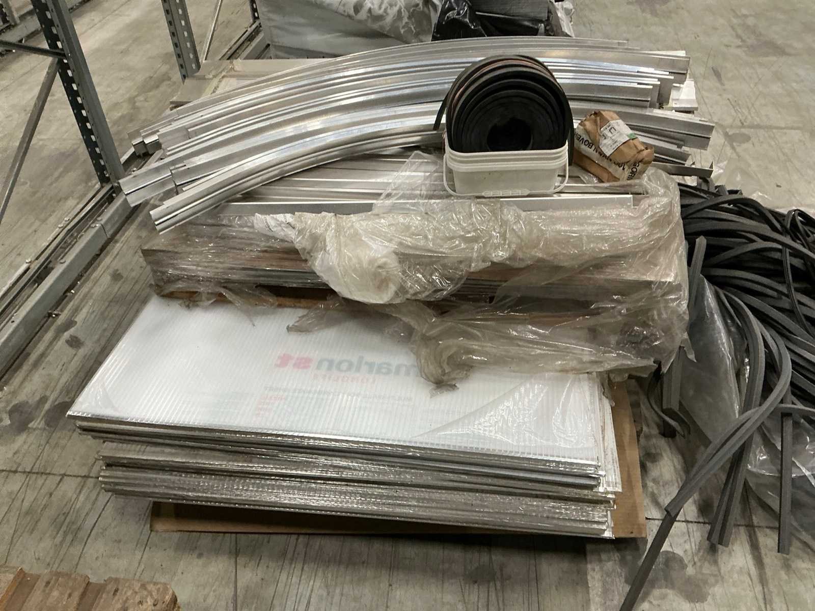 Bestaande uit 23 polycorbonaatplaten, afmeting circa 1,05 x 1,45cm, bevestigingsprofielen en bogen in aluminium Nee