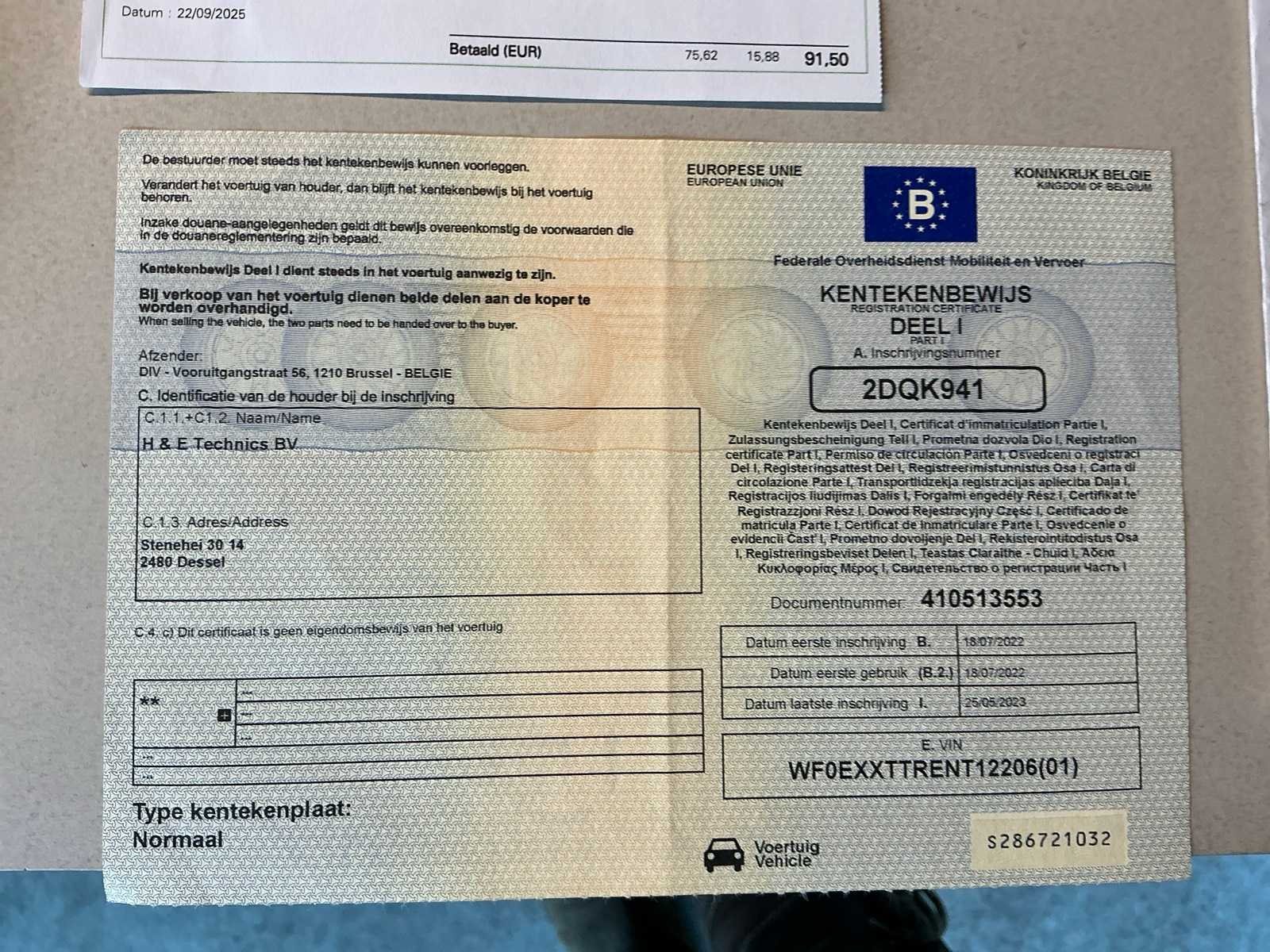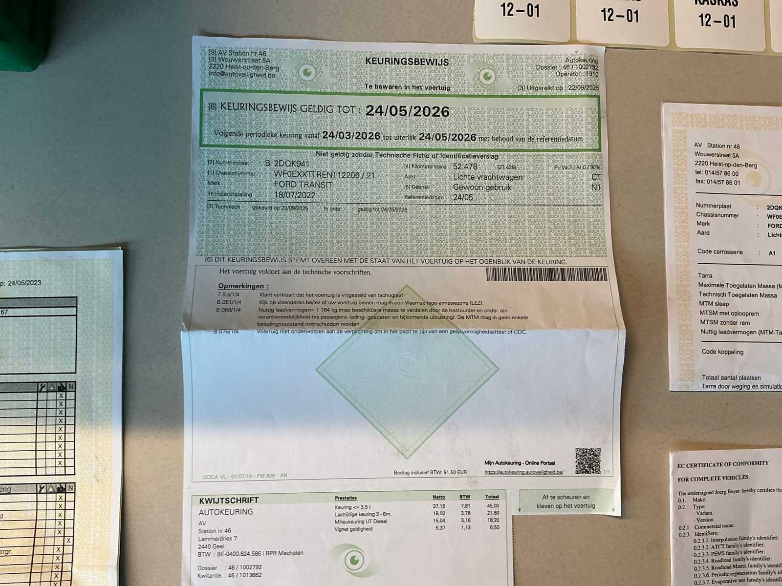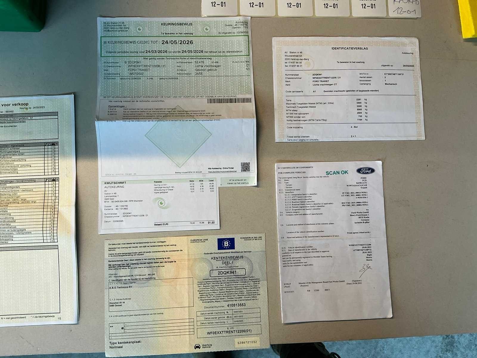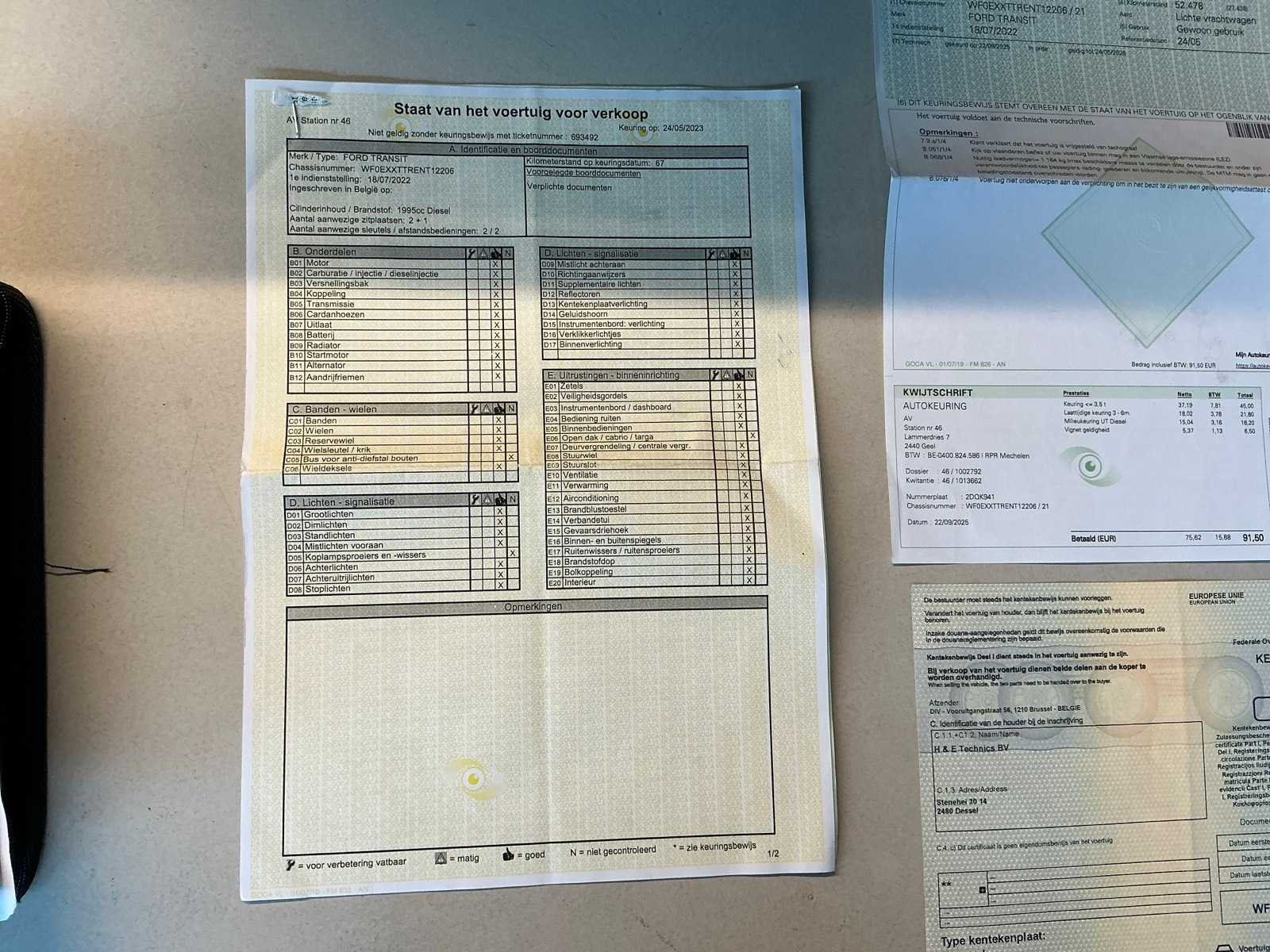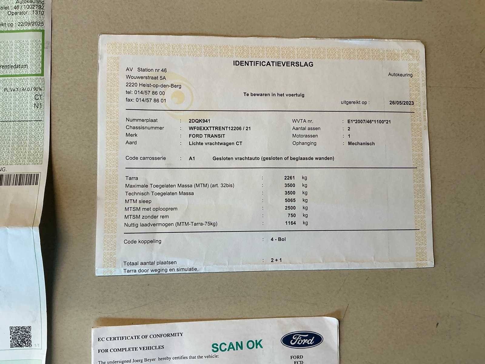 Voorzien van bestelwagen inrichting, met inhoud Nee Merk: Ford Model: Transit Bouwjaar: 2022 Cilinderinhoud: 1995cc Vermogen (kW): 77kW Brandstof: diesel Chassisnummer: WF0EXXTTRENT12206 Datum eerste toelating: 18/07/2022 Transmissie: Handgeschakeld Emissieklasse: Euro 6a Aantal sleutels: 2 Nationaliteit documenten: België Gelijkvormigheidsattest aanwezig: true Carpass: true Start en rijdt: Ja Keuringsrapport geldig tot: 24/05/2026 Andere boorddocumenten: ID verslag Vavato voert geen technische keuring uit.: true Inschrijvingsbewijs - deel 1 : Aanwezig Inschrijvingsbewijs - deel 2: Niet aanwezig