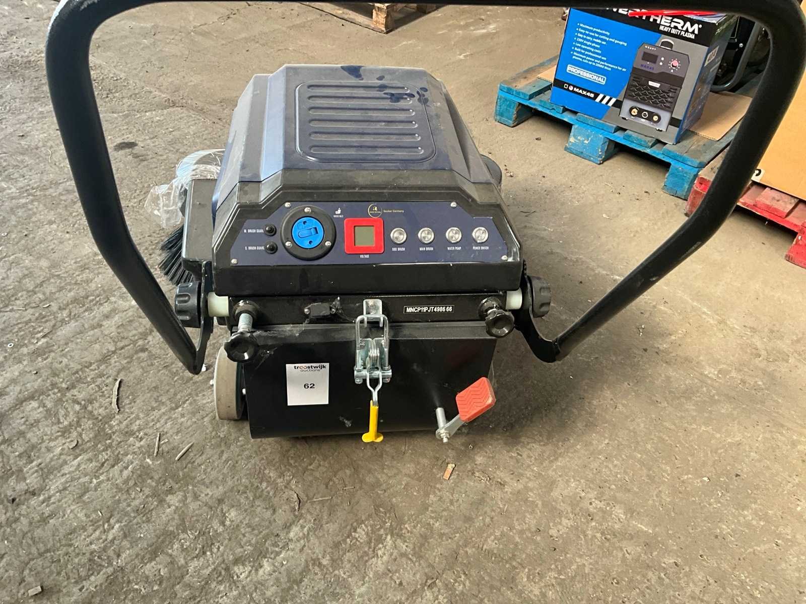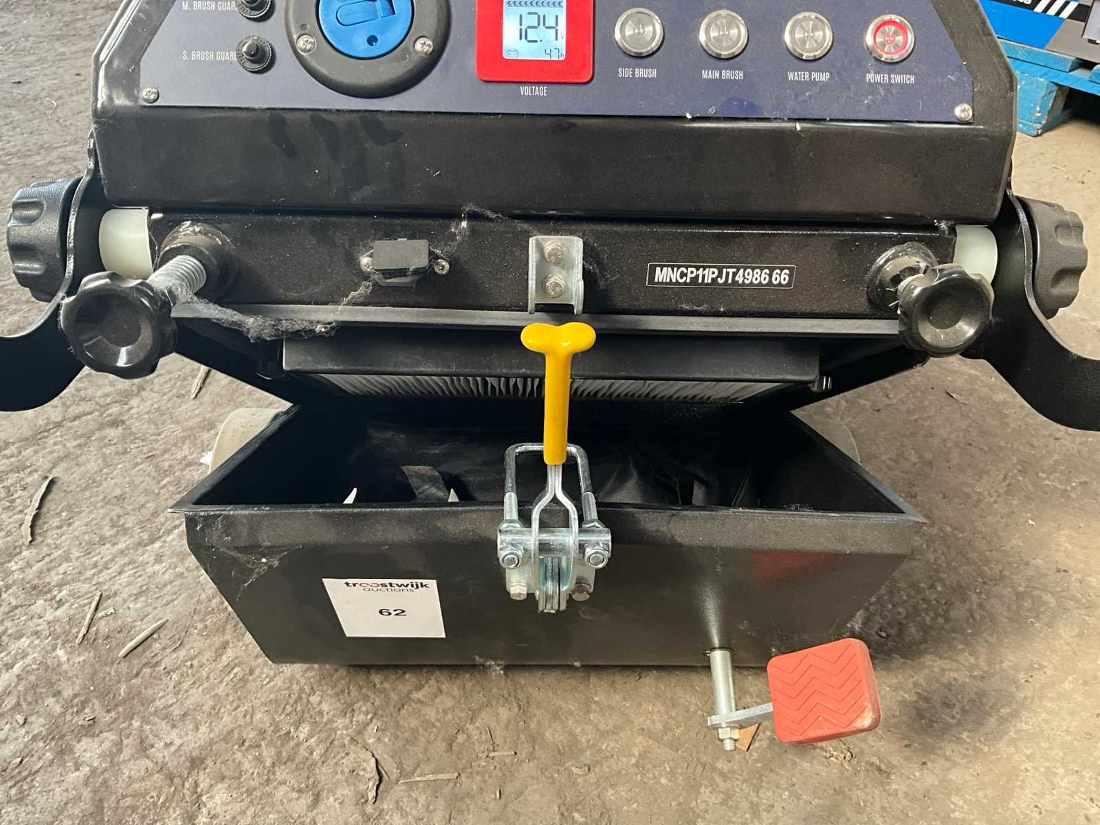 Voorzien van watertank 22 liter, 2x zijborstel diameter 400 mm, ongebruikt Nee Merk: Sauber Germany Type: SG-S-1000 Werkbreedte: 1000mm Kilometerstand bij opname: 5hr Elektrisch: true Aansluiting: 12V Accu lader: true Oplaadbaar: true Eigen gewicht: 91kg Totale afmeting L: 1000mm Totale afmeting Breedte: 1300mm Totale afmeting Hoogte: 1000mm