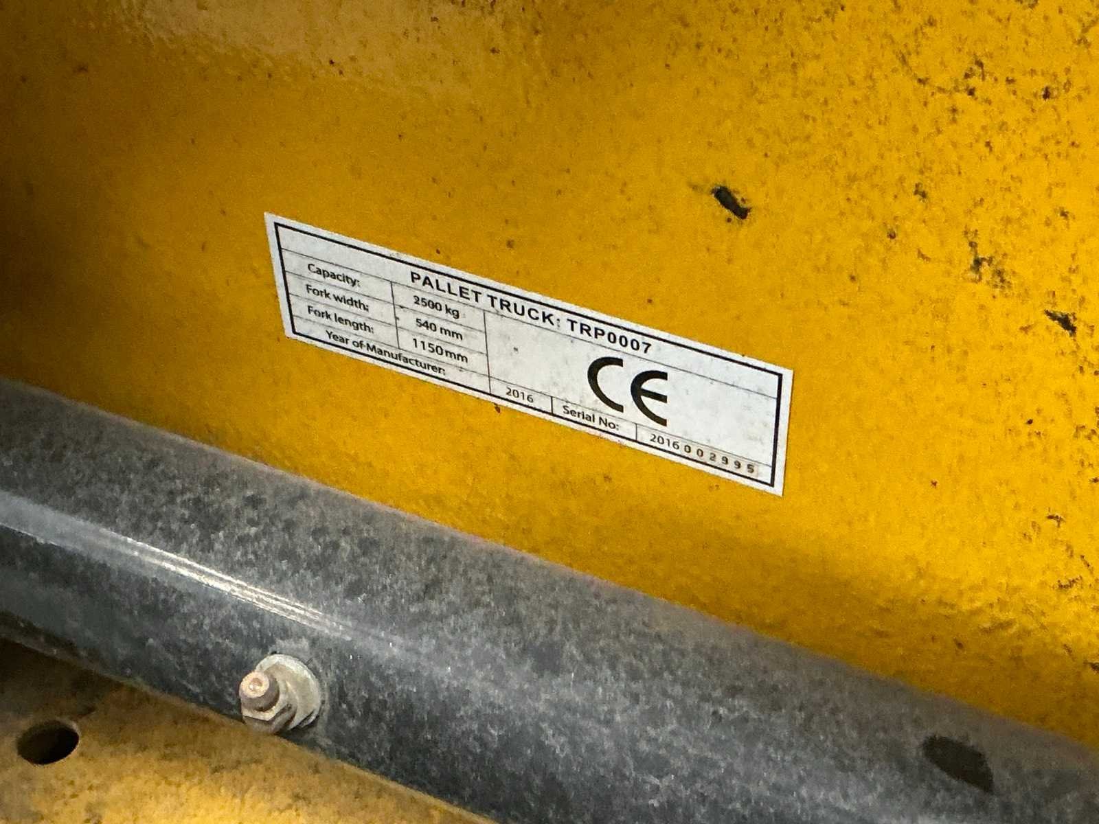 Nee Merk: Total Source Type: TRP0007 Bouwjaar: 2016 Hefvermogen: 2500kg Lepellengte: 1150mm Eigen gewicht: 75kg