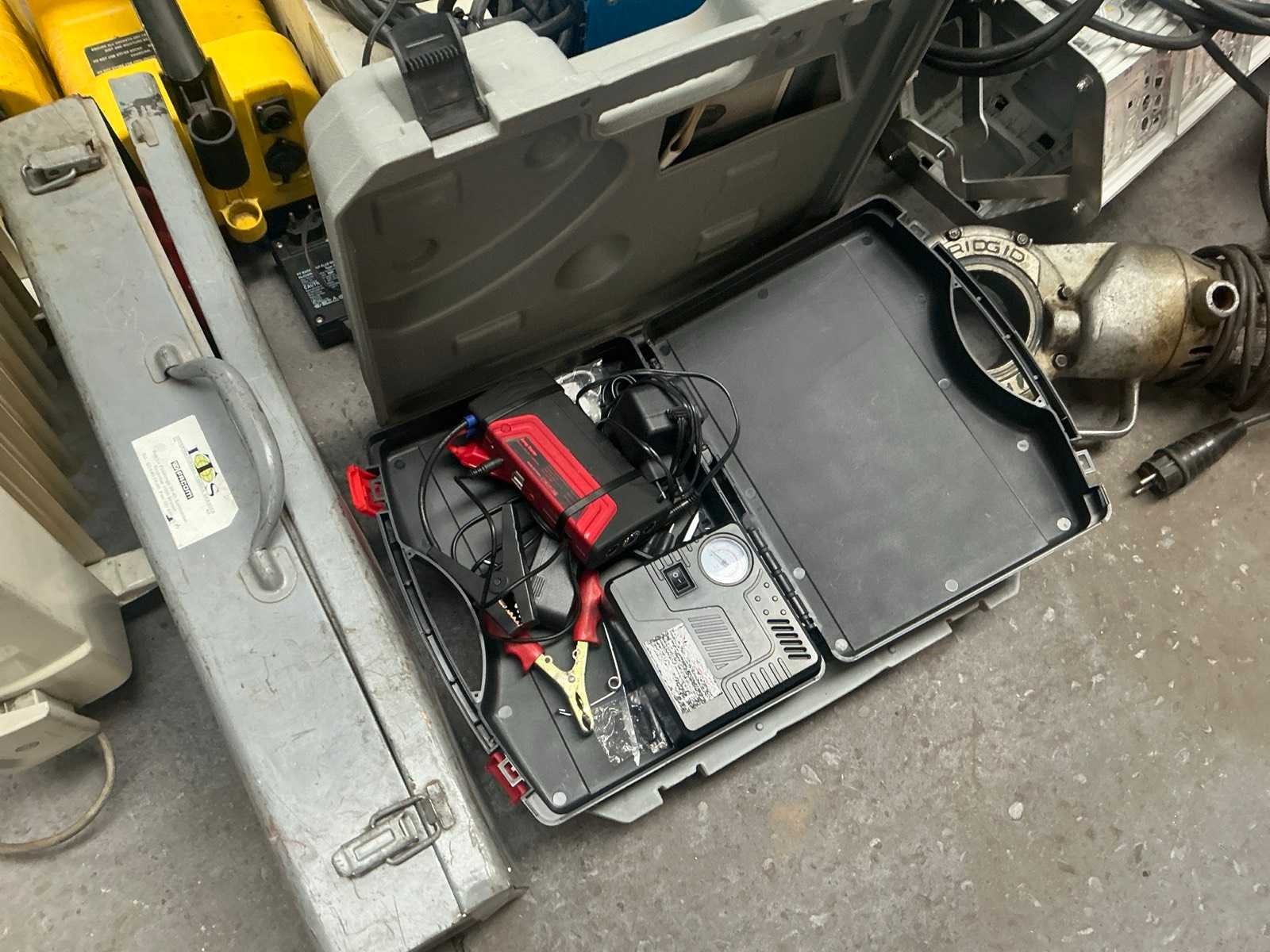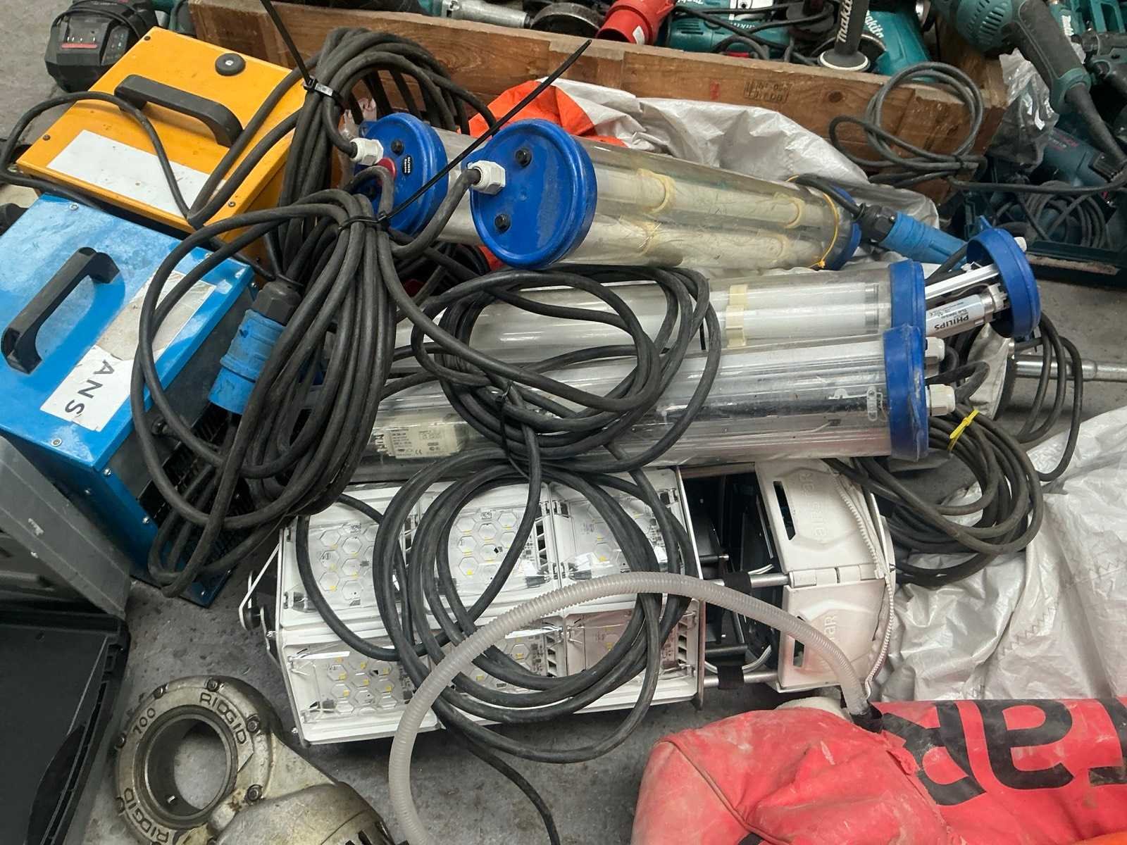 Bestaande uit onder meer: heaters, olie verwarming, Ridgid 550, Ridgid 700, opplaasbare lichtballon, diverse koppelbare werfverlichting, EWM Tig-lasapparaat,… Nee