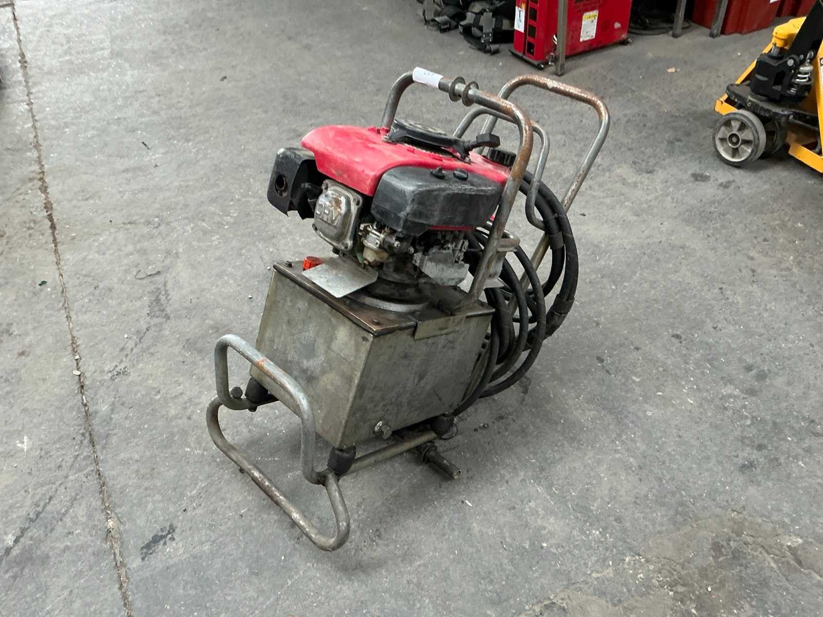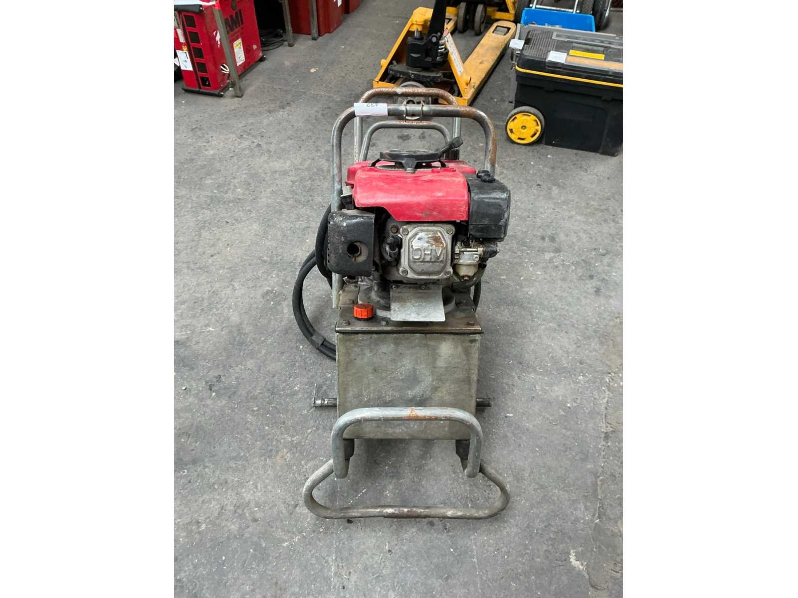 Voorzien van benzinemotor, op mobiele onderstel. Wielen ontbreken! Nee