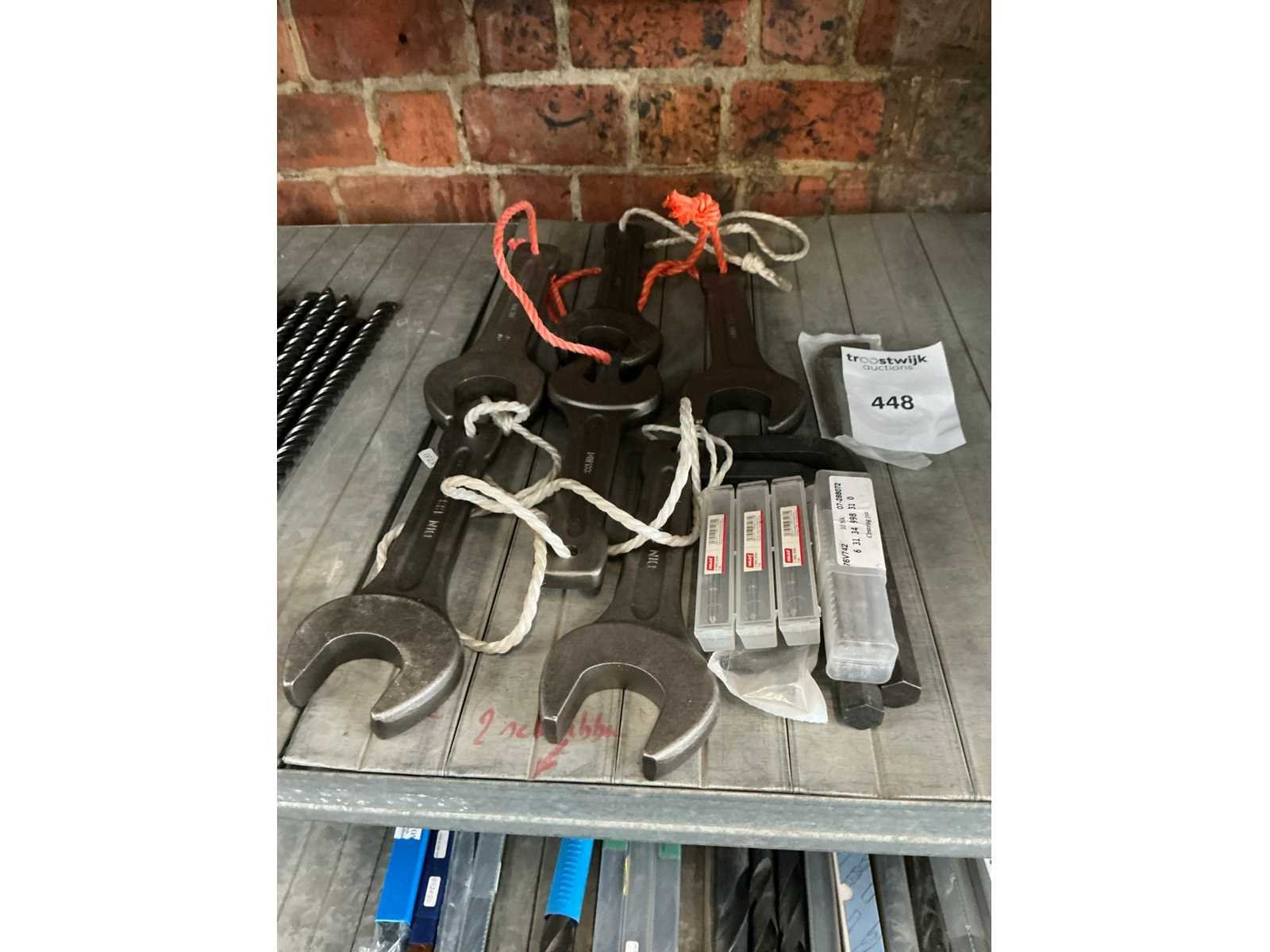 Steeksleutel 40 (3x) en 42 (3x). Grote inbus (2x). Puntslag (10x). Torx 50 (2x) Nee