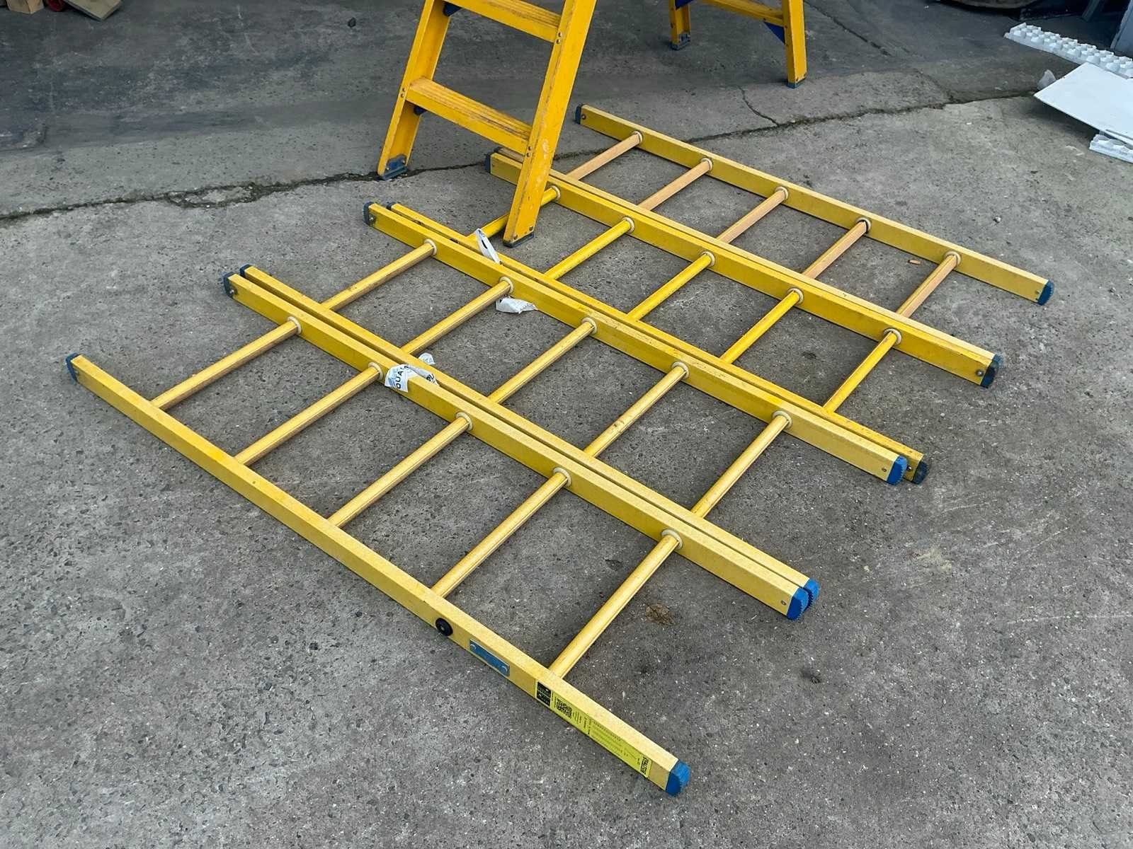 Bestaande uit: 4x enkel ladder 5 sporten, 1x trapladder dubbel 2x6 treden (te herstellen!) Nee Merk: Staltor
