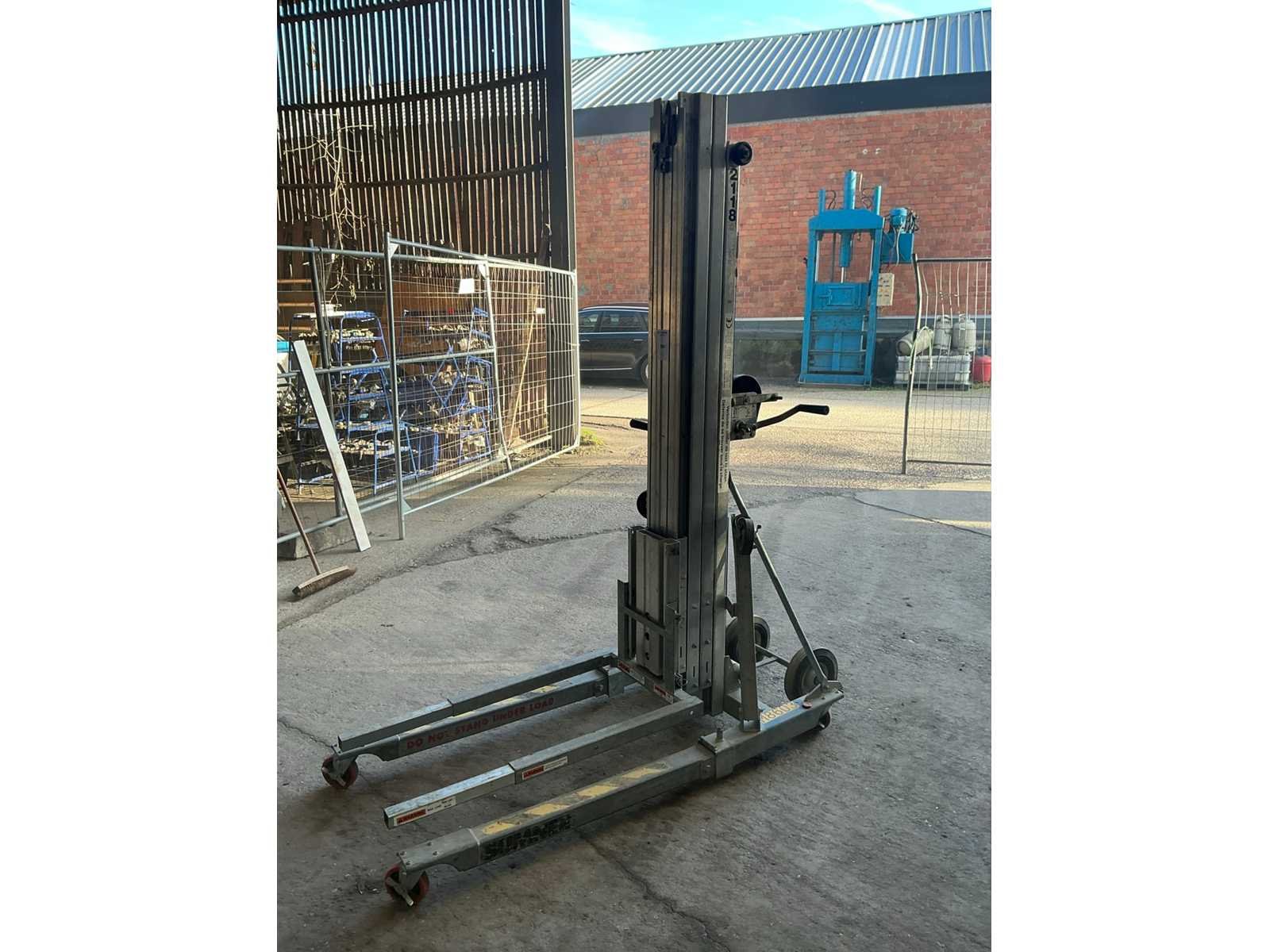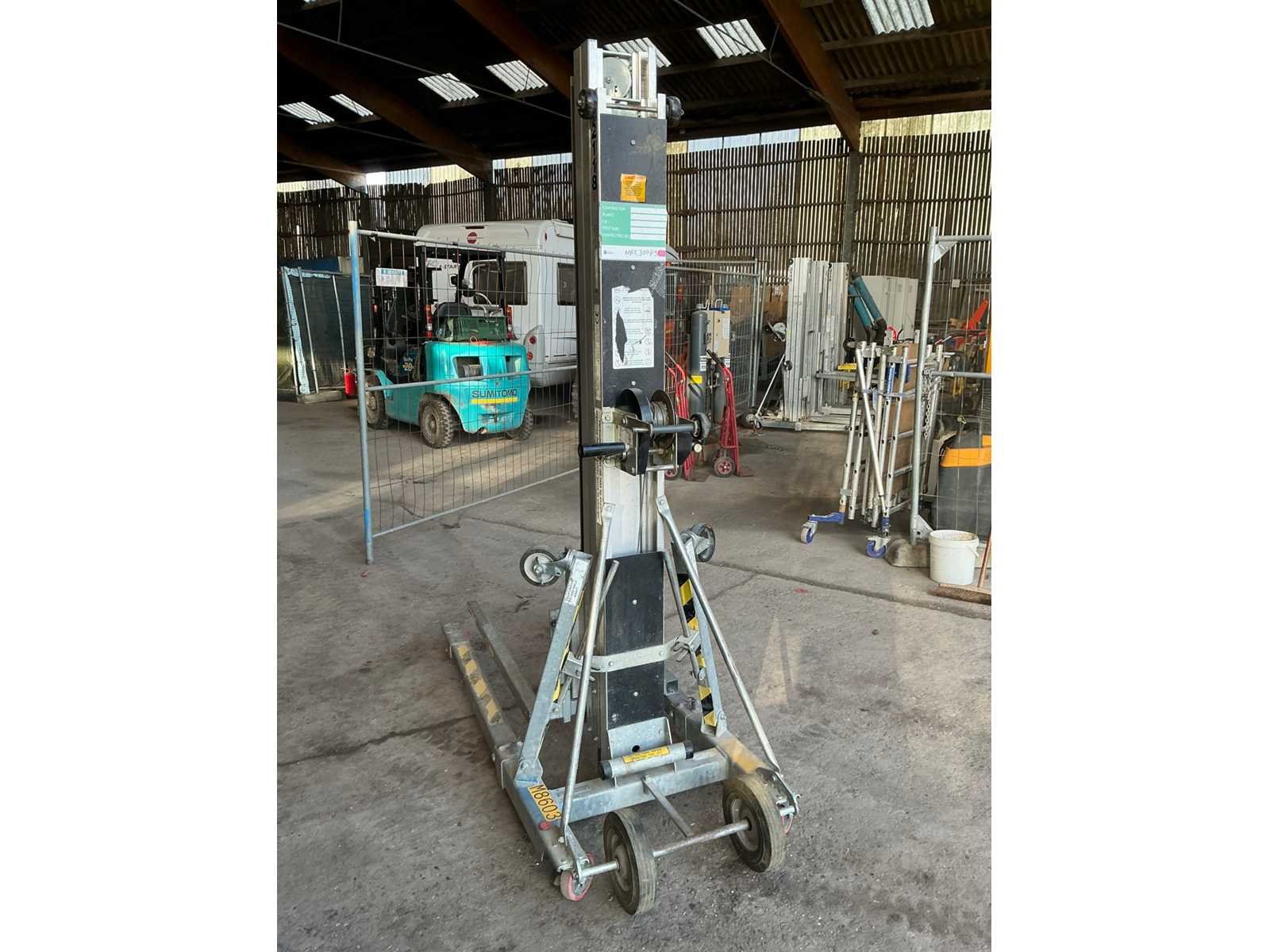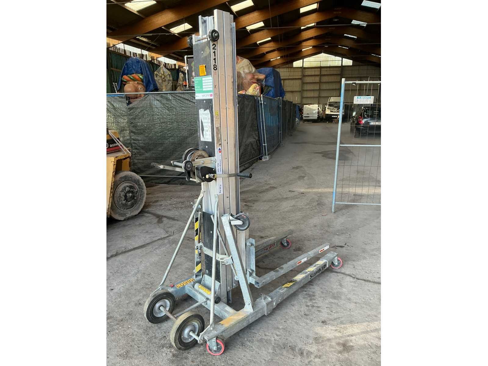 Nee Merk: Sumner Type: Model 2118 Serienummer: 13627 Max. hefhoogte: 5600mm Max. hefcapaciteit: 300kg Totale afmeting L: 1850mm Totale afmeting Breedte: 770mm Totale afmeting Hoogte: 2250mm