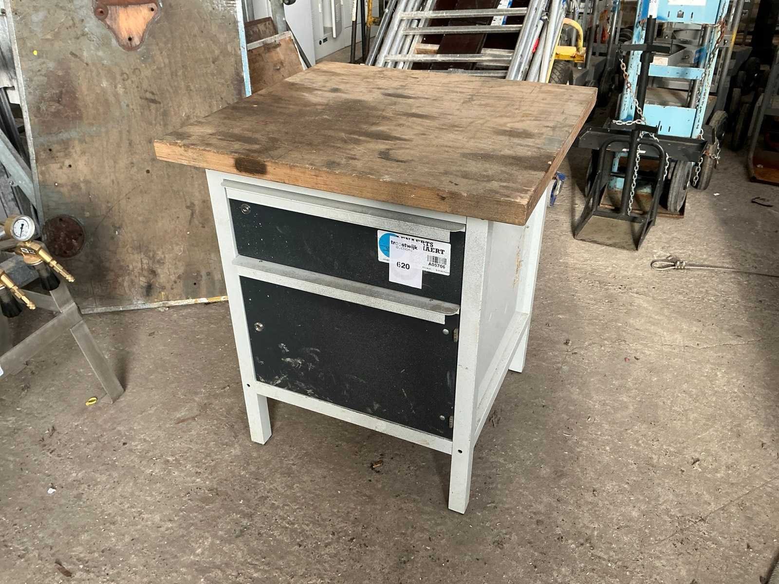 Metalen kast met houten werkblad, 1 lade en 1 deur Nee Lengte: 70cm Breedte: 75cm Hoogte: 86cm
