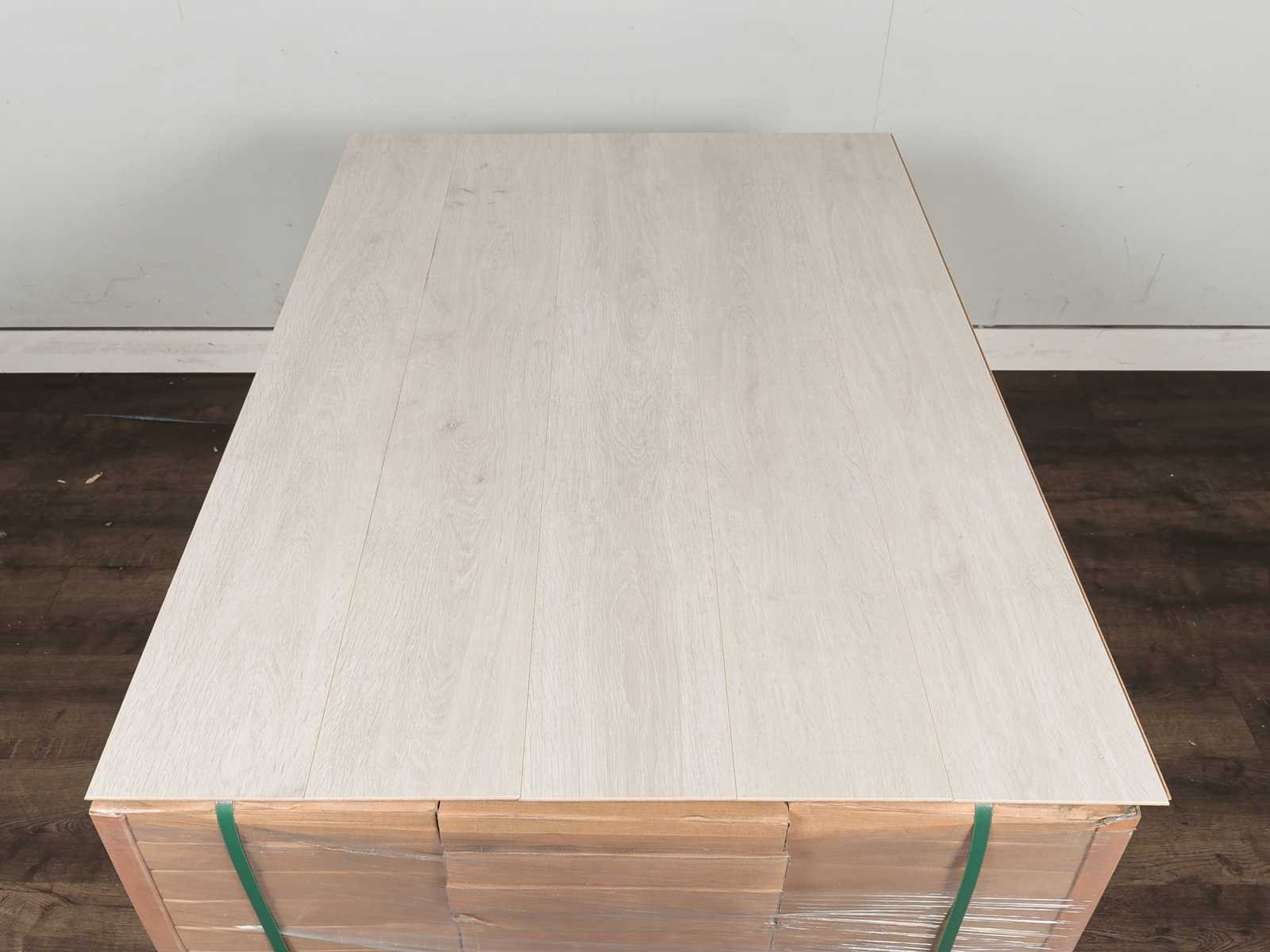 Kwaliteits laminaat vloer, dikte 8 mm, voorzien van clicksysteem, goed te combineren met vloerverwarming, kras en slijtvast, anti slip, gemakkelijk schoon te maken, warm en comfortabel, 51 pakken a 2,40 m2 No Merk: Krono flooring Product type: Laminaat Oppervlakte: 122m² Geschikt voor vloerverwarming: Ja V-groef: Ja Afwerking: Voelbaar structuur, anti slip, met v-groef Aantal m² per verpakking: 2.4m² Kleur: Oak brooklyn Gewicht: 765kg Lengte: 1383mm Breedte: 193mm Materiaal: HDF/MDF