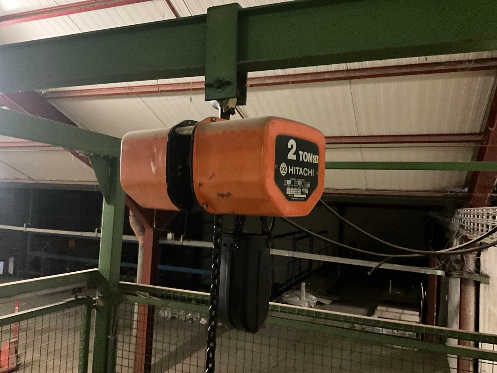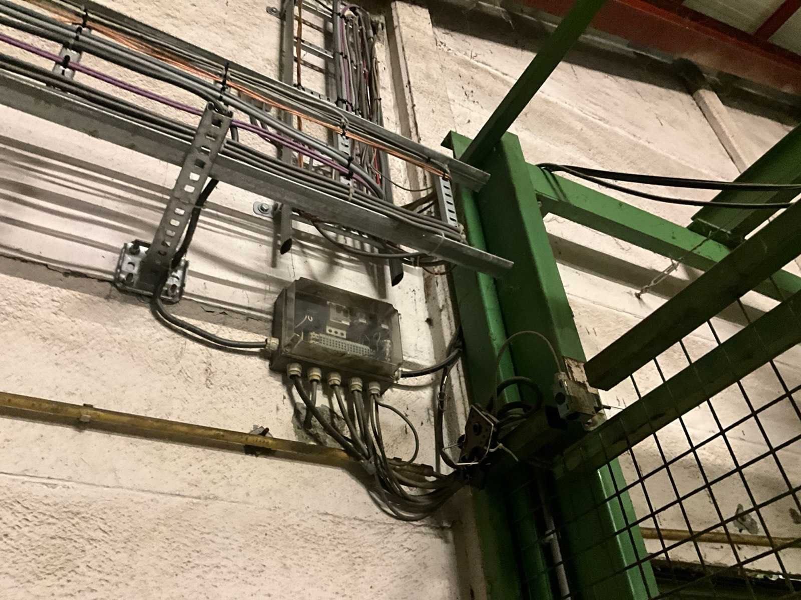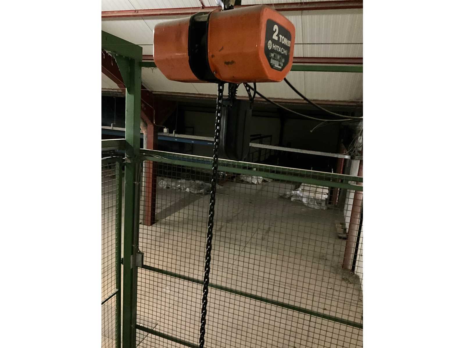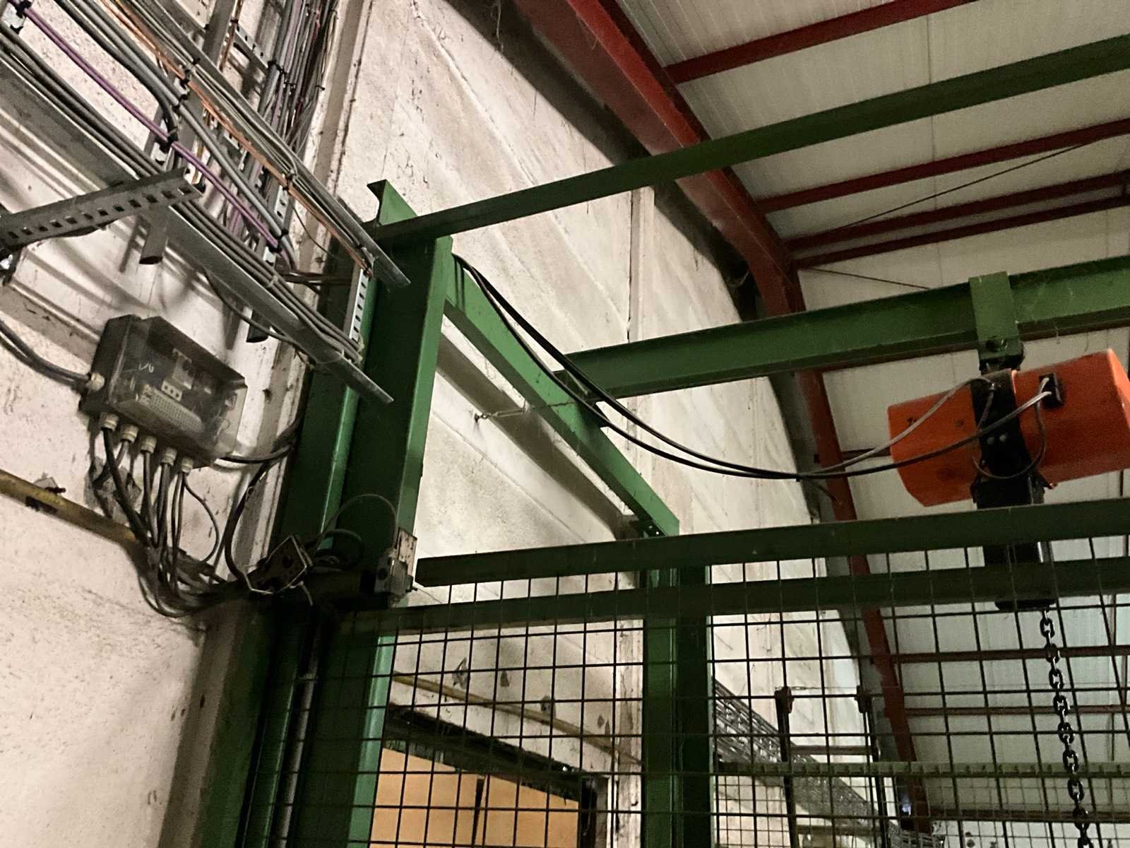 Voorzien van schuifdeur onderaan en bovenaan, lift in metalen traliewerk, voorzien van platform, en bovenaan met kettingtakel Hitachi 2 ton voorzien van haak. Achterwand is open, staat tegen muur. Nee Max. platformhoogte: 2.5m Max. belasting: 1500kg Plateau afm. l: 2500mm Plateau afm. b: 1900mm Totale afmeting L: 2800mm Totale afmeting Breedte: 2500mm Totale afmeting Hoogte: 6300mm