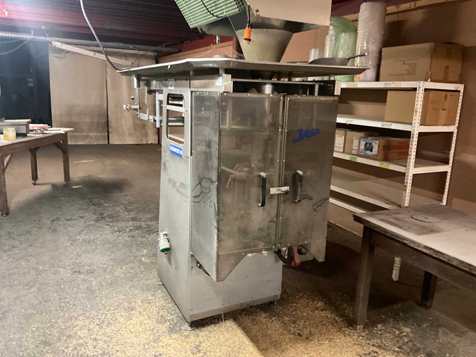 Waarvan 1 voorzien van rvs zakvulmachine JASA 750/PMT, met afmeting 130 x 200 x 160 cm hoog, met 2 harmonicadeuren vooraan en schakelkast, Compleet met 3 diverse weegtrechters (afzakposten 01, 03 en 05). Nee Totale afmeting L: 2000mm Totale afmeting Breedte: 1300mm Totale afmeting Hoogte: 1650mm