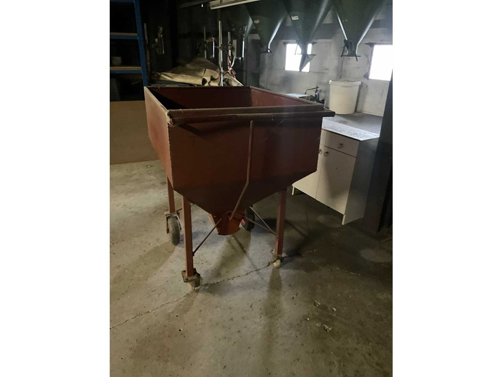 Onderaan voorzien van klep met opening om af te vullen. Met 2 vaste en 2 zwenkwielen. Nee Lengte: 100cm Breedte: 80cm Hoogte: 117cm