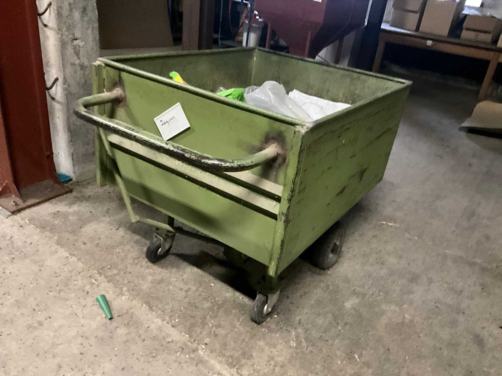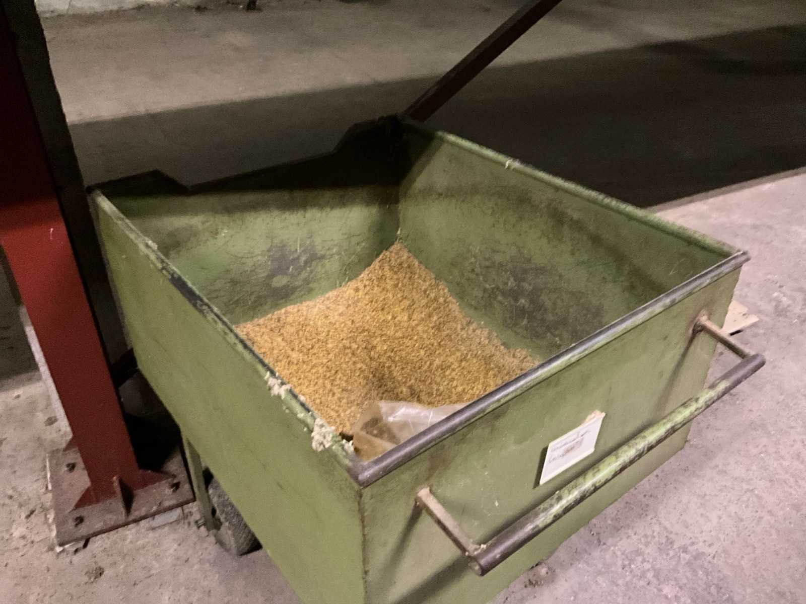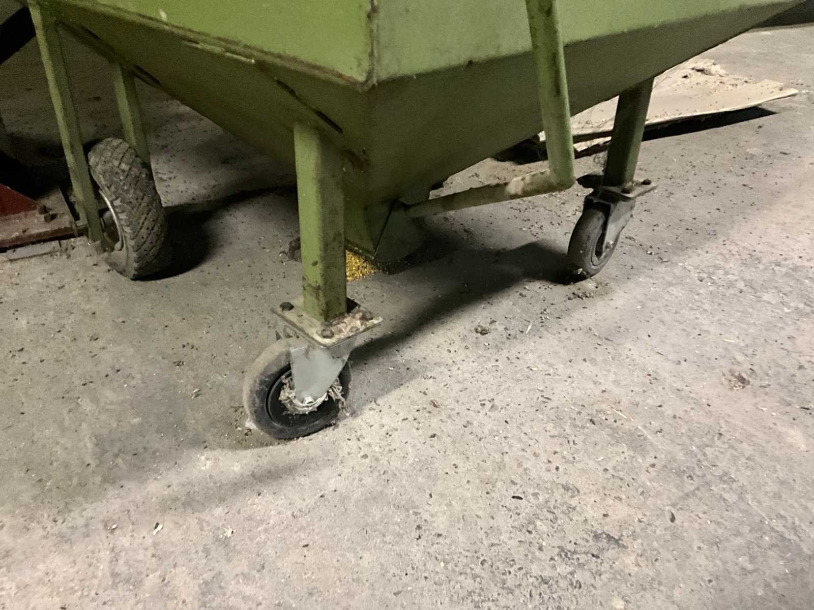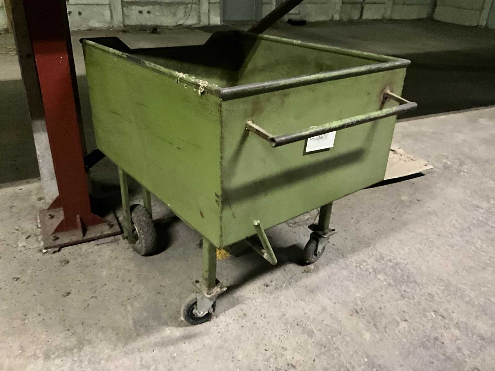 In metalen uitvoering en om goederen/grondstoffen mee te vervoeren. Telkens voorzien van handvat en hendel om bepaalde hoeveelheden/porties af te laten. Nee Totale afmeting L: 1150mm Totale afmeting Breedte: 820mm Totale afmeting Hoogte: 900mm