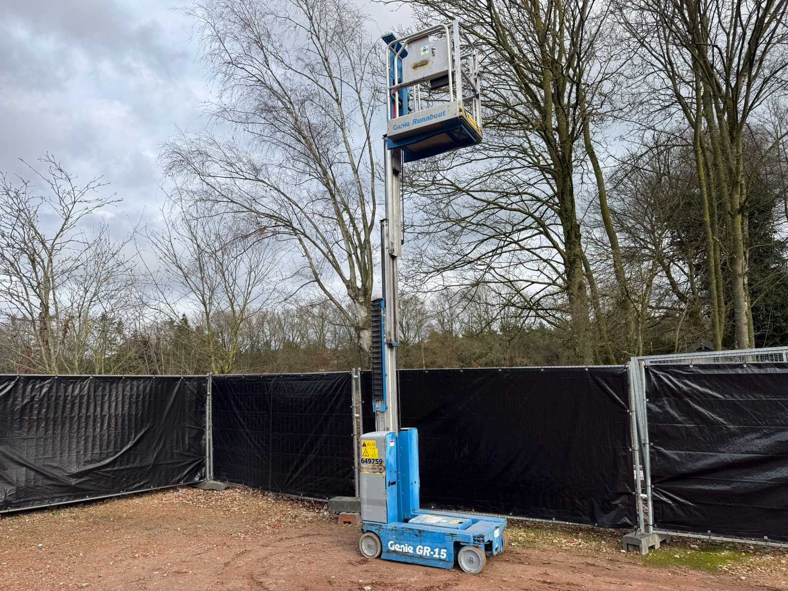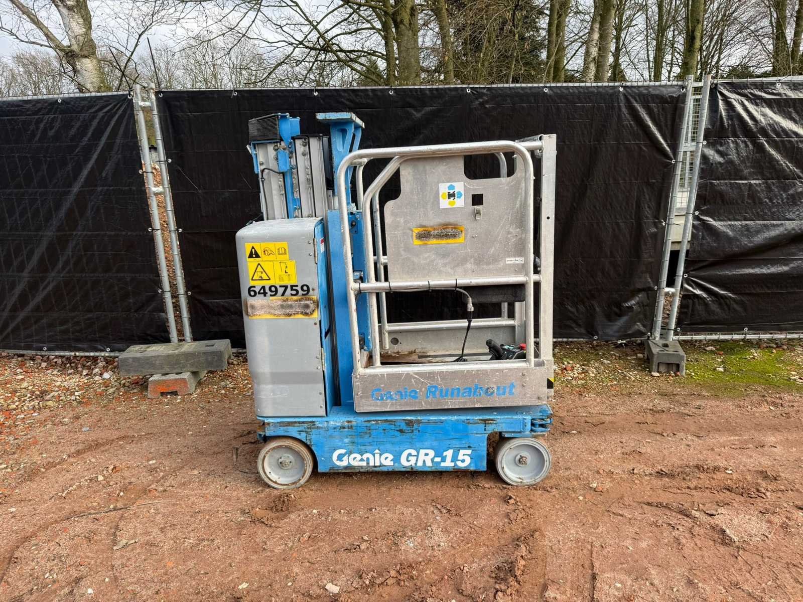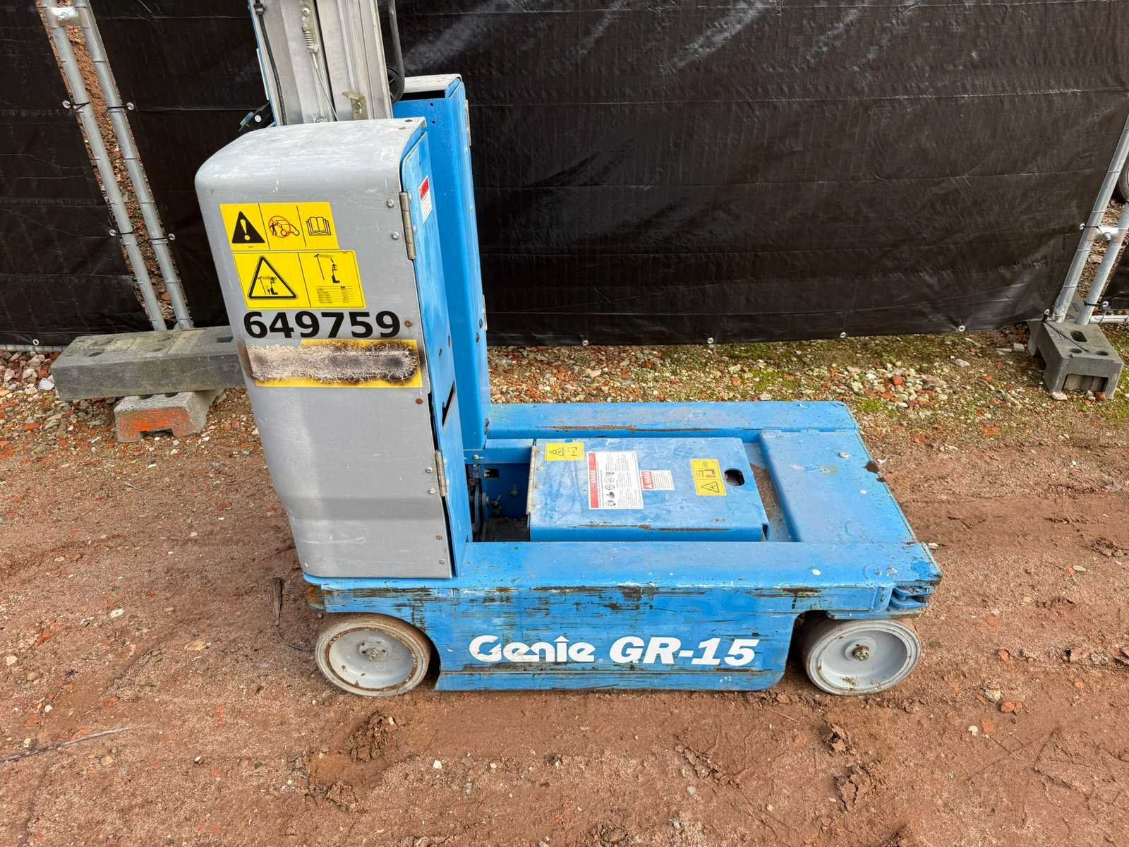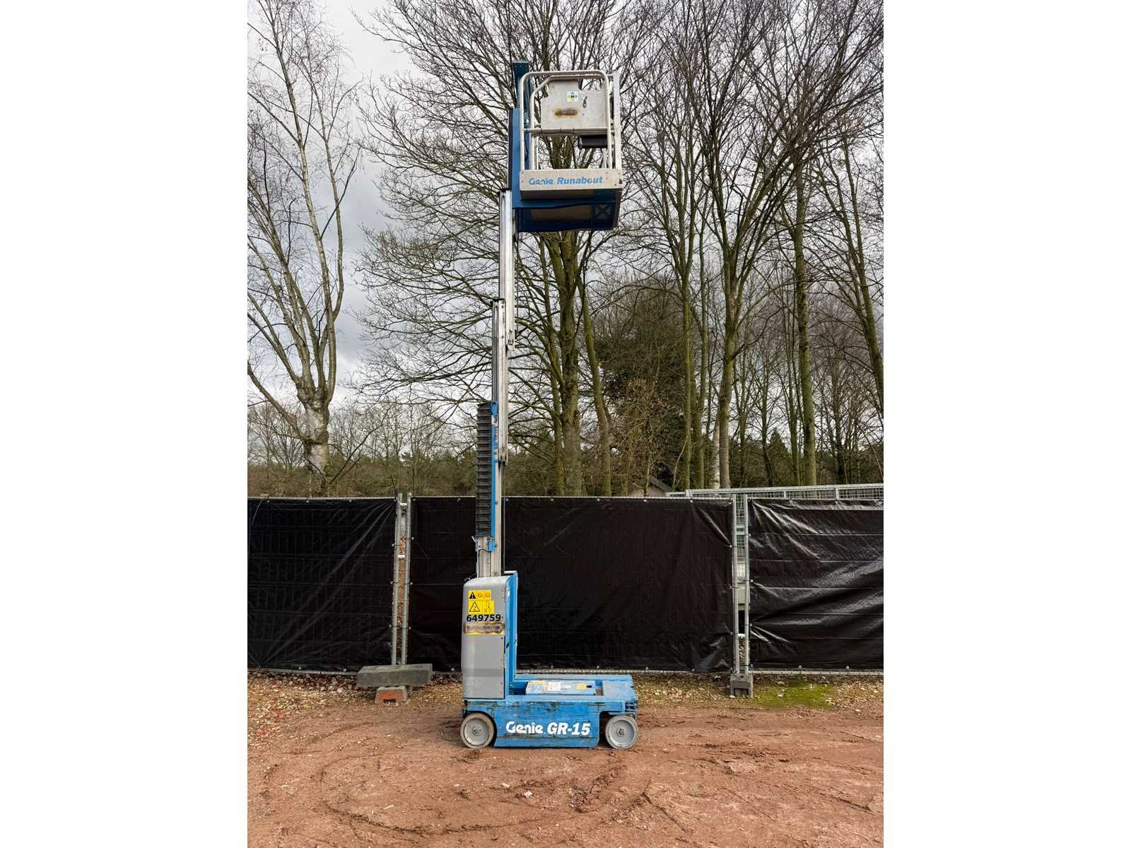 Nee Merk: Genie Type: GR-15 Runabout Bouwjaar: 2015 Elektrisch: true Masthoogwerker: true Werkhoogte: 4500mm Platform capaciteit: 227kg Afgelezen urenstand: 234 Eigen gewicht: 1023kg