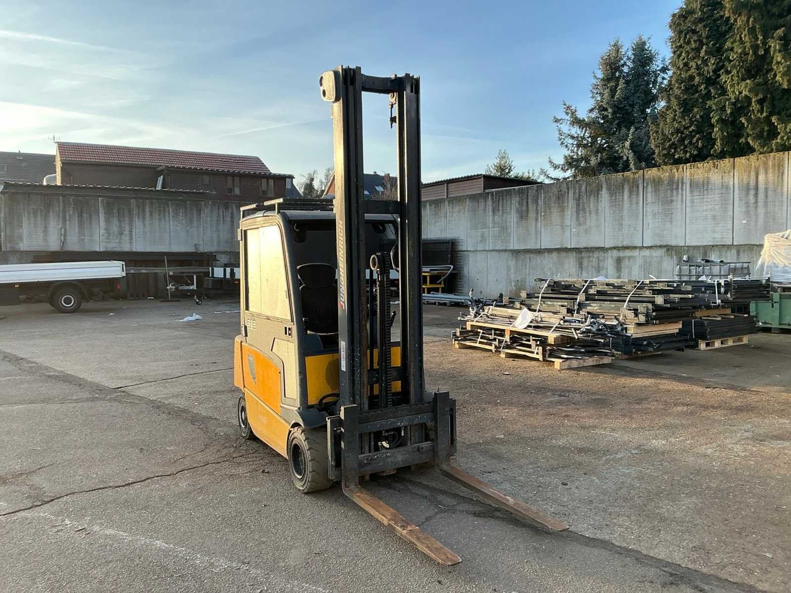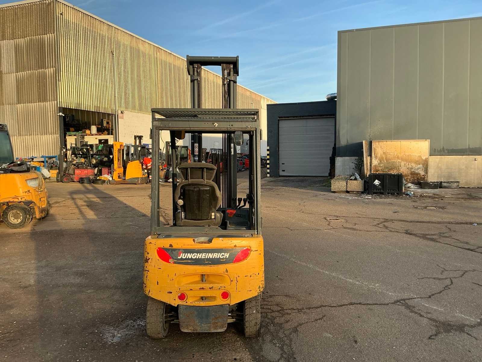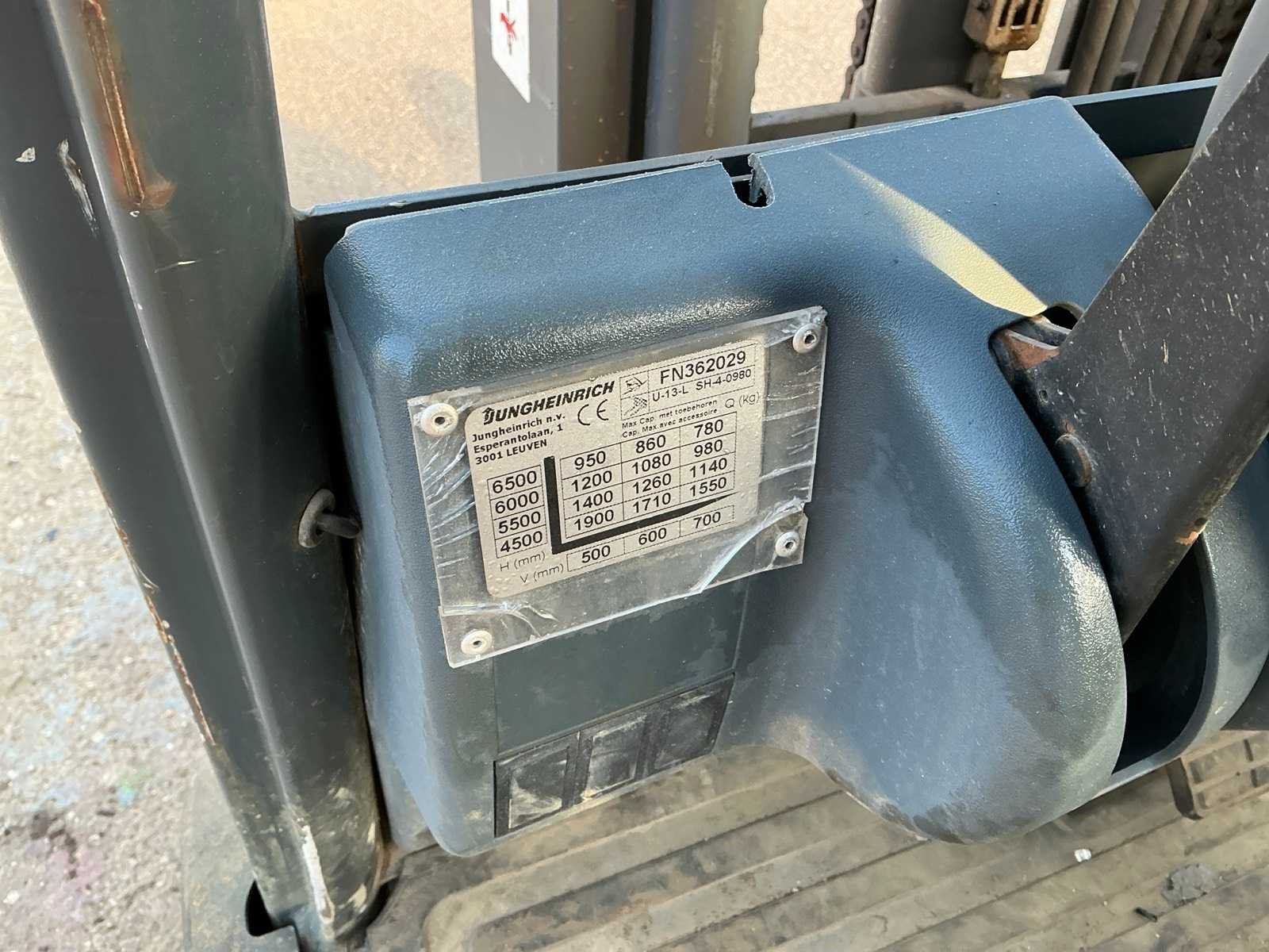 Heftruck start,rijdt en voert alle functies uit. Nee Merk: Jungheinrich Type: EFG 320 Bouwjaar: 2007 Brandstof: Elektrisch Soort band: Volrubber banden Afgelezen urenstand: 2400 Accu lader: true Side-shift: true Triple mast: true Hefhoogte: 6500mm Vol rubber banden: true Minimale doorrijhoogte: 28000mm Leveringsvoorwaarden: Niet gefundeerd - onverpakt