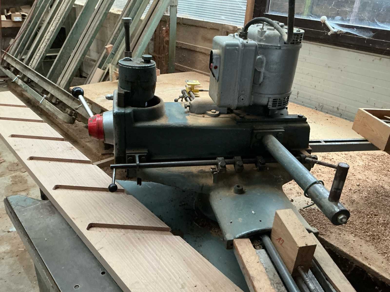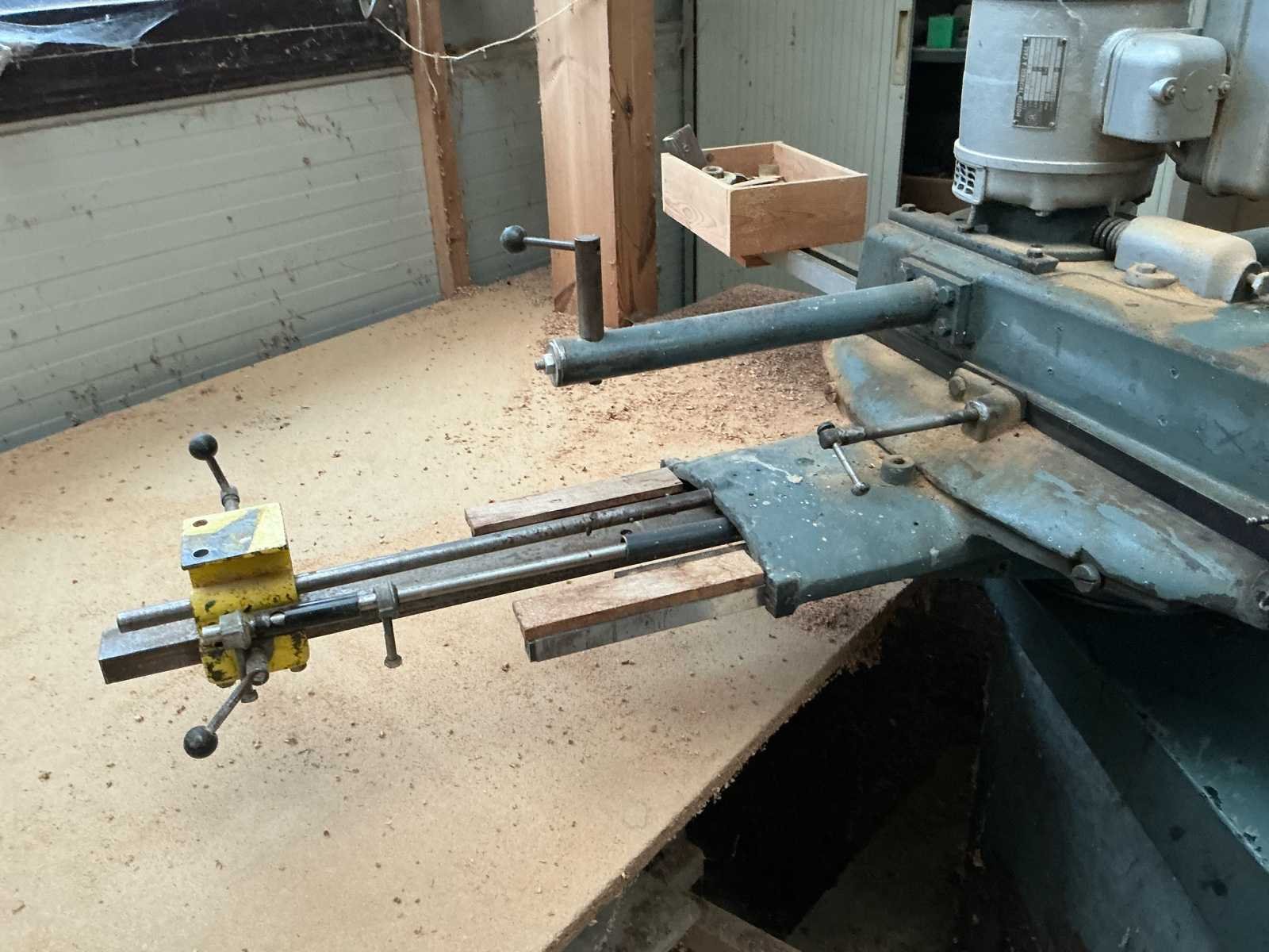 Verkoop wegens stopzetting bedrijf door overlijden. De tafel heeft meestal T‑sleuven om werkstukken of klemmen vast te zetten, en kan X‑ en Y‑verplaatsing uitvoeren (vooraf besproken: X ≈ 230 mm, Y ≈ 160 mm). No Type: HBM BF 16 Freesmachine Grote tafel Serienummer: 16RM72493 Verplaatsing x-as: 250mm Verplaatsing y-as: 160mm Verplaatsing z-as: 210mm Snelheid van n =: 3300rpm Tafel afmeting l: 330mm Tafel afmeting b: 150mm Totale afmeting L: 500mm Totale afmeting Breedte: 400mm Totale afmeting Hoogte: 1050mm
