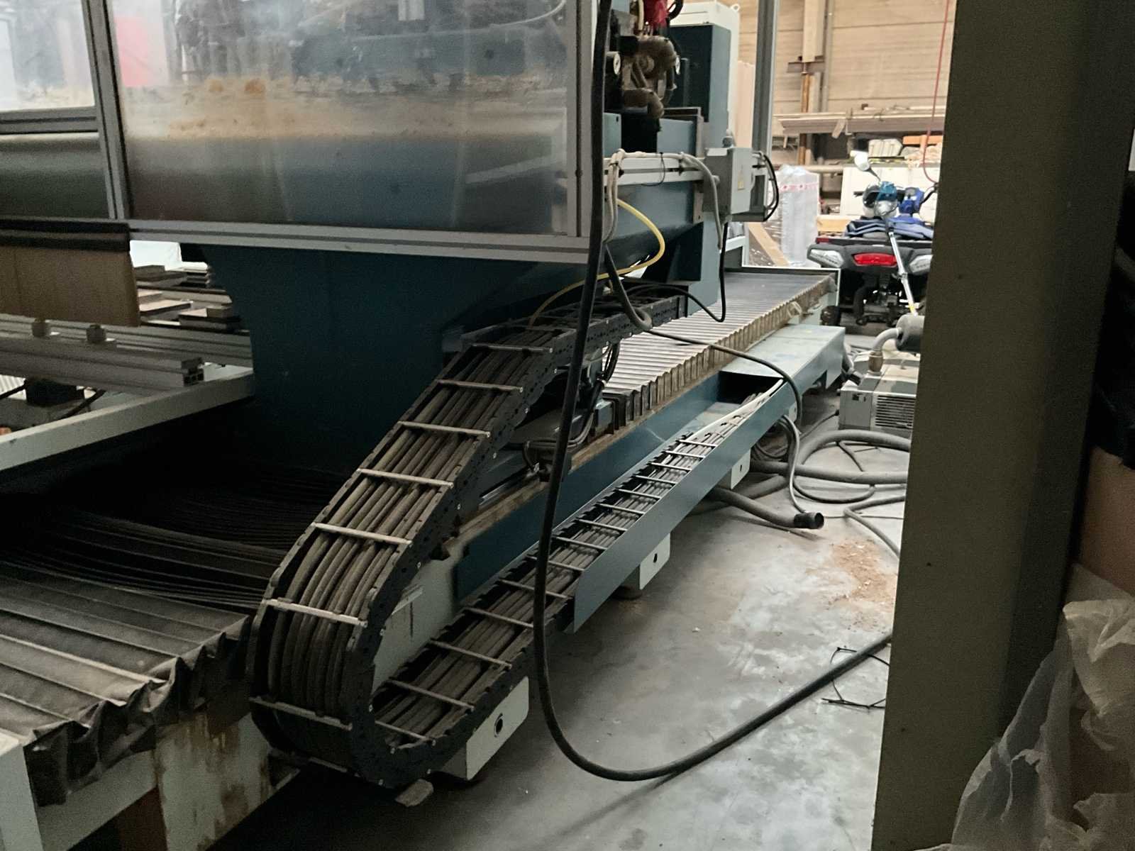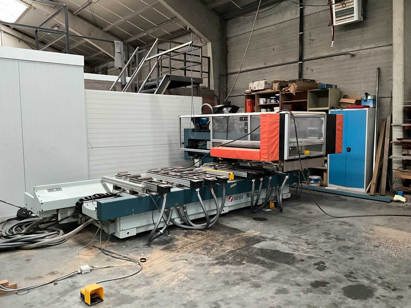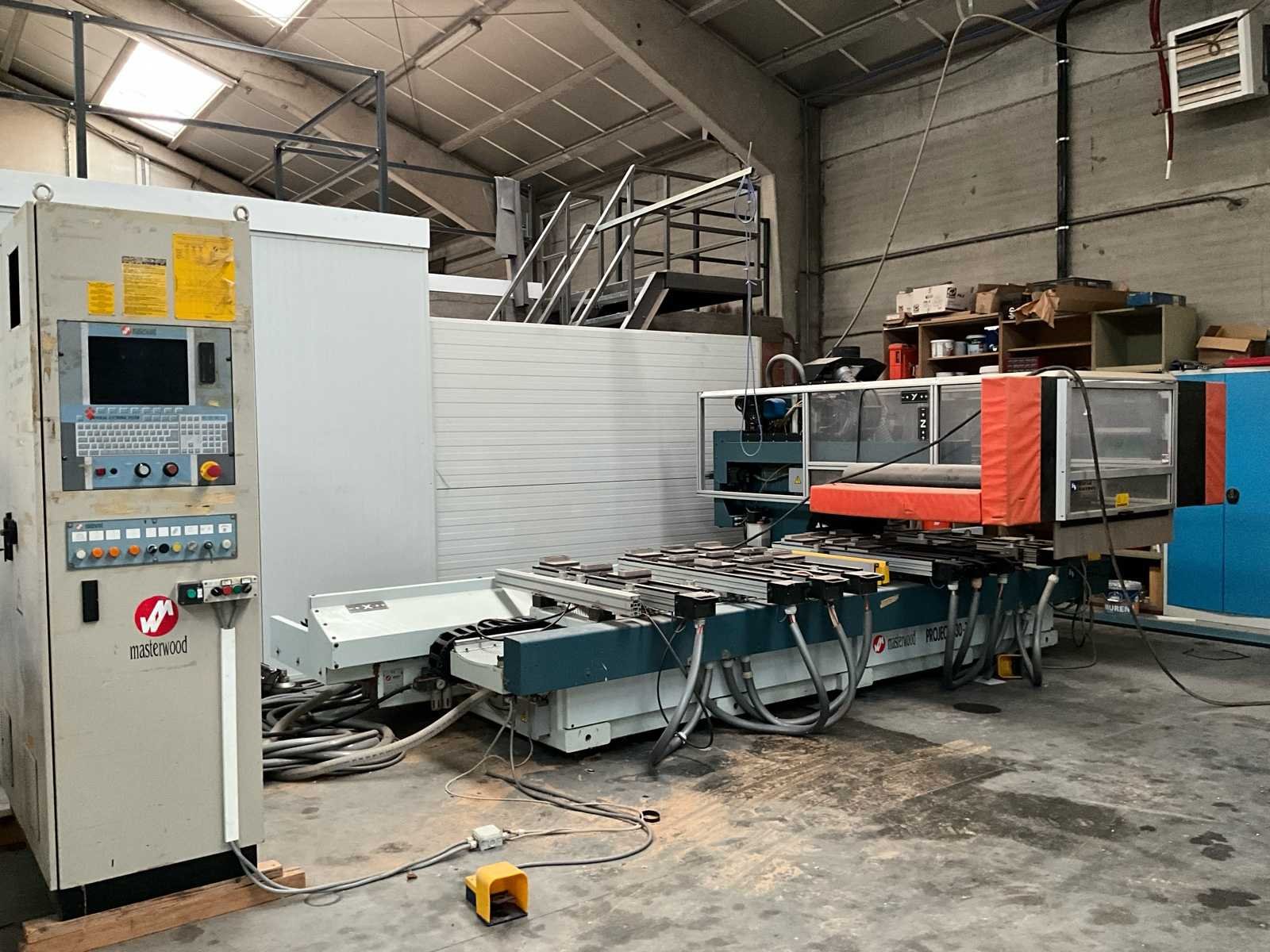 Afmetingen 5800x3000x1850 mm. Zonder afzuiging. No Merk: Masterwood Type: Project 330-T Bouwjaar: 1998 Snelheid van n =: 1000rpm Verplaatsing x-as: 3200mm Machinegewicht: 5000kg Snelheid tot n =: 18000rpm Verplaatsing z-as: 110mm Verplaatsing y-as: 1300mm Aansluiting: 380V