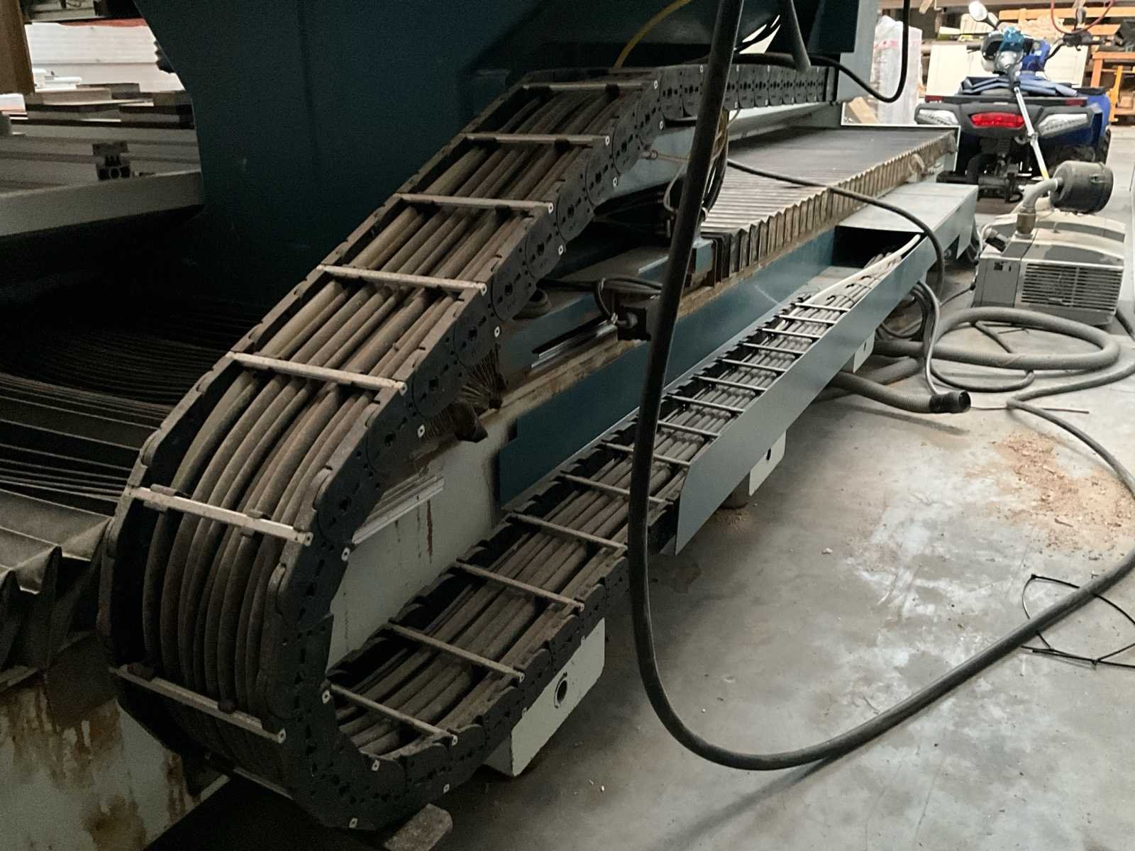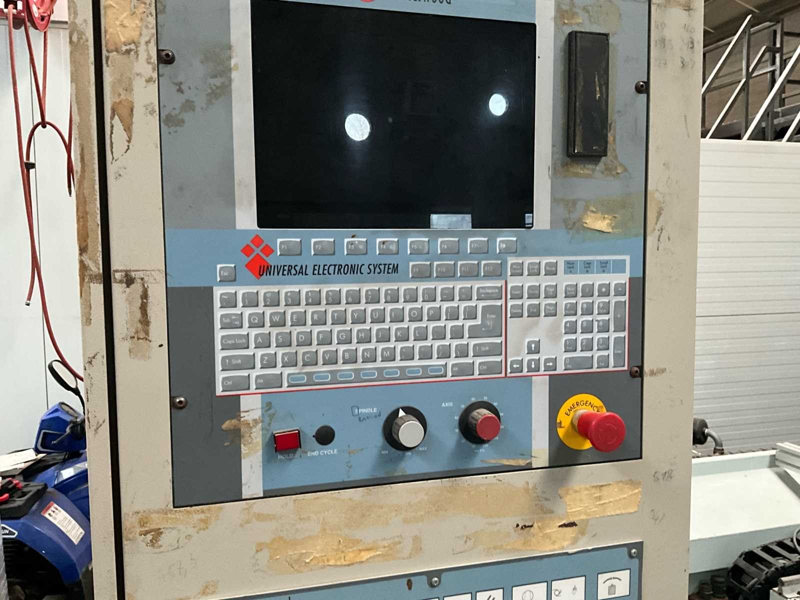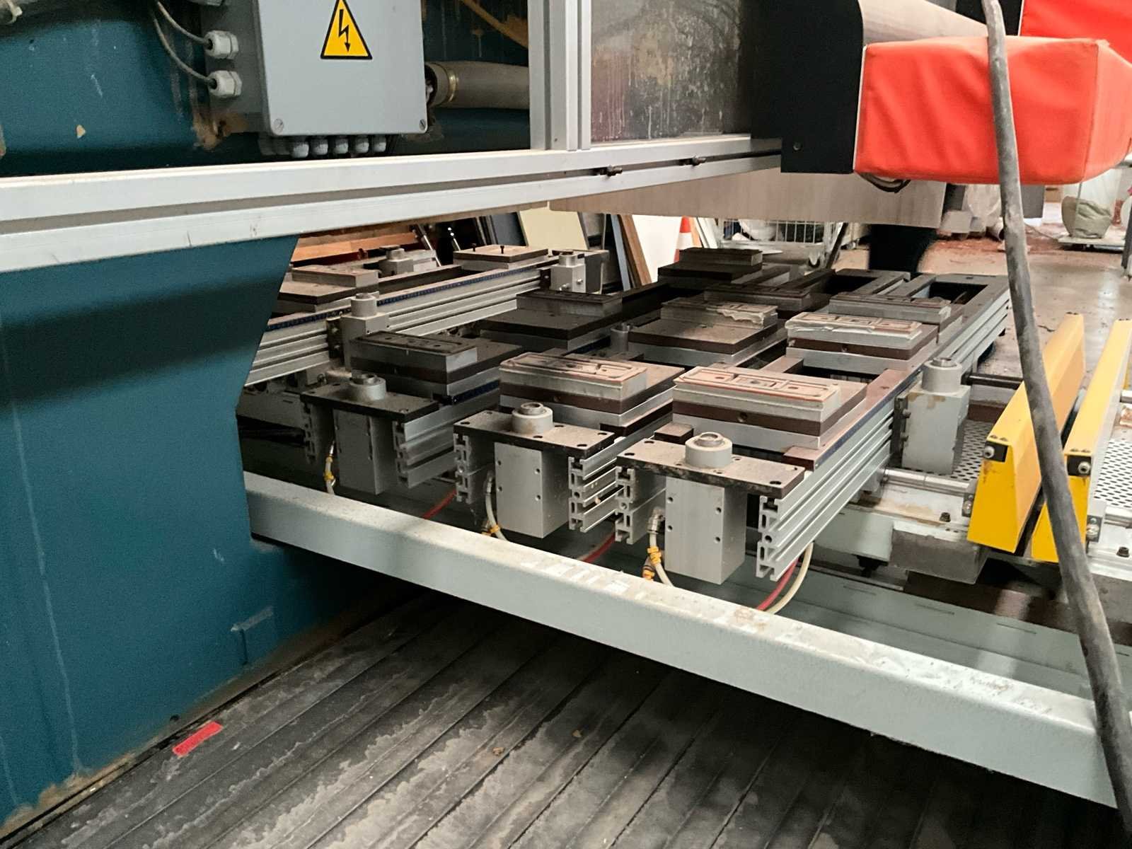 Afmetingen 5800x3000x1850 mm. Zonder afzuiging. No Merk: Masterwood Type: Project 330-T Bouwjaar: 1998 Snelheid van n =: 1000rpm Verplaatsing x-as: 3200mm Machinegewicht: 5000kg Snelheid tot n =: 18000rpm Verplaatsing z-as: 110mm Verplaatsing y-as: 1300mm Aansluiting: 380V