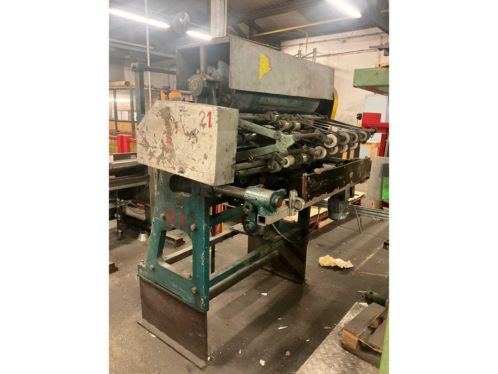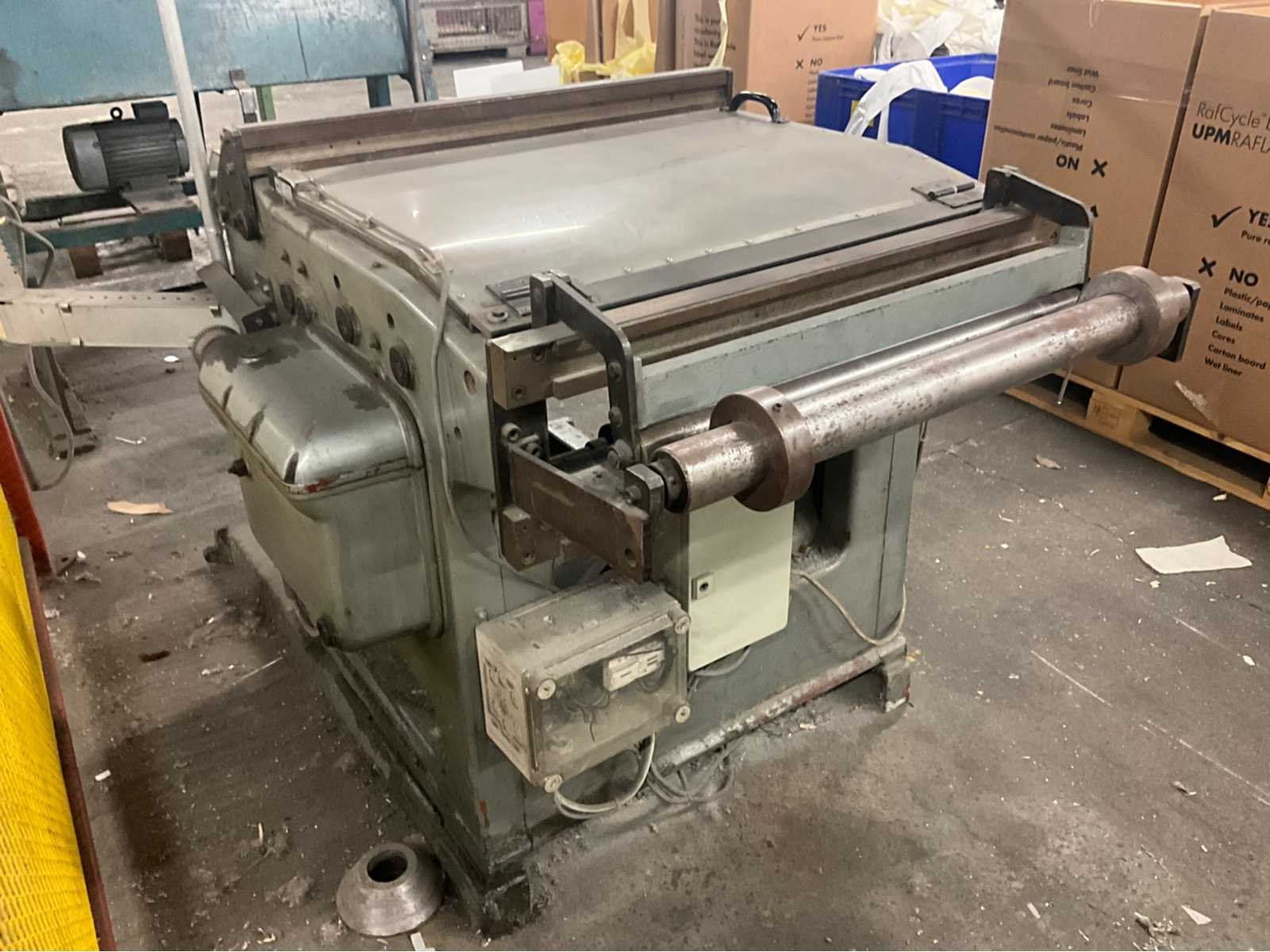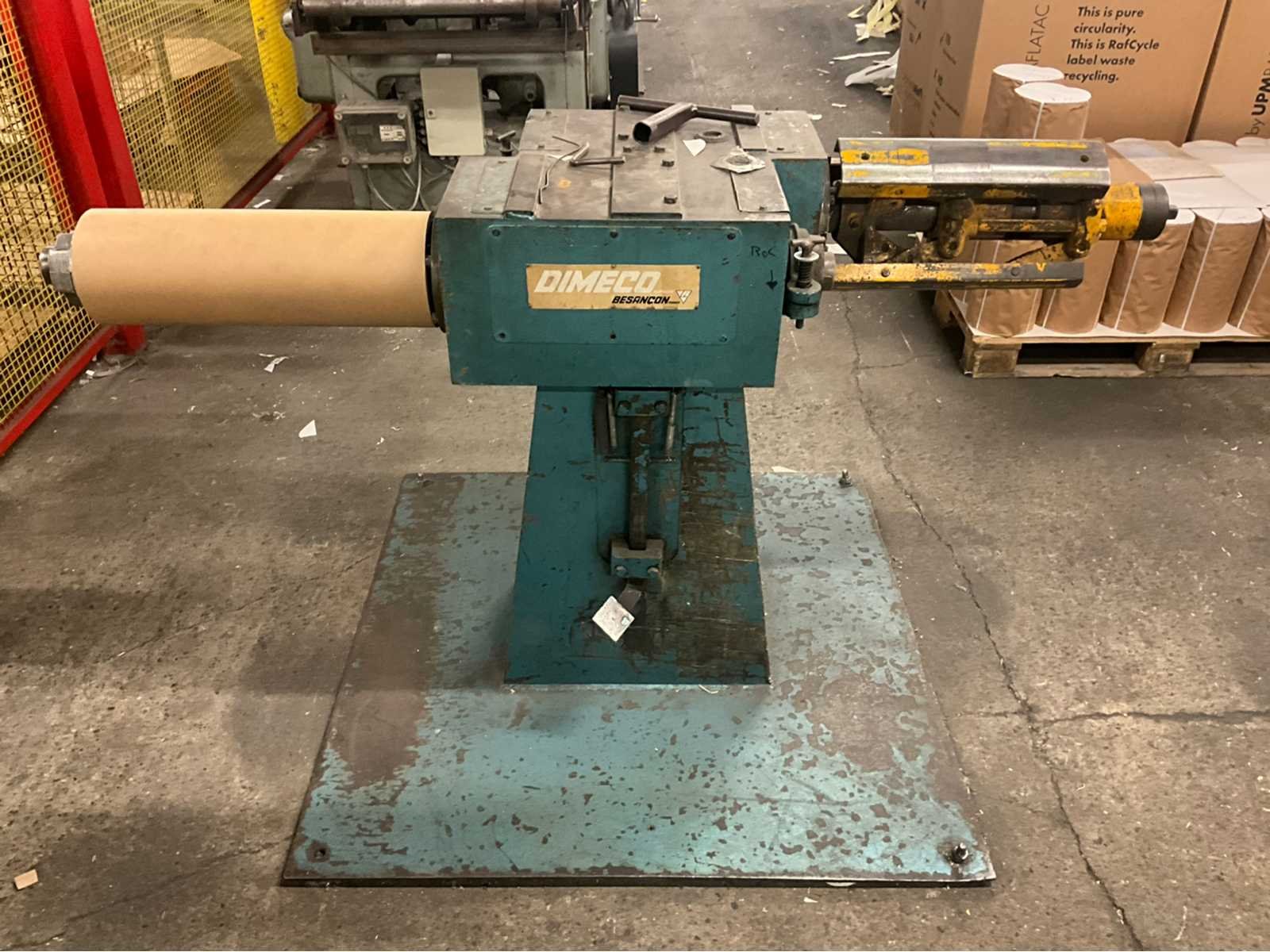 Bestaande uit Dimeco dubbele afroller 180 x 120 x 103, breker / riller 120 x 160 x 110, papiersnijmachine Strachnan & Henshaw 140 x 130 x 200 en palletlift. Allen door koper te demonteren. No