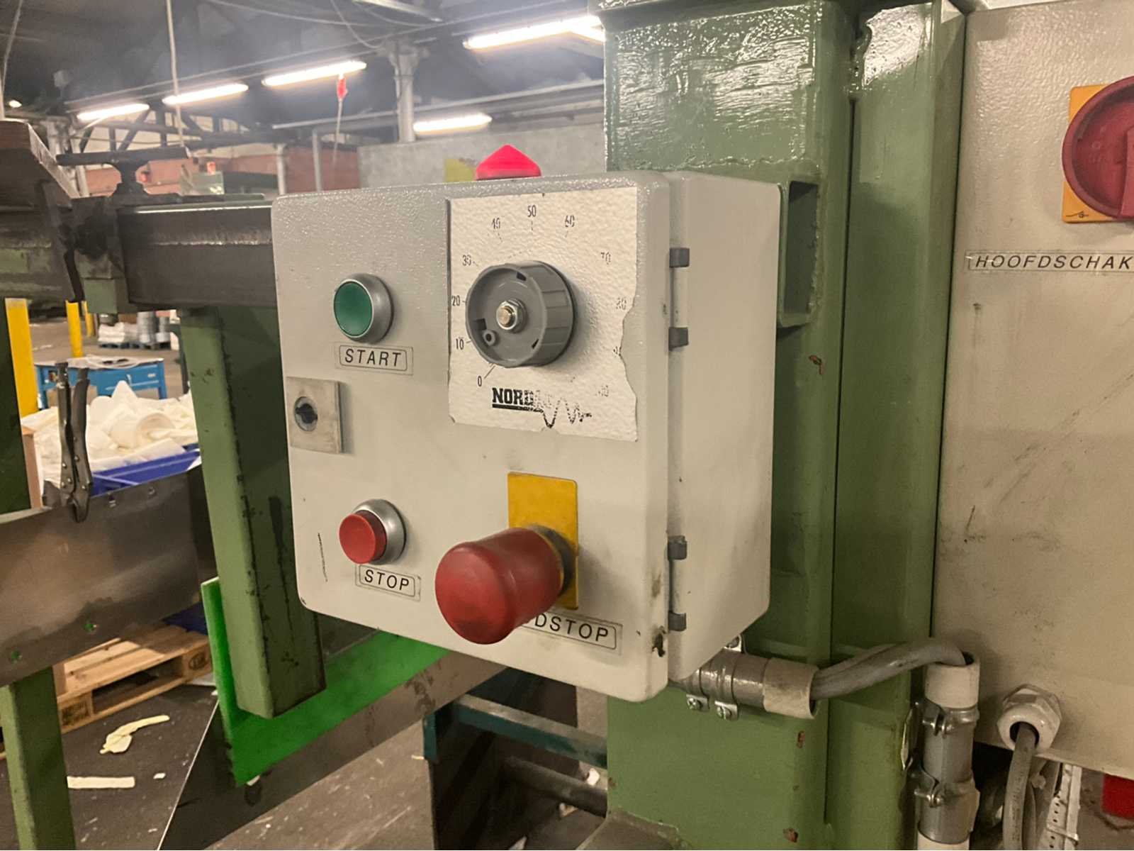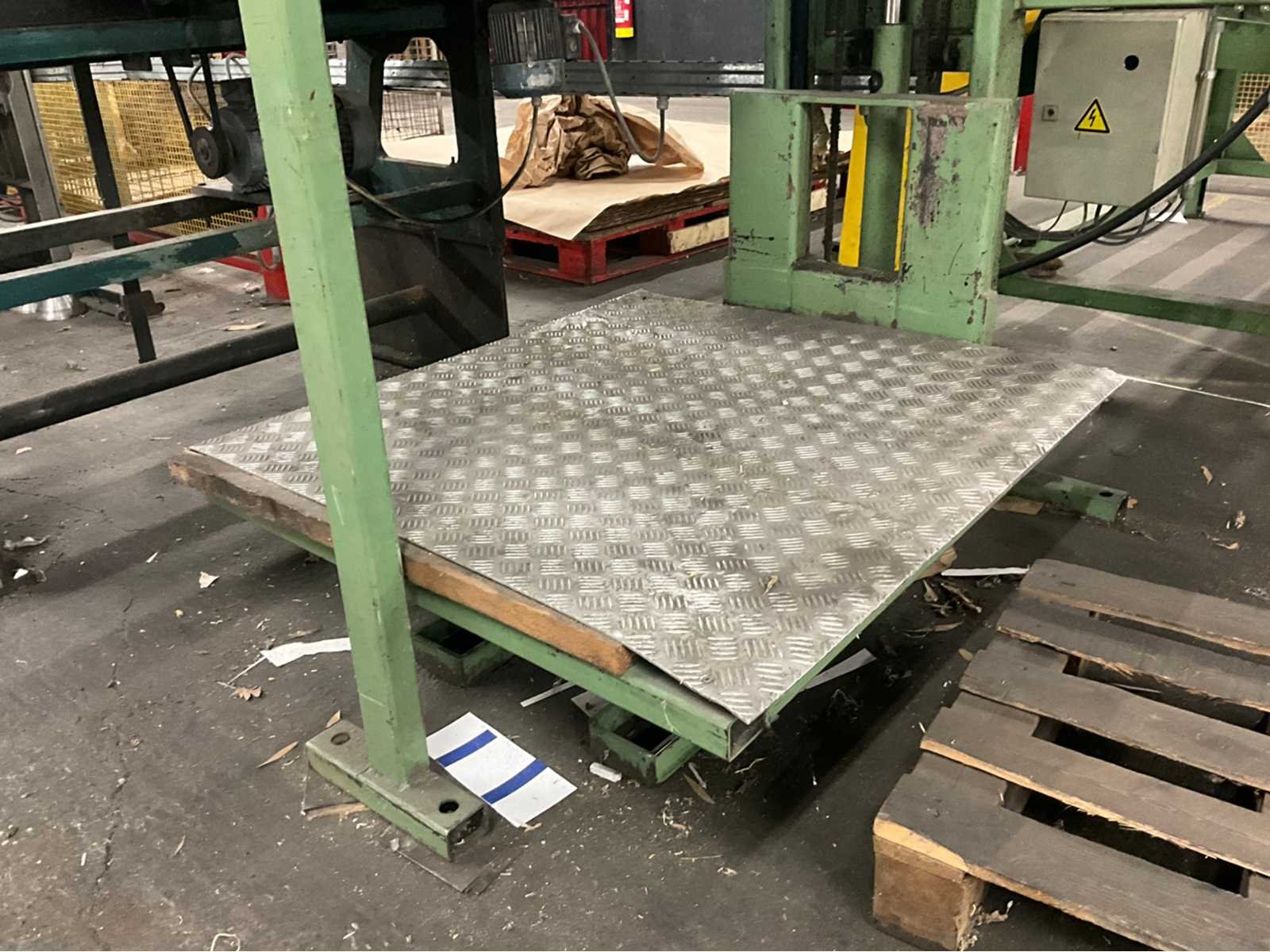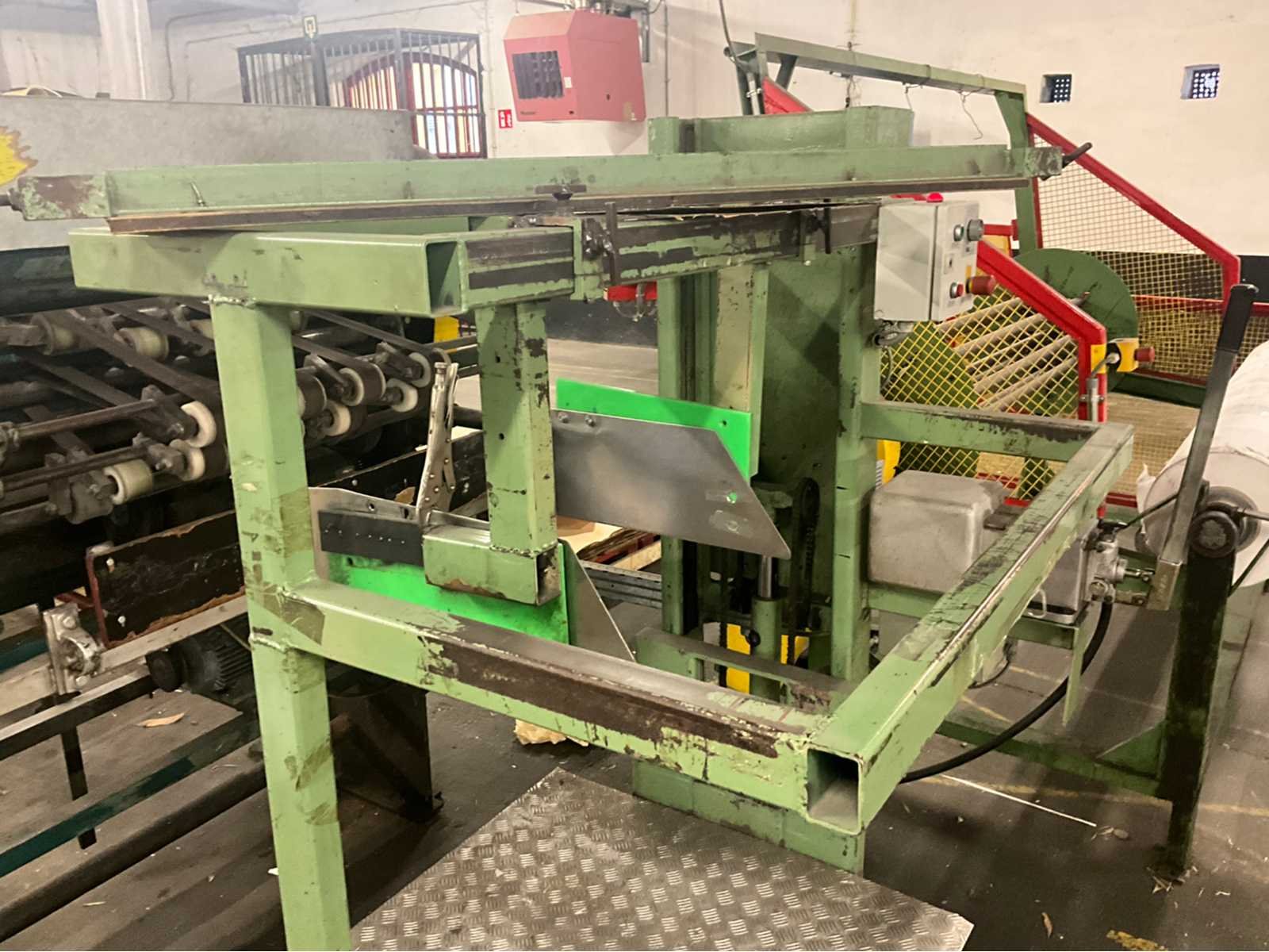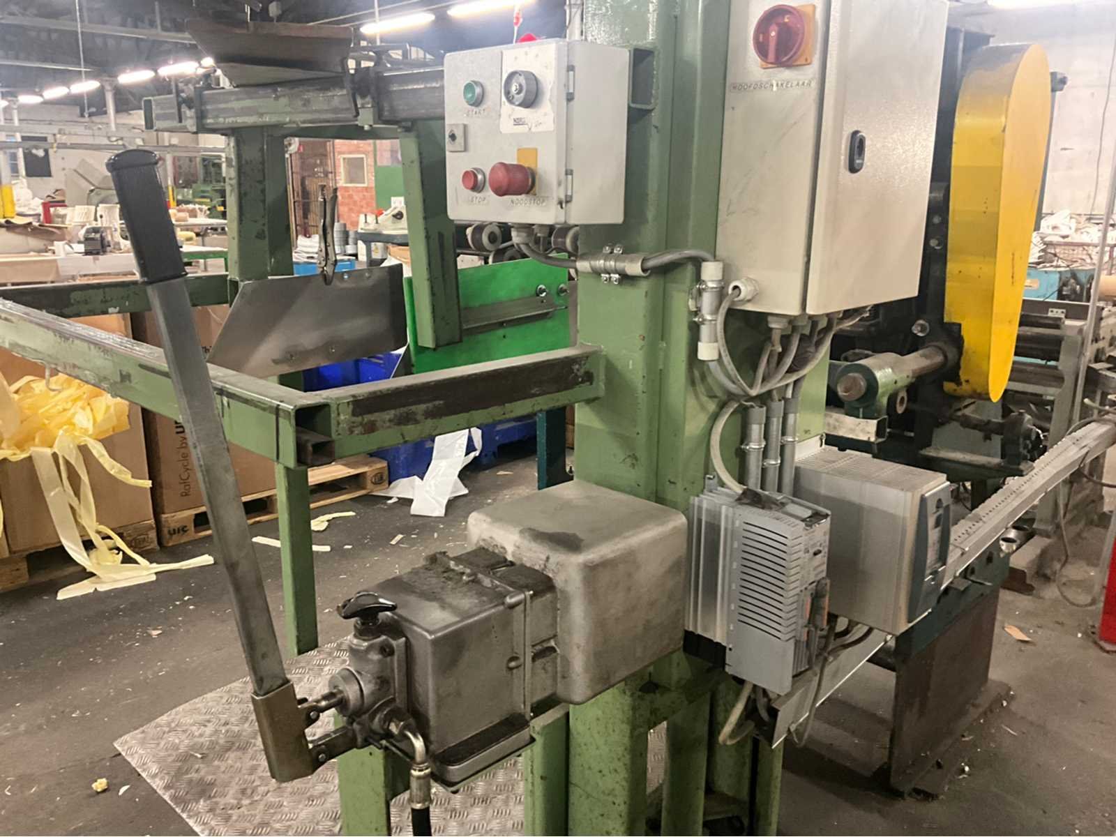 Bestaande uit Dimeco dubbele afroller 180 x 120 x 103, breker / riller 120 x 160 x 110, papiersnijmachine Strachnan & Henshaw 140 x 130 x 200 en palletlift. Allen door koper te demonteren. No