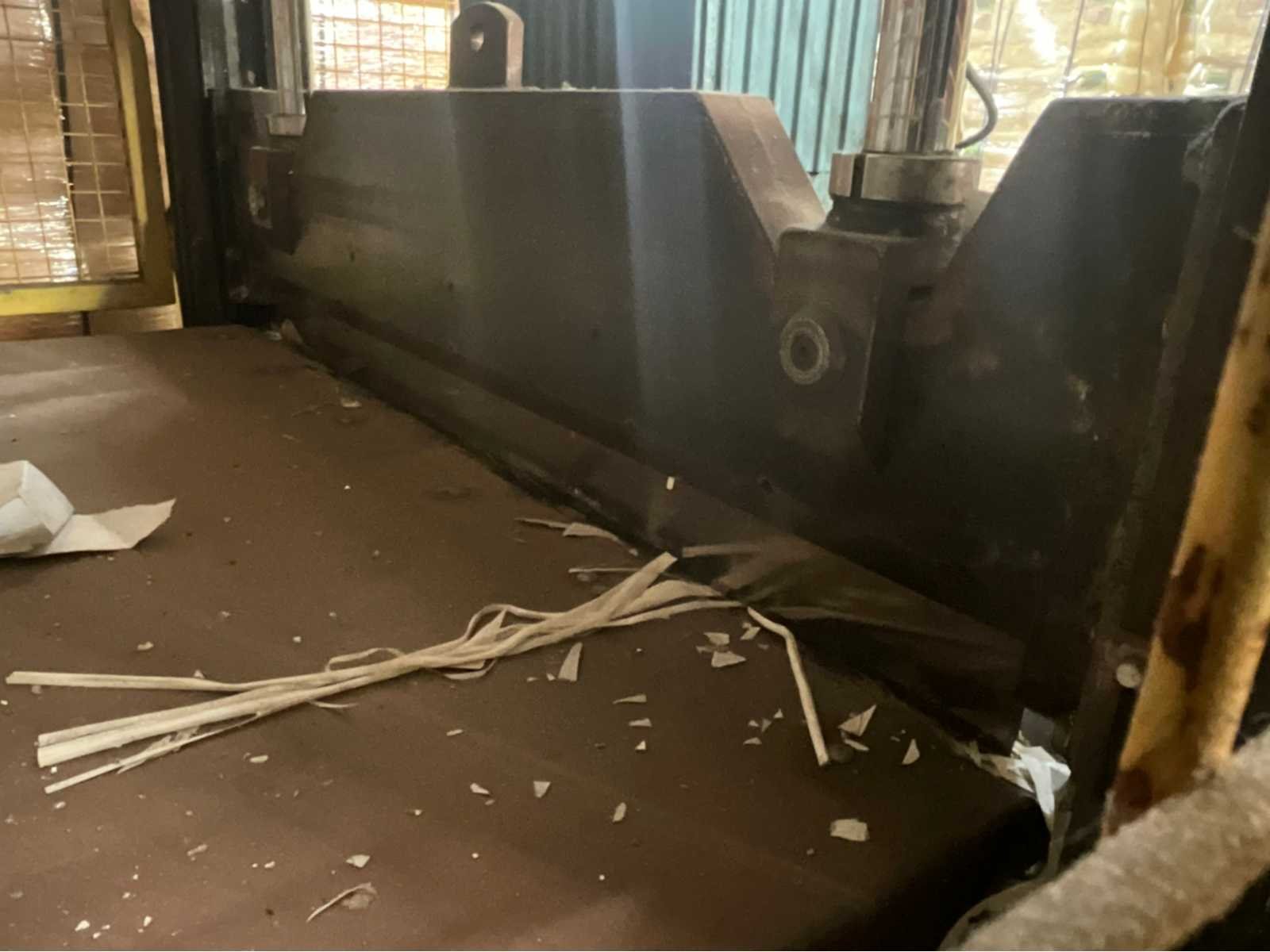 Lengte snijmes circa, 150cm. No Merk: Waco Guilotine Totale afmeting L: 2150mm Totale afmeting Breedte: 1590mm Totale afmeting Hoogte: 3820mm