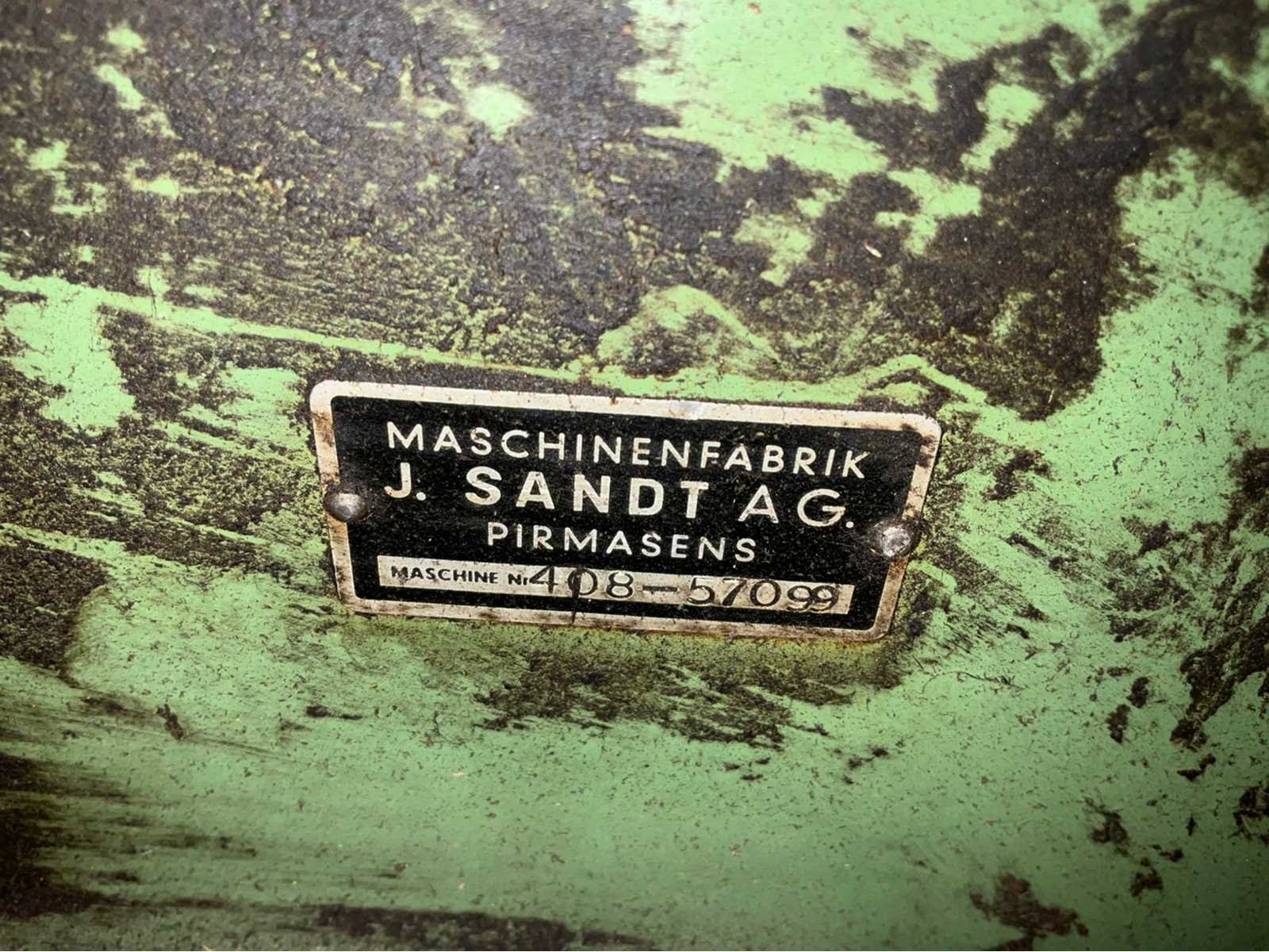 Stansmachine in werkende staat. Werd gebruikt om papier en karton in vormen te stansen. Vormen worden in aparte lot verkocht. No Merk: J.Sandt Totale afmeting L: 800mm Totale afmeting Breedte: 900mm Totale afmeting Hoogte: 1350mm