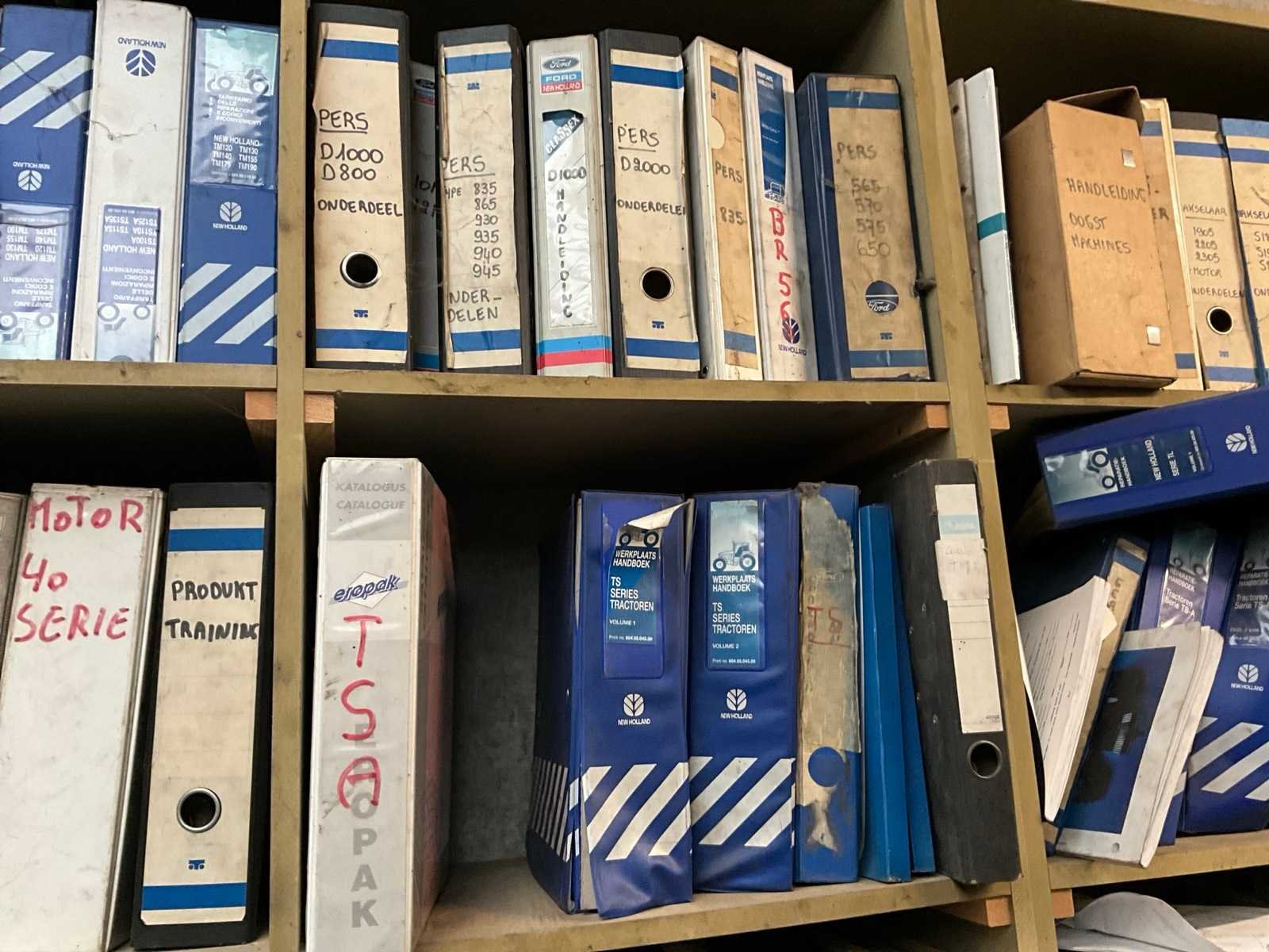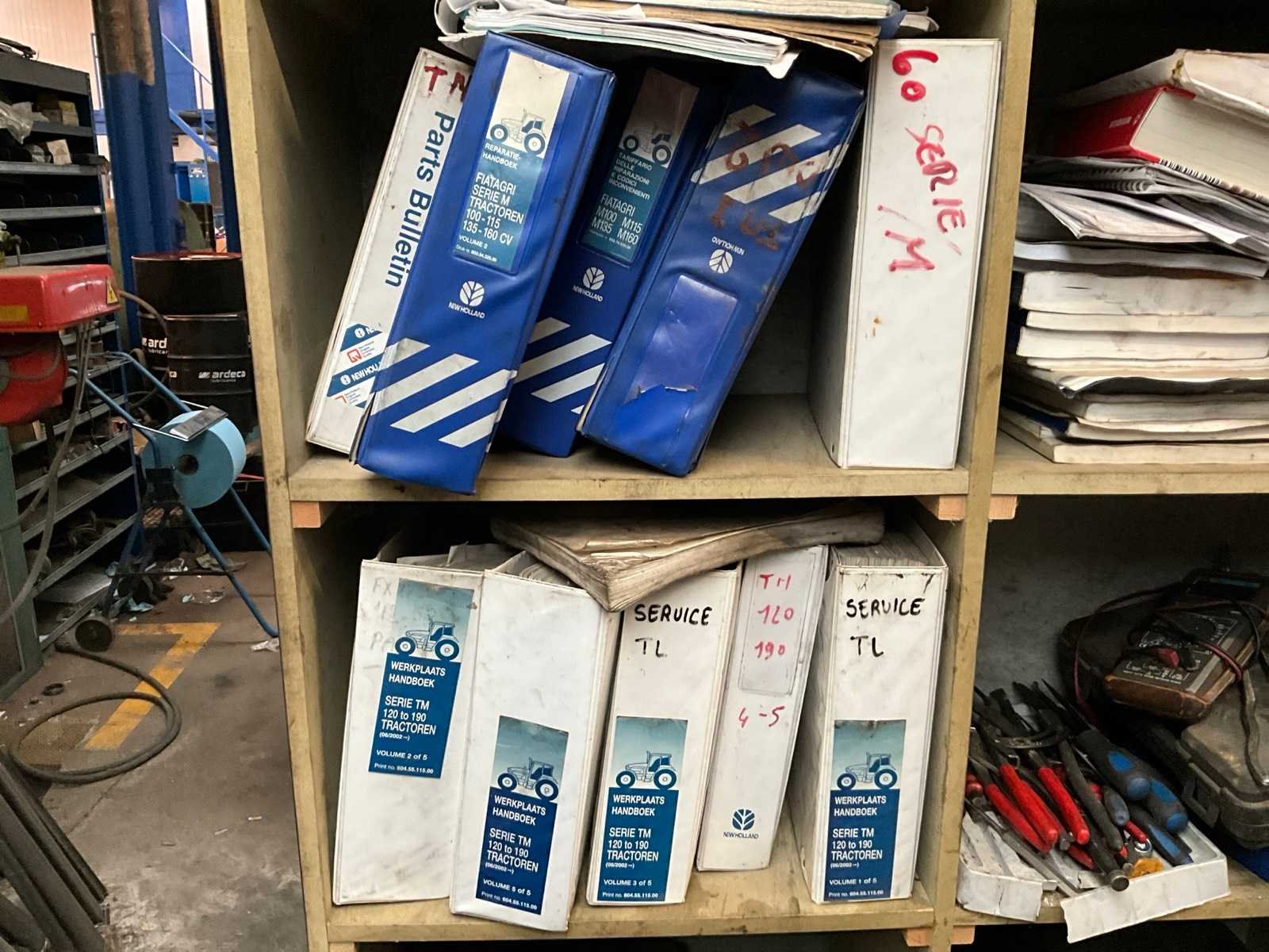 Bestaand uit circa 100-150 kaften met de originele werkplaatsboeken New Holland Nee Merk: New Holland