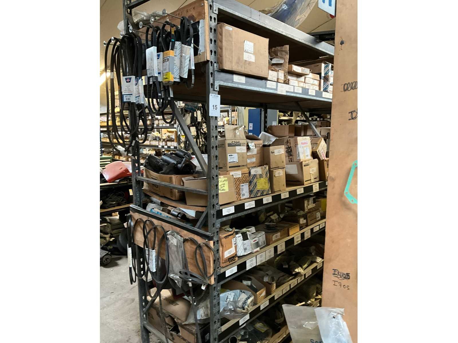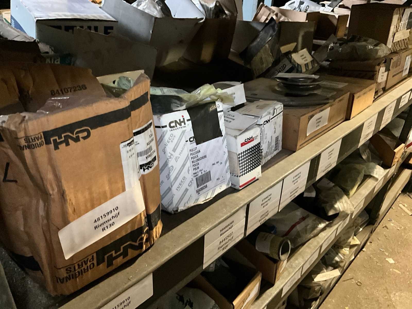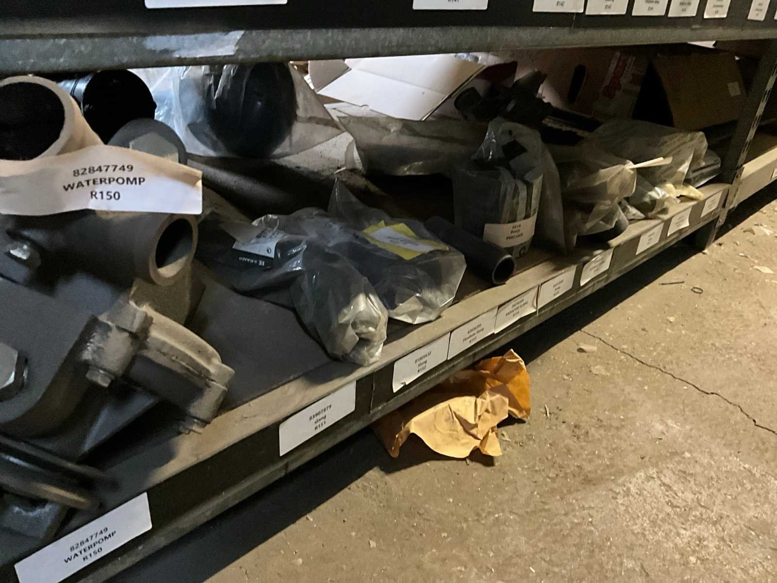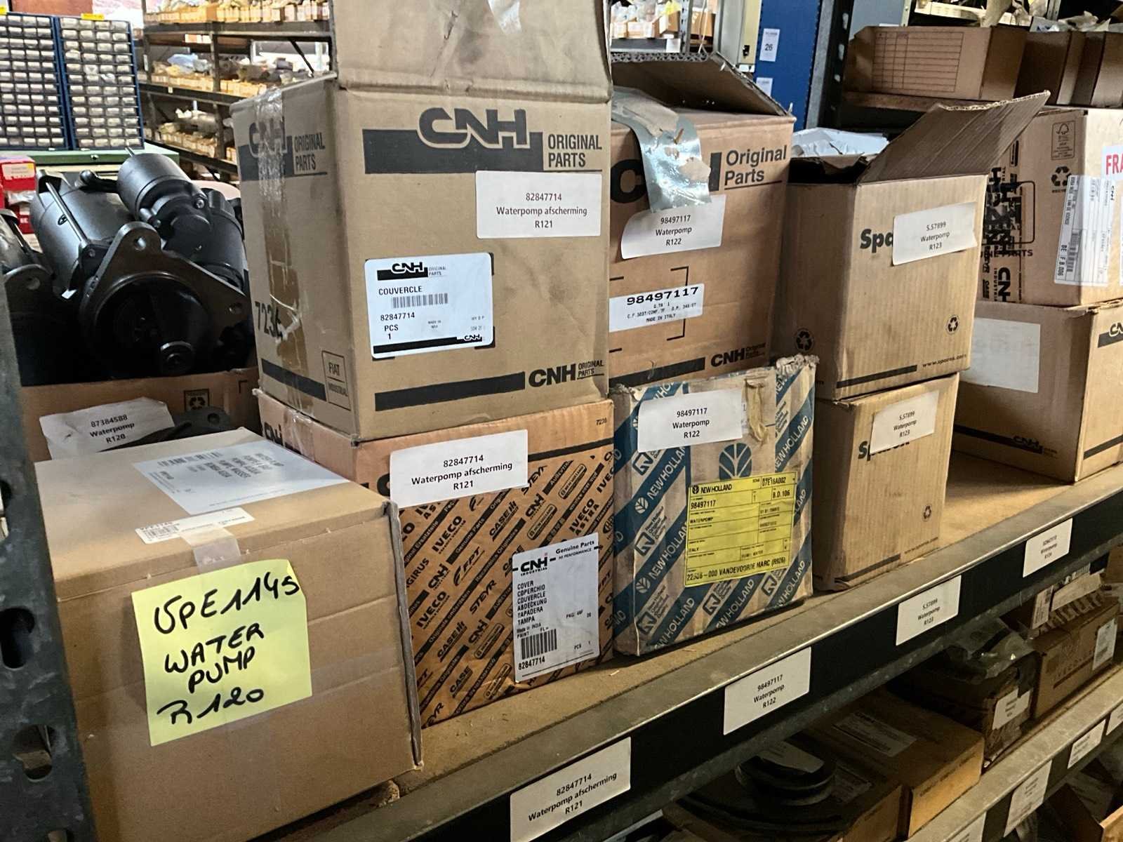 Bestaand uit inhoud rek 6x sectie waaronder startmotoren-dynamo’s-alternatoren-waterpompen met toebehoren zoals pakkingen-koppelstukken-v-snaar span en loopwielen, +v-snaren op kop van rek enz.. Nee Merk: New Holland