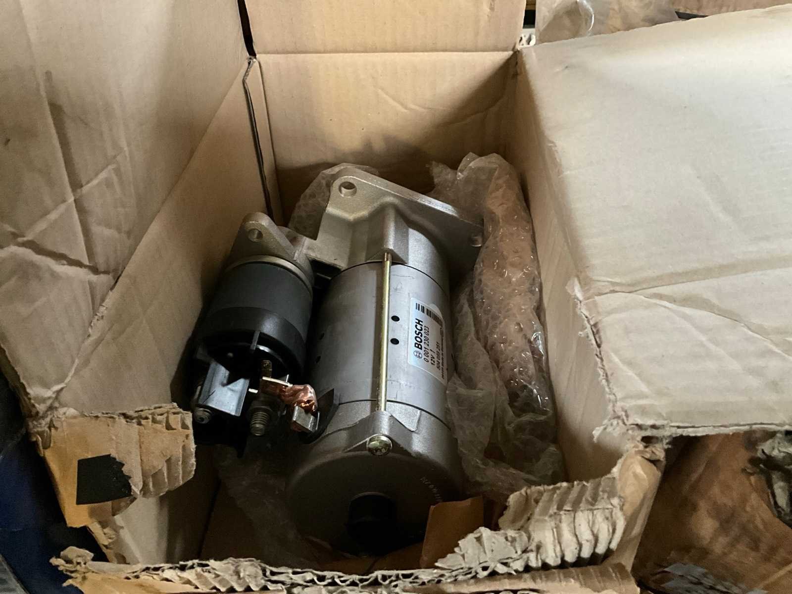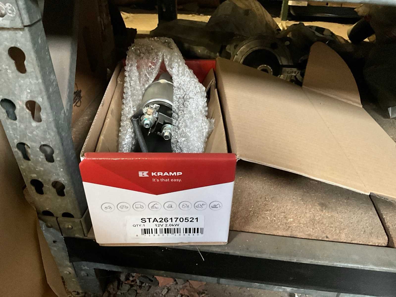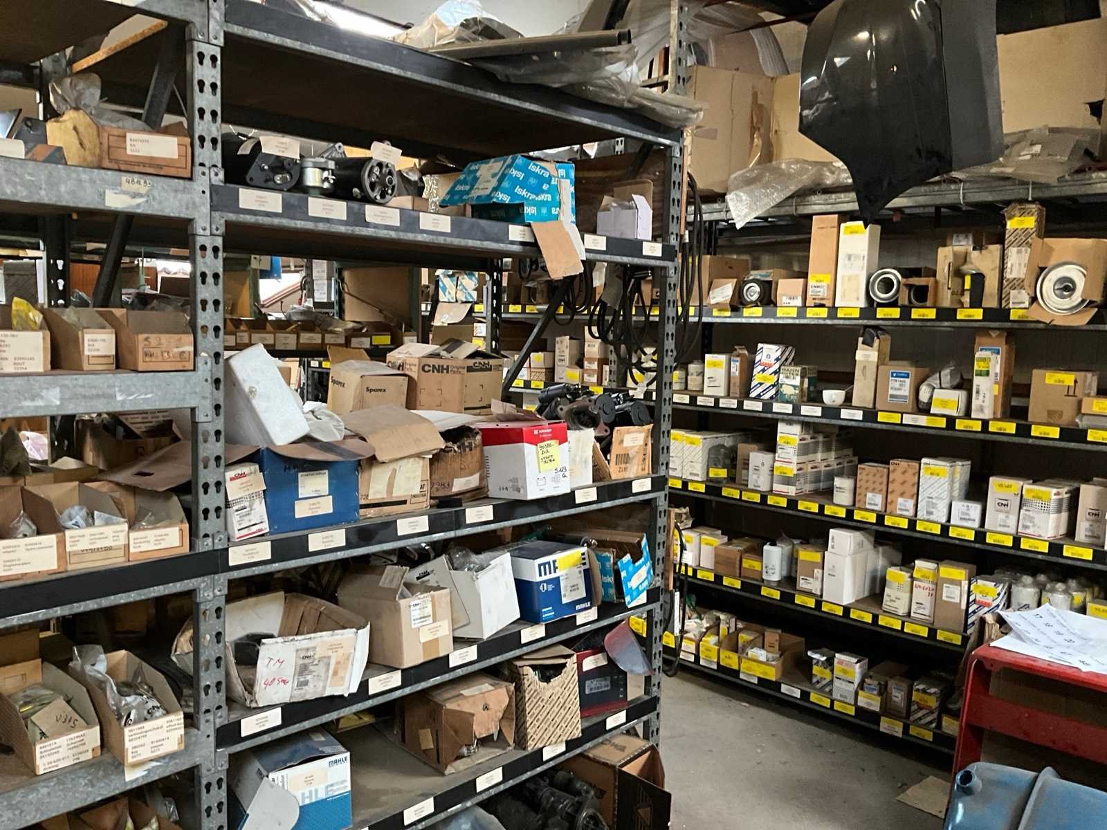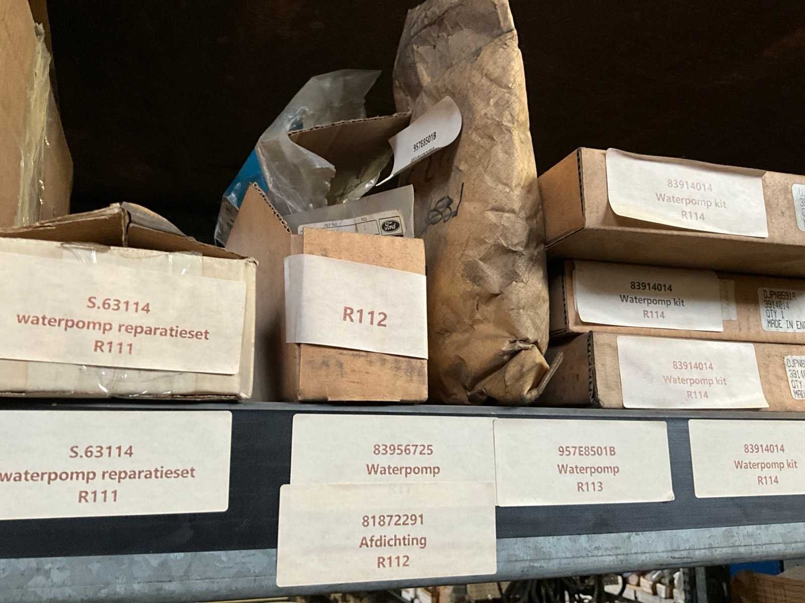 Bestaand uit inhoud rek 6x sectie waaronder startmotoren-dynamo’s-alternatoren-waterpompen met toebehoren zoals pakkingen-koppelstukken-v-snaar span en loopwielen, +v-snaren op kop van rek enz.. Nee Merk: New Holland