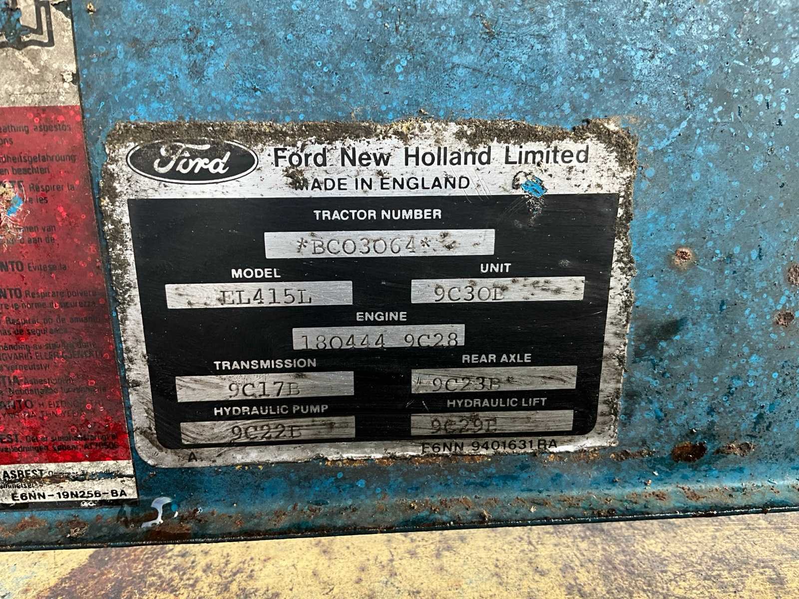 ZONDER BOORDDOCUMENTEN, achterruit ontbreekt, sleutel aanwezig Nee Merk: Ford Type: 6410 Bouwjaar: 1989 Serienummer: BC03064 Afgelezen urenstand: 4483 Versnellingsbaktype: Handgeschakeld Aftakastoerental: 540rpm Aantal hydraulische ventielen achter: 2 Bandenmaat voor: 13.6R28 Bandenmaat achter: 16.9R38 Cabine: true Totale afmeting Breedte: 2200mm Totale afmeting Hoogte: 2800mm Chassisnummer: 4000