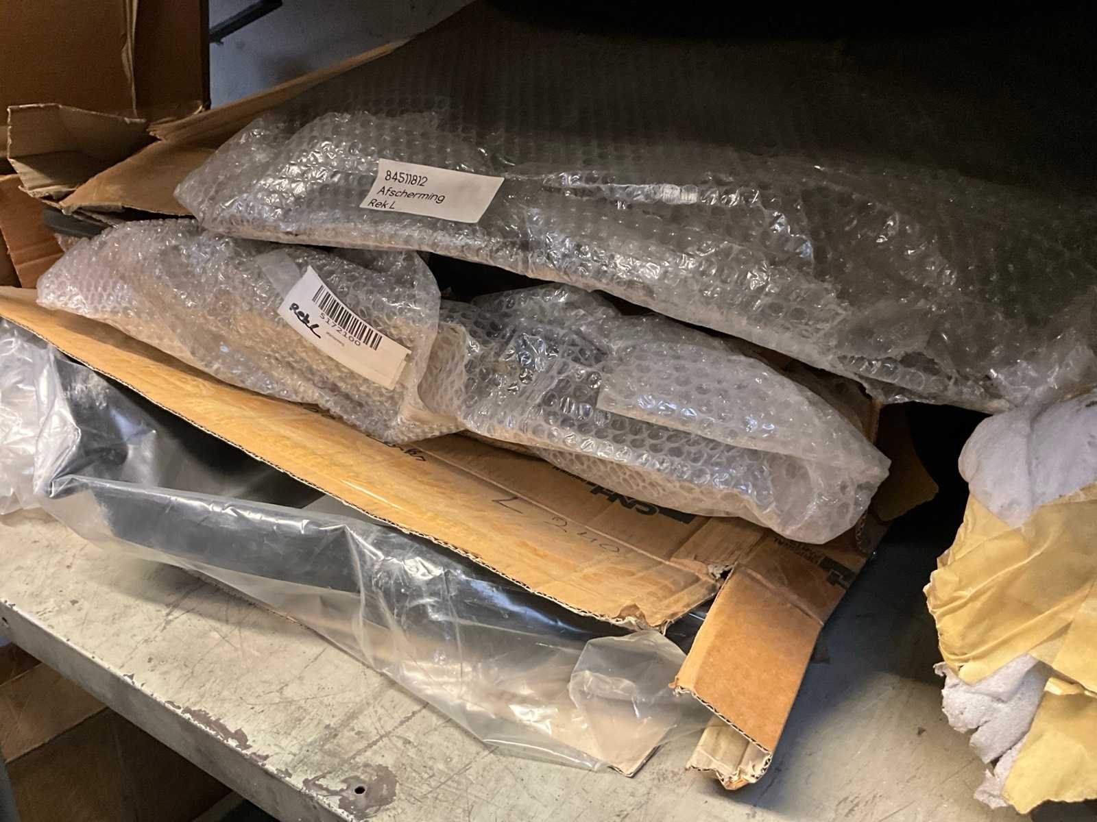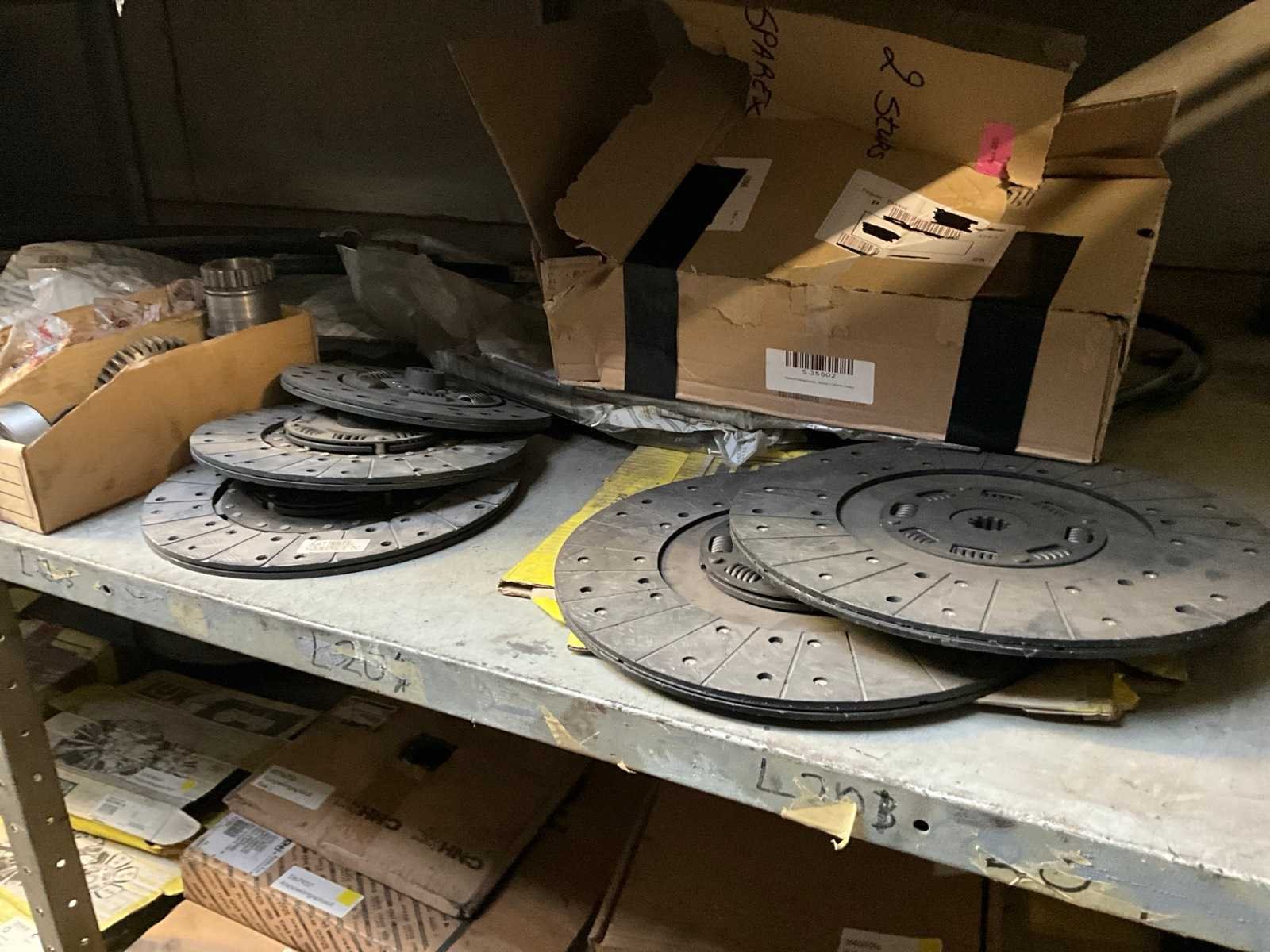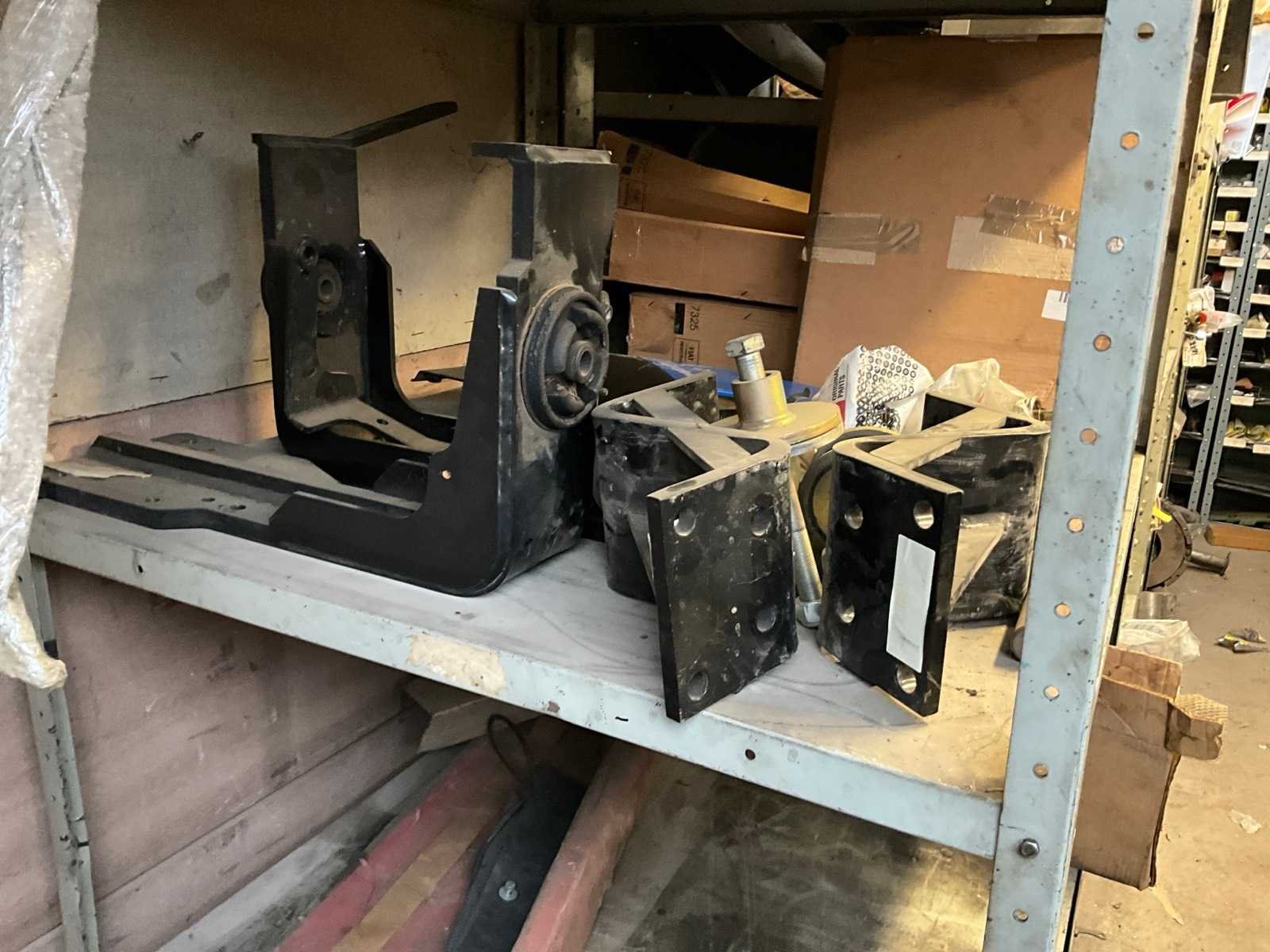 Bestaand uit inhoud rek met 11 secties waaronder drukplaten, koppelingsplaten, tandwielen en rollators, hydraulische slangen, supports, hydraulische cilinders Nee Merk: New Holland