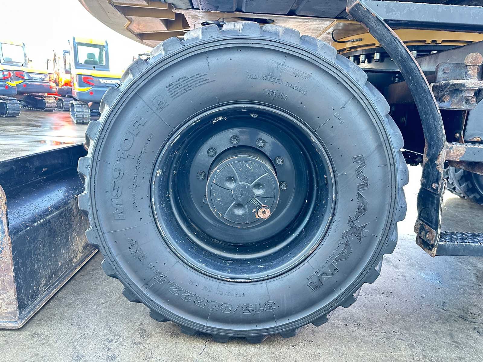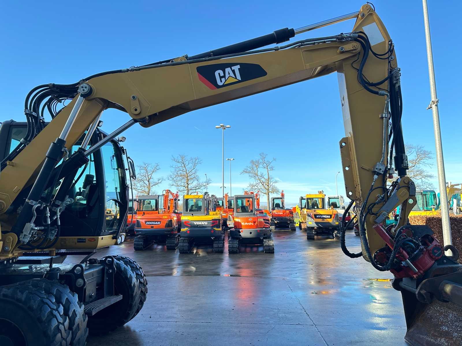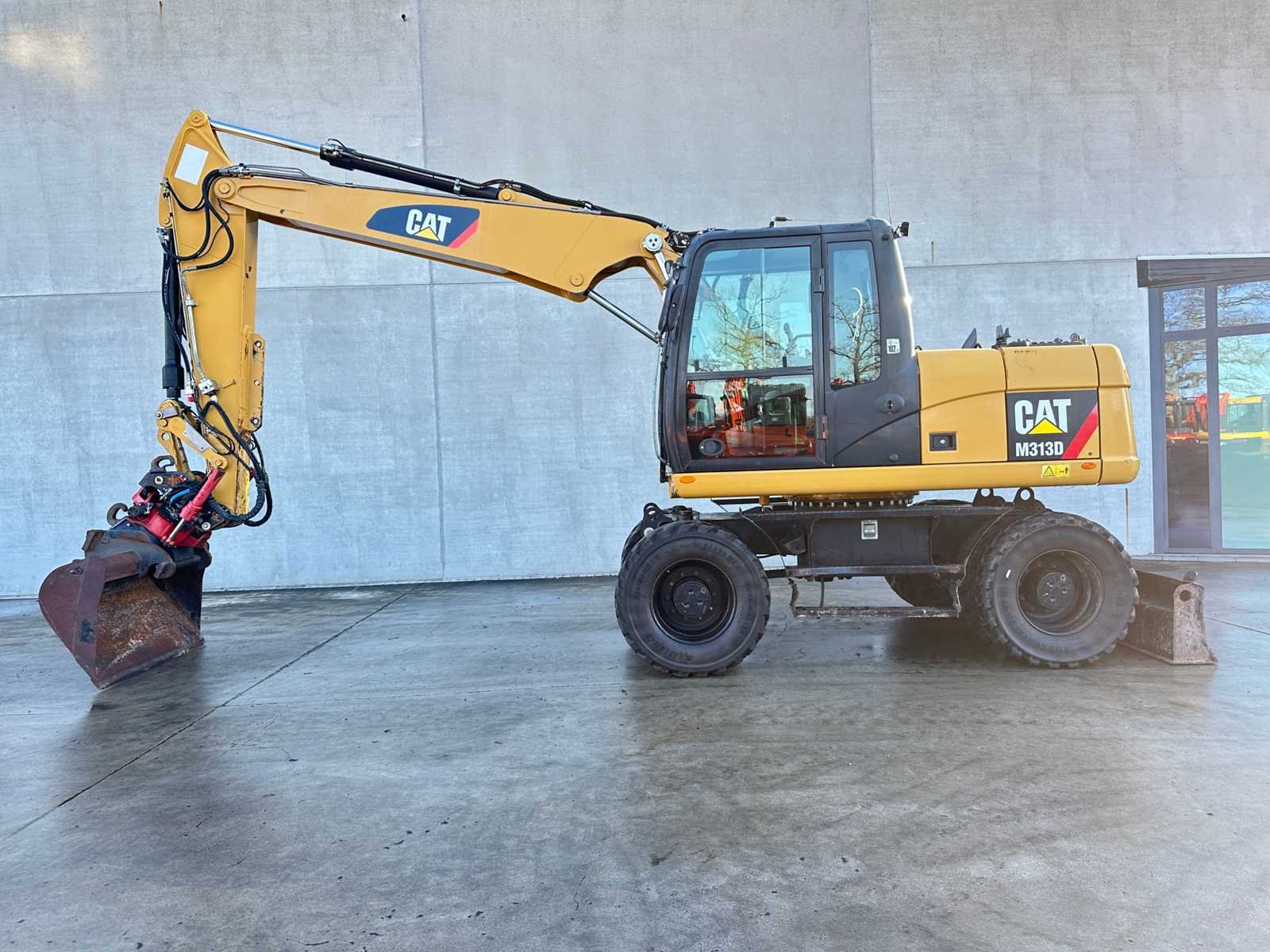 Hydraulische snelwissel. Extra hydraulische leidingen. Duwblad Rototillt RT40B. - BJ 2015 - 263396 Nee Merk: Caterpillar Type: M313D Bouwjaar: 2014 Serienummer: CATM313DLK3D00730 Merk motor: CAT C4.4 Motorvermogen (kW): 102kW Aantal cilinders: 4 Brandstof: Diesel Met graafbak: true Graafbak afm. b: 1600mm Bandenmaat: 315/80 R22.5 Afgelezen urenstand: 6911 Eigen gewicht: 14200kg Totale afmeting L: 8100mm Totale afmeting Breedte: 2550mm Totale afmeting Hoogte: 3150mm