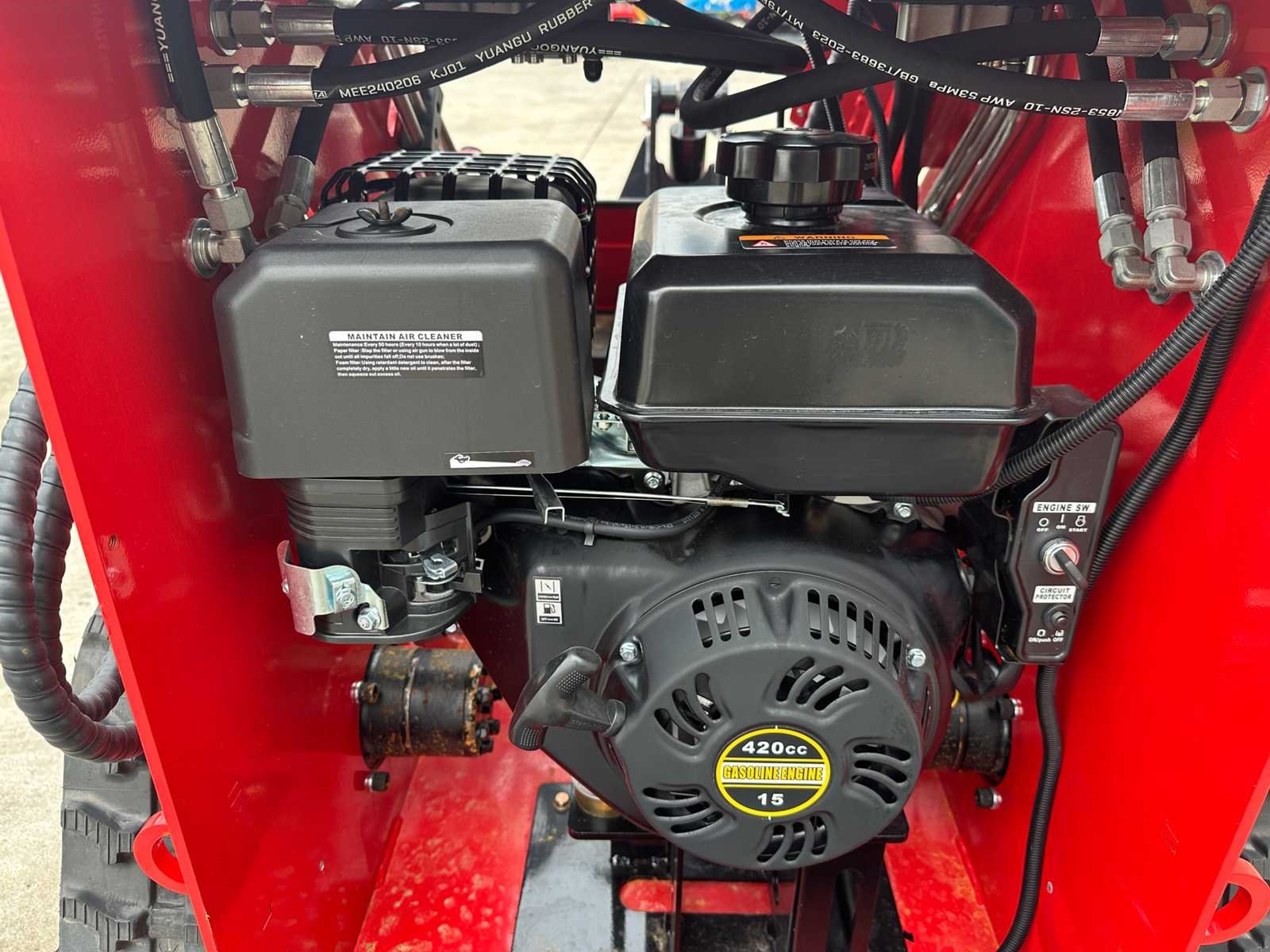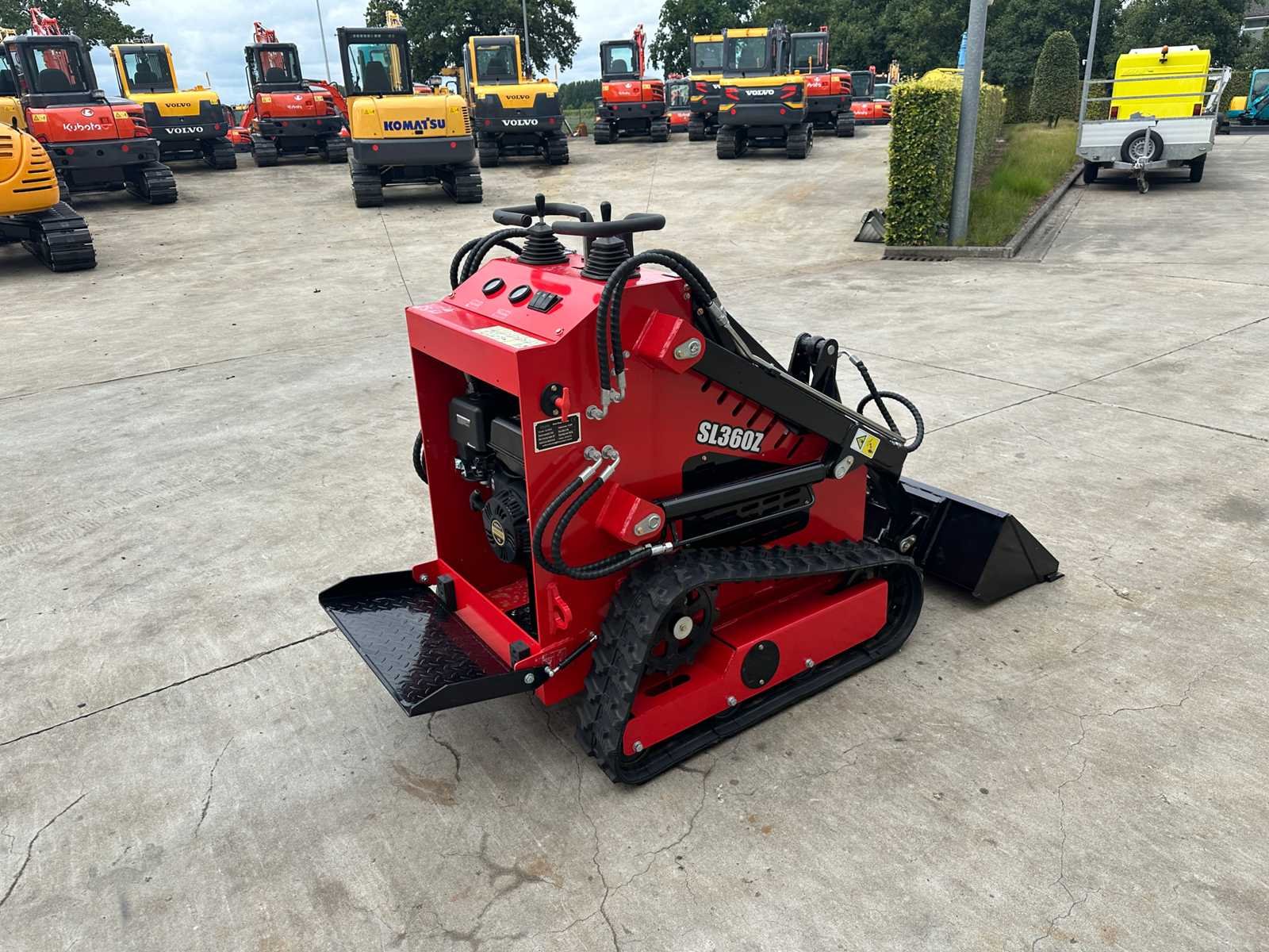 Mechanische snelwissel Schepbak breedte 1050mm Extra hydraulische functie Hydrostatische aandrijving Benzine motor 13.5 pk - 420cc Nieuw Geen documenten No Merk: SDLOOL Type: SL360Z Bouwjaar: 2025 Serienummer: SL360Z250419 Brandstof: Benzine Graafbak afm. b: 1050mm Bandenmaat: Rupsen Afgelezen urenstand: 0 Eigen gewicht: 900kg Totale afmeting L: 2600mm Totale afmeting Breedte: 1050mm Totale afmeting Hoogte: 1400mm
