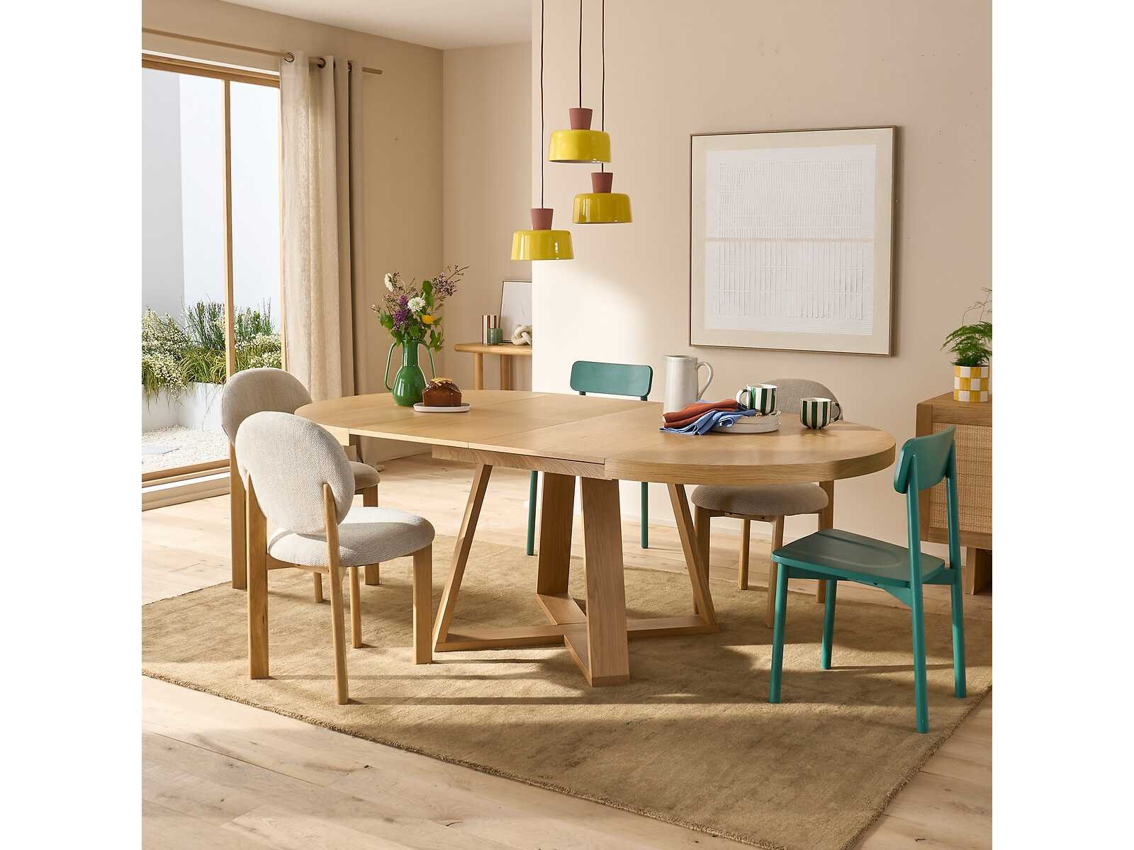 Beschrijving • Spaanplaat en verlengingen, eikenfineer, polyurethaanvernisafwerkingen • MDF-band, polyurethaanvernisafwerking • Massief eikenhouten poten, polyurethaan vernisafwerking • 2 verlengingen onder de bovenkant, breedte 48 cm • Van 4 tot 8/10 covers • Verlengvergrendelingssysteem onder het tafelblad • Gemaakt in Italië Zorg • Om je tafel te beschermen, denk aan onderzetters, onderzetters en placemats. Afmetingen • Lengte 120 cm (168 cm met 1 verlenging, 216 cm met 2 verlengingen) • Breedte 120 cm • Hoogte 77 cm Non