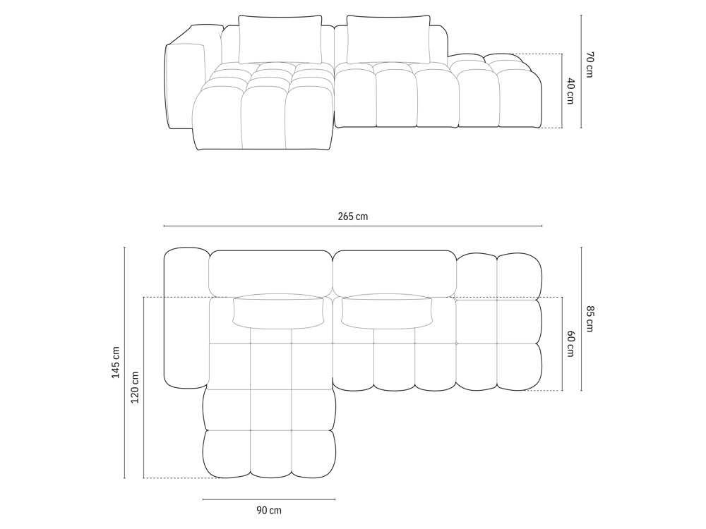 Zitkussens: polyurethaanschuim 35 kg/m³ Bronnen: 1 Rugkussens: Polyurethaanschuim 25 kg/m³ Benen: Zwart plastic Afmetingen Lengte: 265 Breedte: 145 Lengte: 70 Armleuningsbreedte: 25 Armleuninghoogte: 70 Zitbreedte: 150 Zithoogte: 40 Zitdiepte: 60 Rugsteunhoogte: 30 Gewicht: 117,465 Maximaal toegestaan gewicht: 450 Non