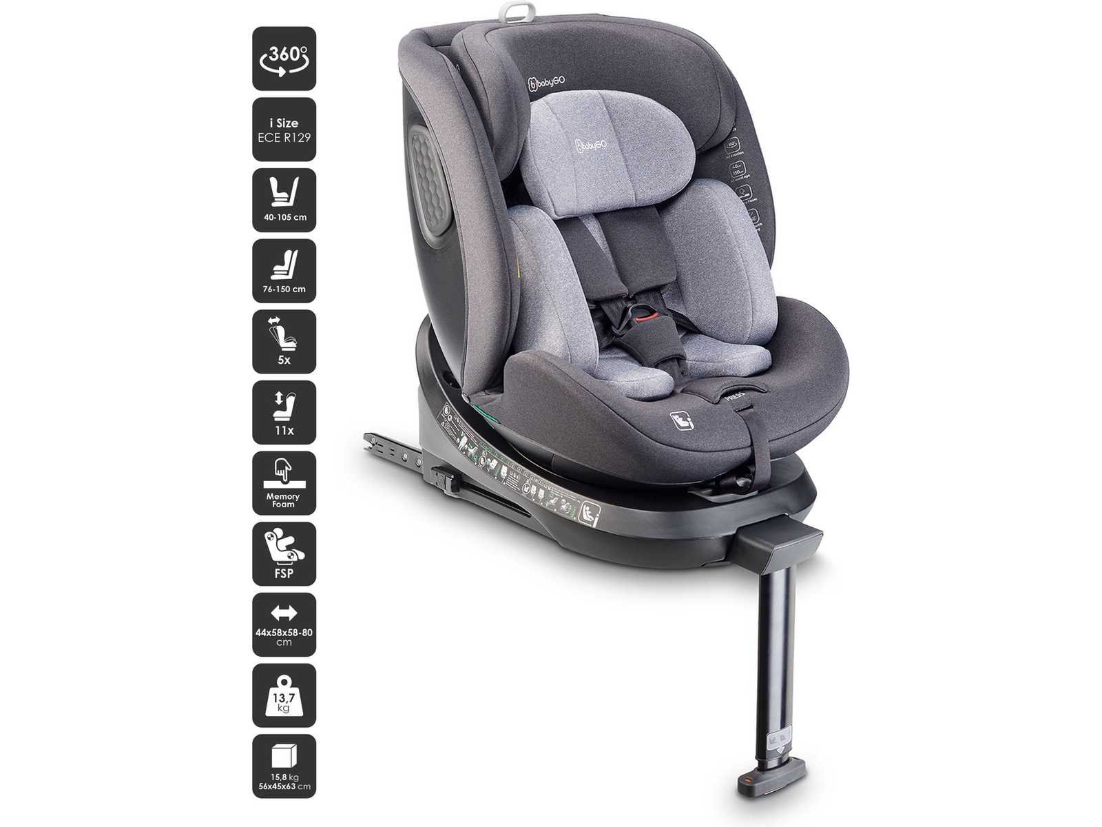 Kenmerken ? Geschikt voor kinderen van 40 tot 150 cm ? Uitgerust met een isofix-montagesysteem + ondersteunende voet voor snelle en veilige montage ? Het autostoeltje kan naar voren en achteren in de auto worden geplaatst ? Hoogteverstelbare hoofdsteun (11 posities) ? Zitting verstel in 5 standen (inclusief ruststand) ? Bevestig de tegenoverliggende kant van 40 tot 105 cm. ? Voorwaarts gerichte bevestiging van 76 tot 150 cm ? Zachte en comfortabele vulling met verkleiner ?. De hoes is makkelijk te verwijderen en ook wasbaar ? Anatomisch gevormde stoel ? Optimale zijbescherming ? 5-punts gordel voor 40-105 cm, gebruik daarna de 3-punts gordel ? Voldoet aan de Europese veiligheidsnorm i-Size ECE R129 ? Afmetingen (WxDxH): 44 x 58 x 80 ? Gewicht: 13,7 kg Non