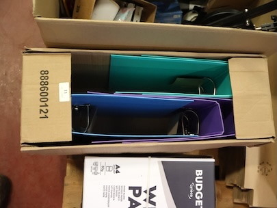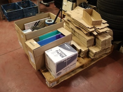 Inhoud Pallet, Dossierdozen, Mappen, Papier, Bureauaccessoires