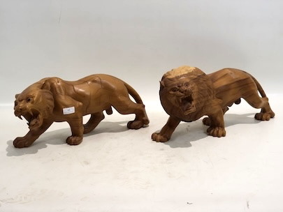 Houten tijger en leeuw