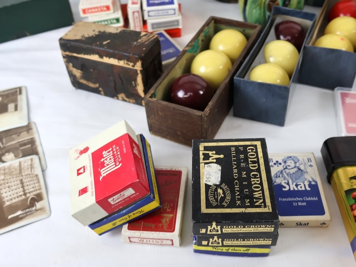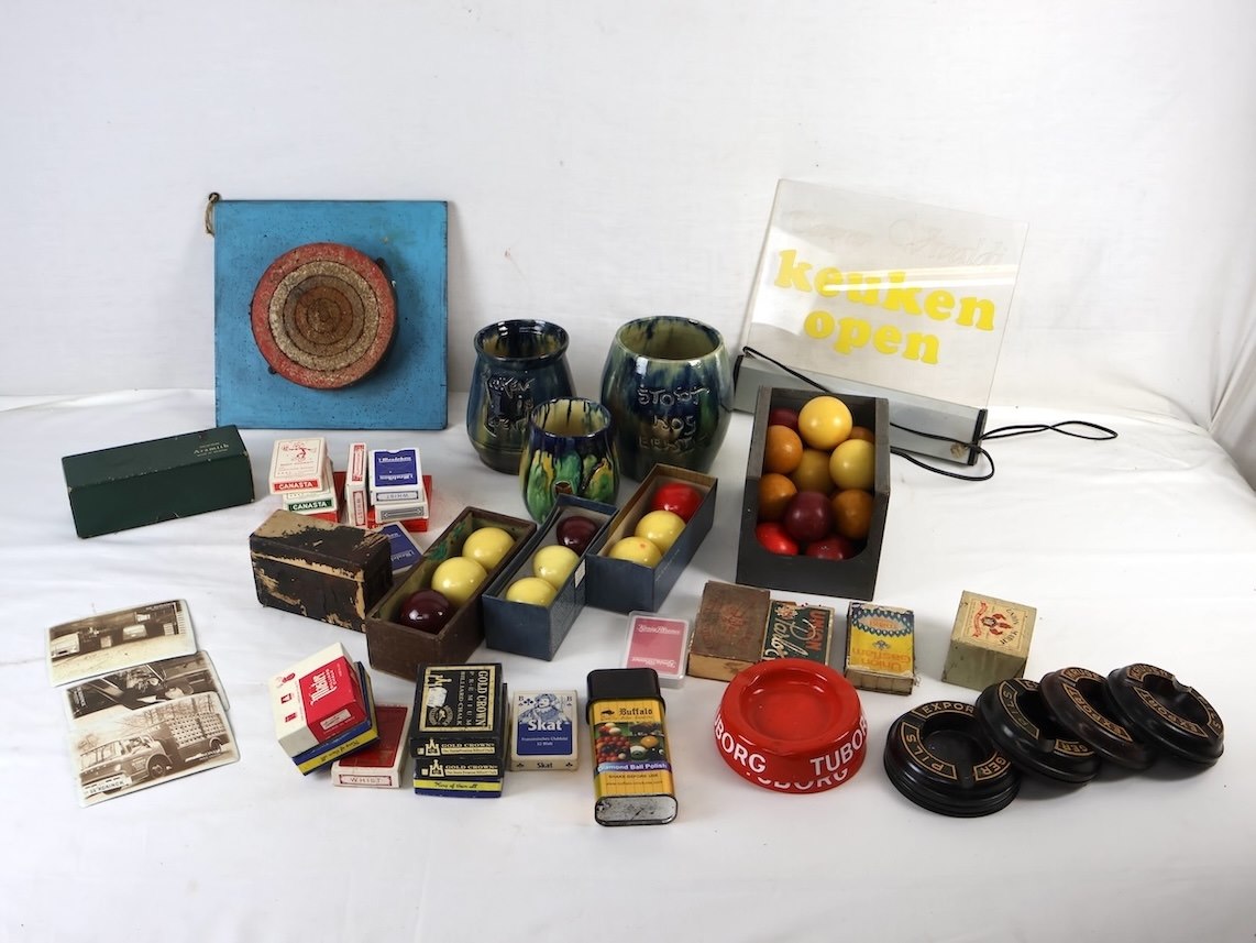 Tabakspotten, Speelkaarten, Asbakken, Vogelpik,...