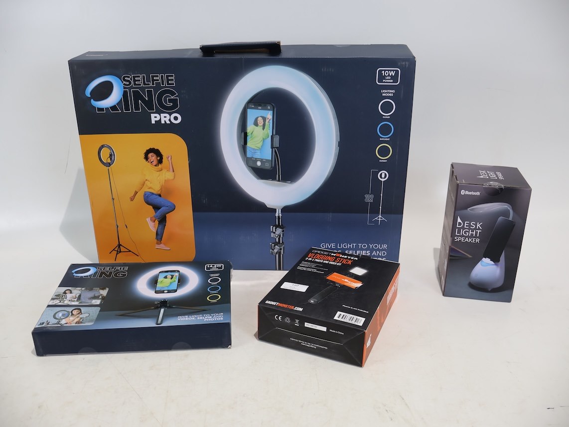 2x Selfie Ring, Vlogging Stick, Desk Light Speaker