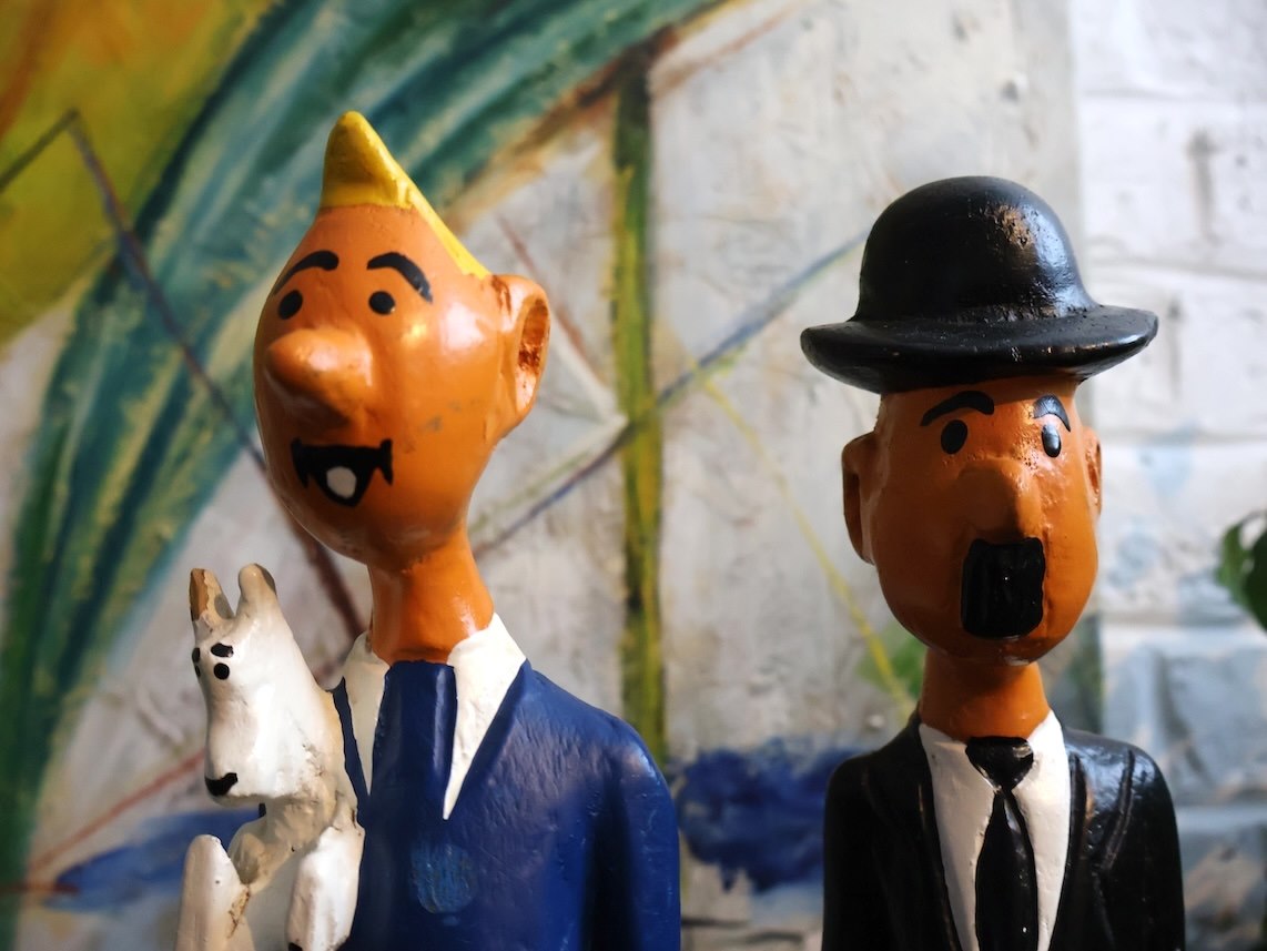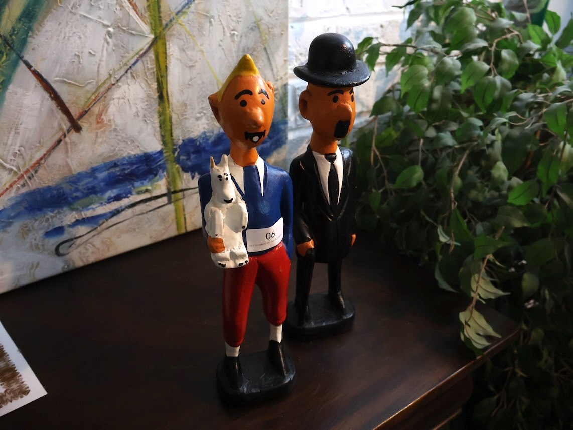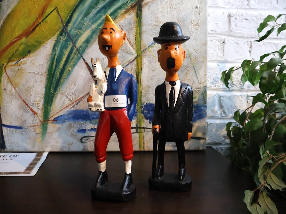 Houten beeld kuifje (x2)